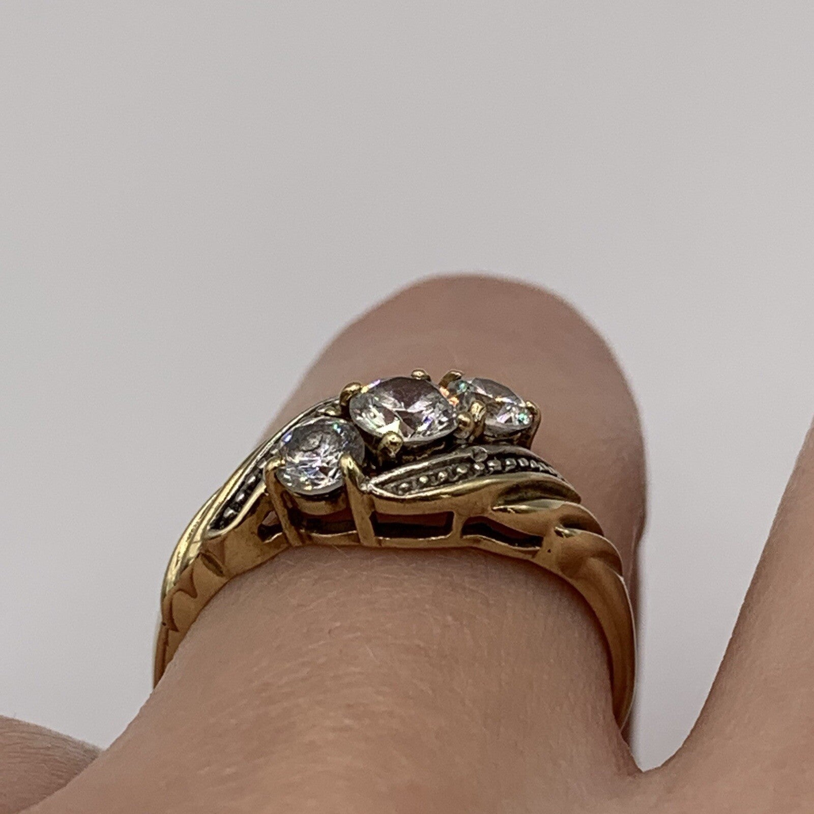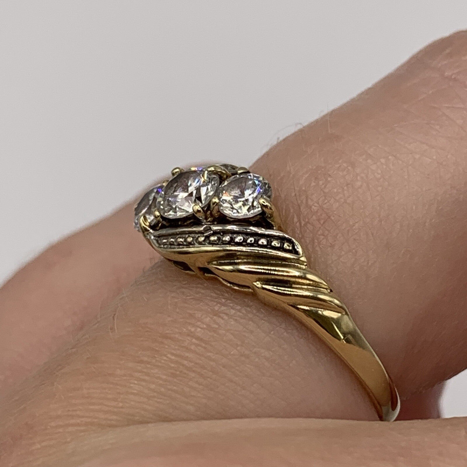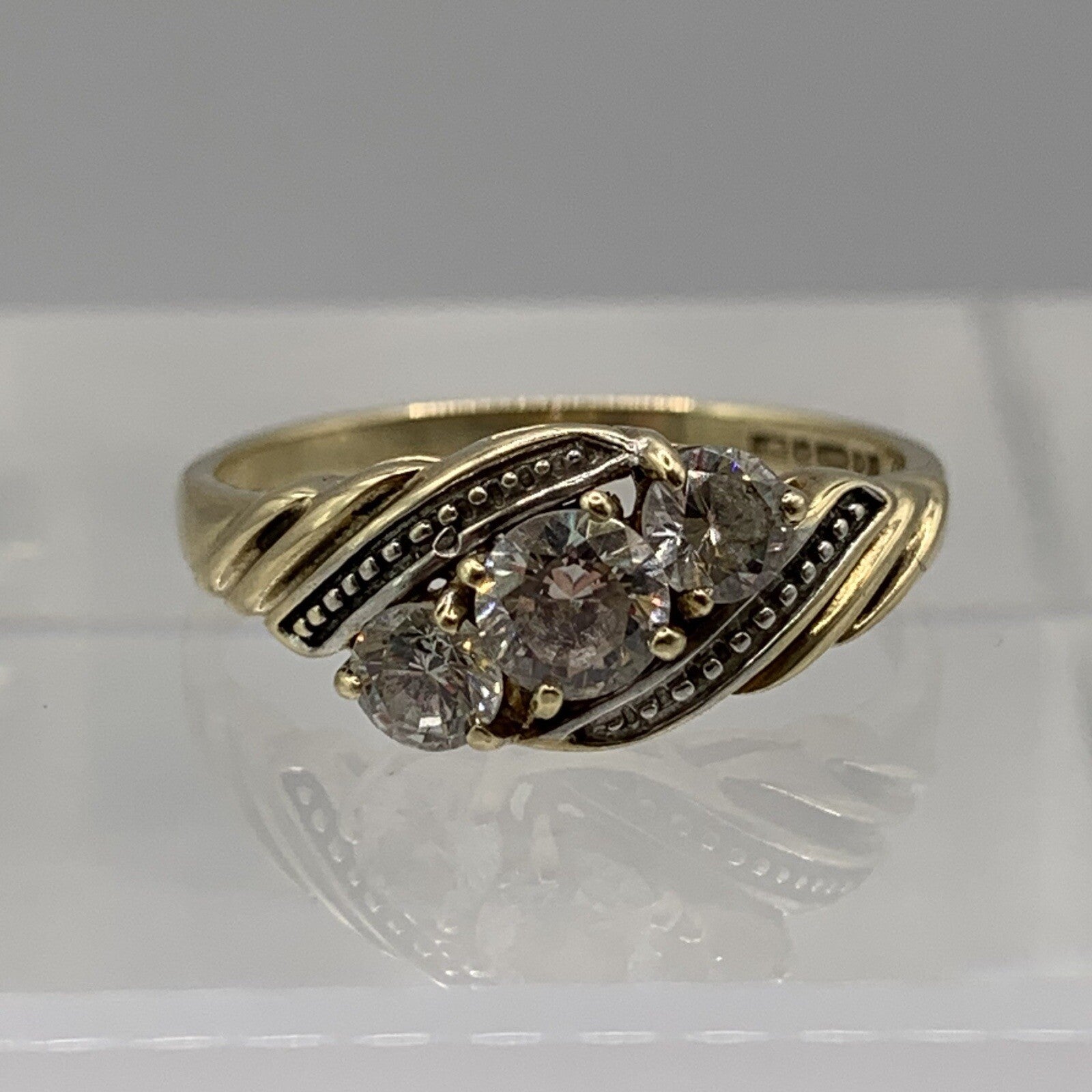 9 ct Gold Ring Diamonique Trilogy Twist - Size M 1/2