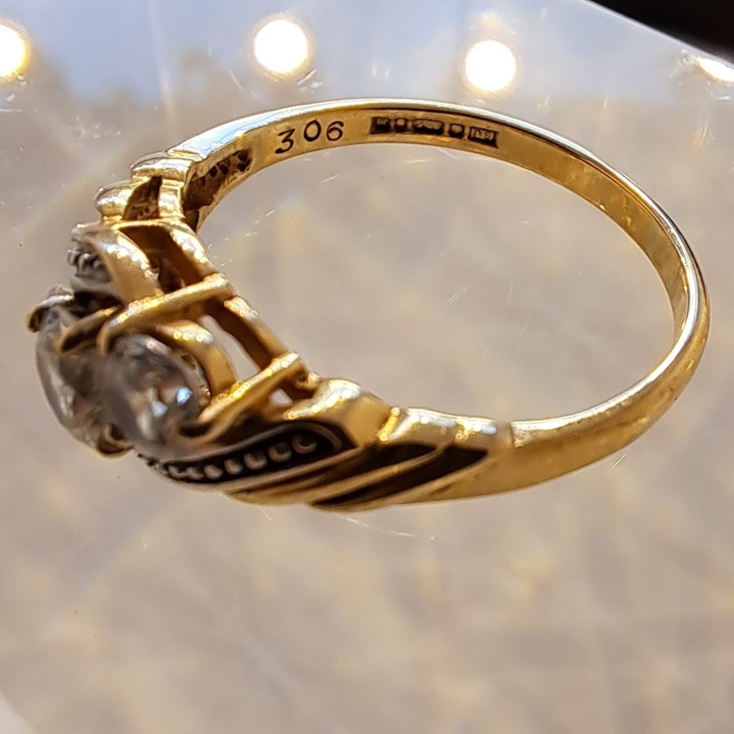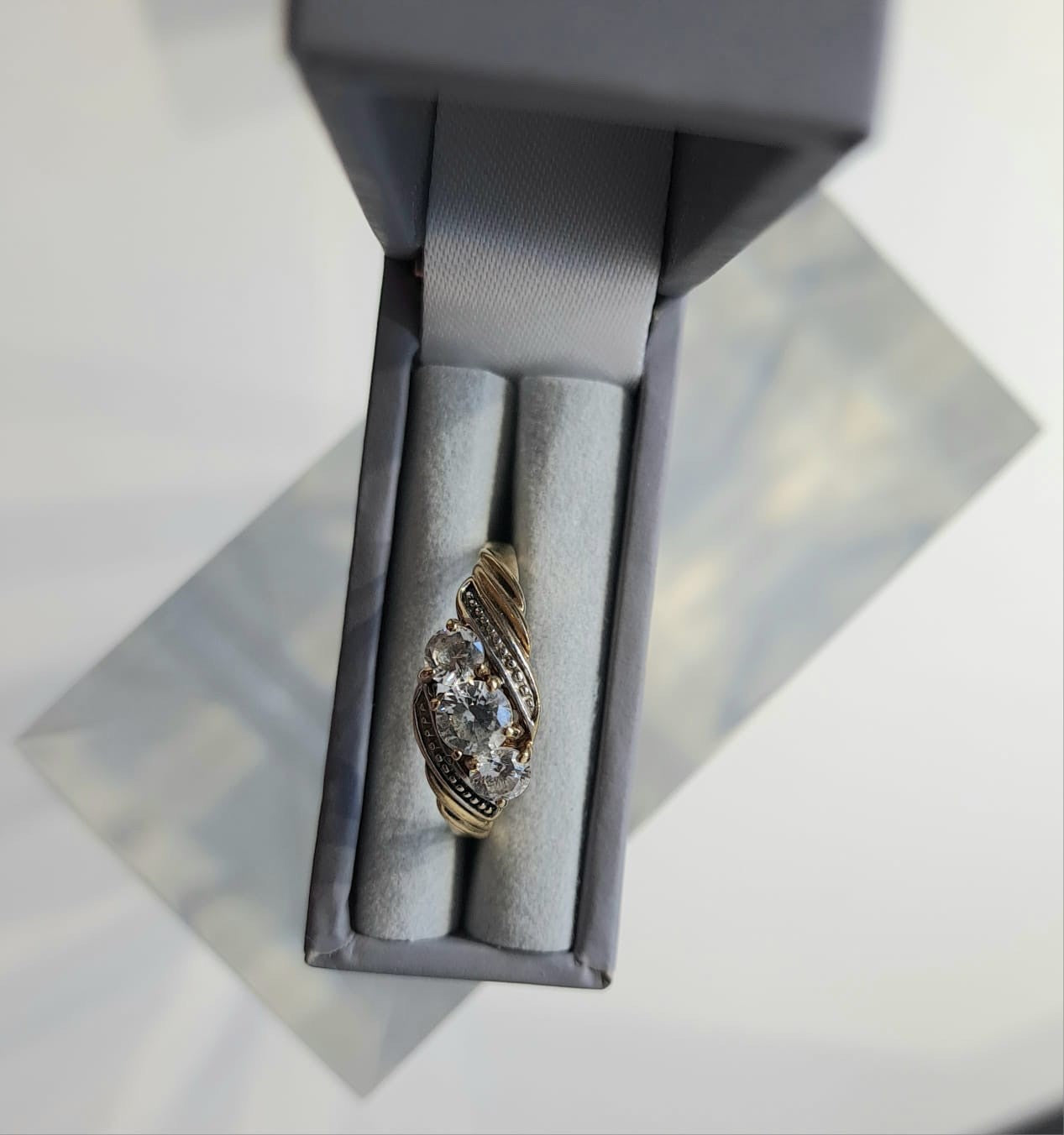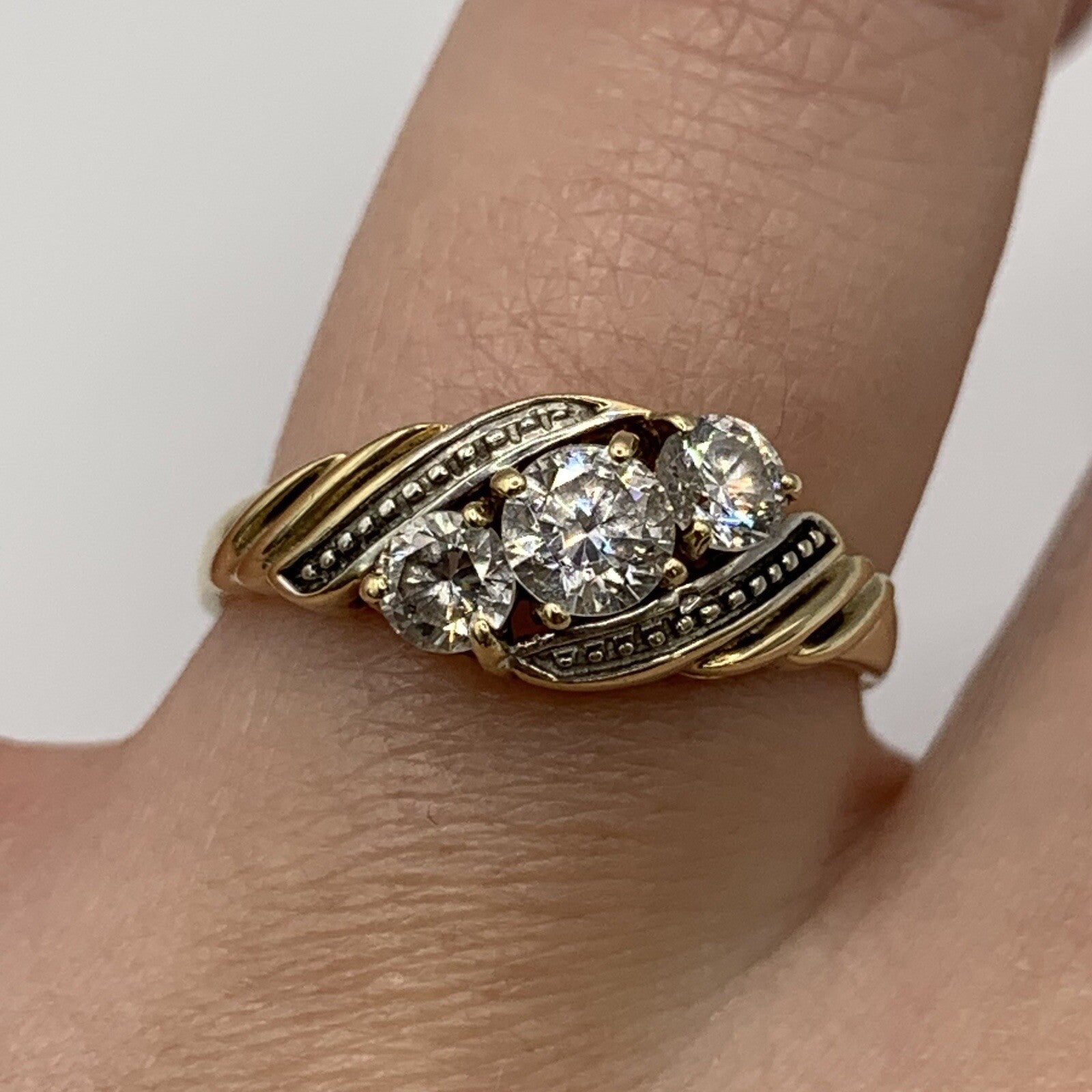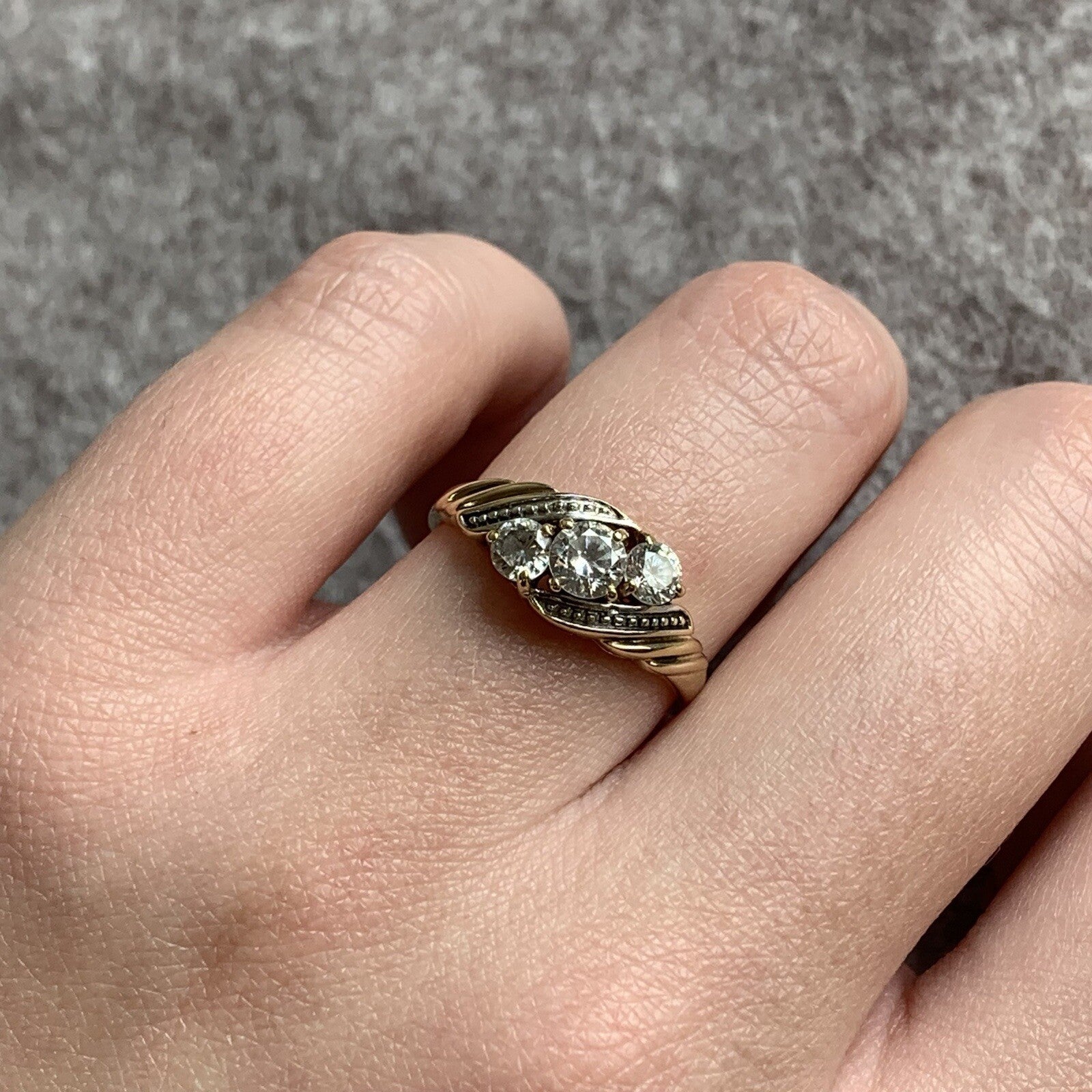9 ct Gold Ring Diamonique Trilogy Twist - Size M 1/2
