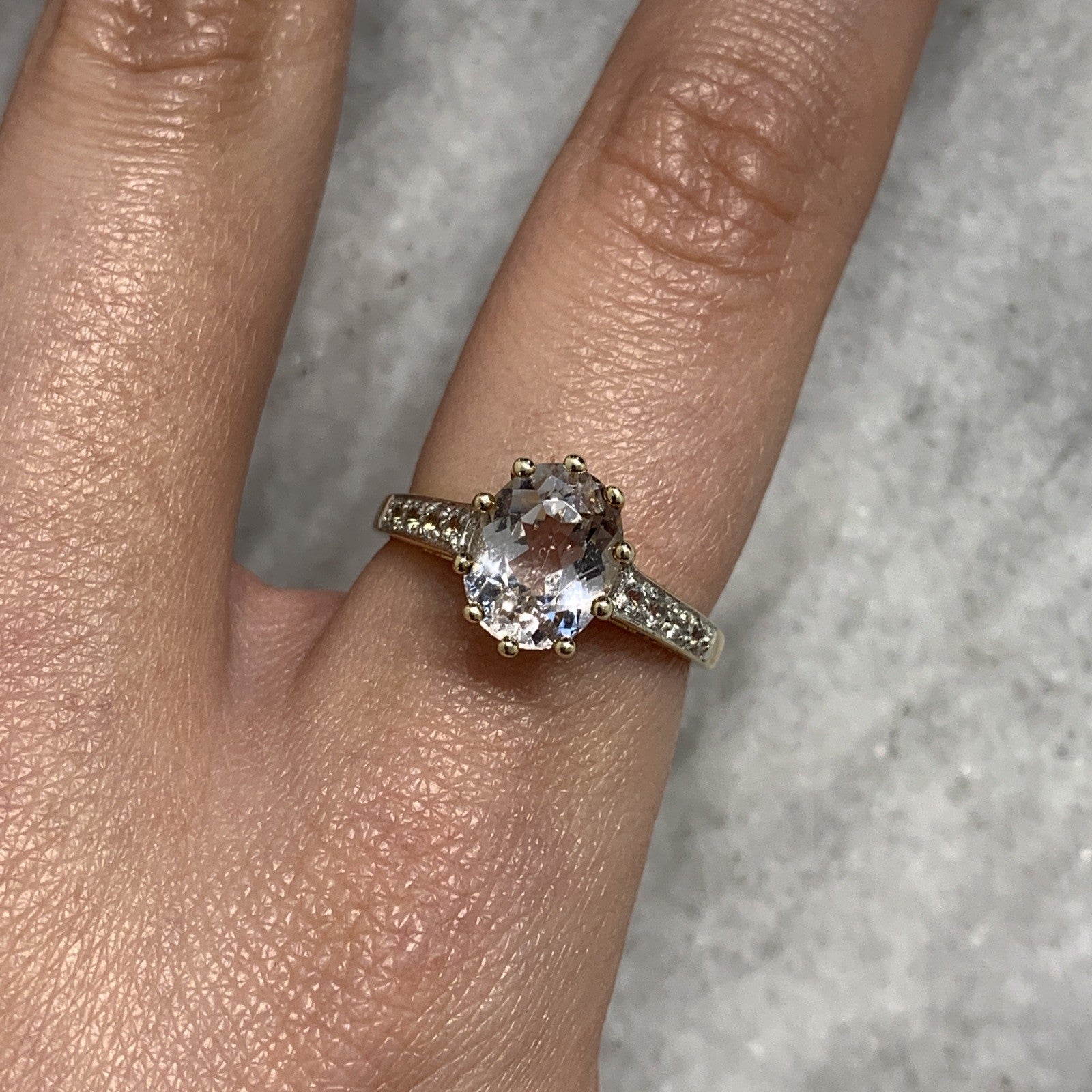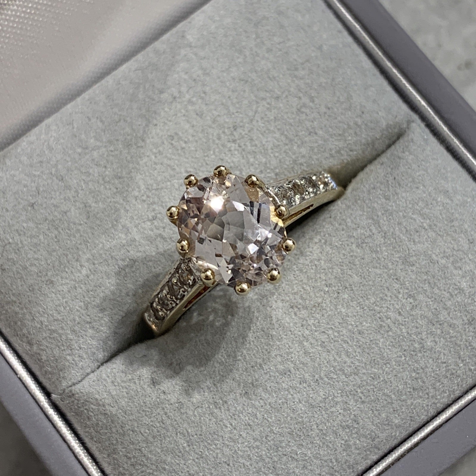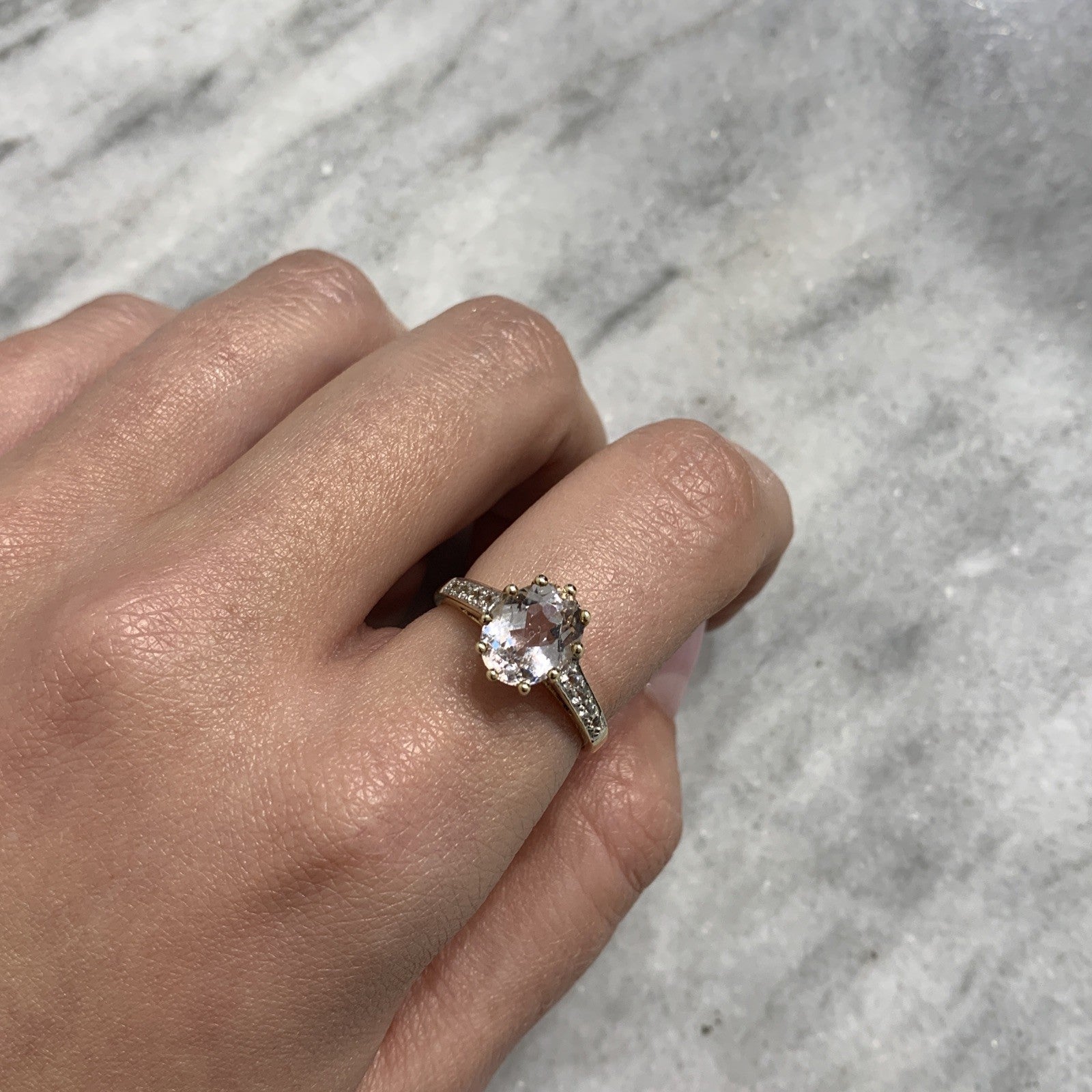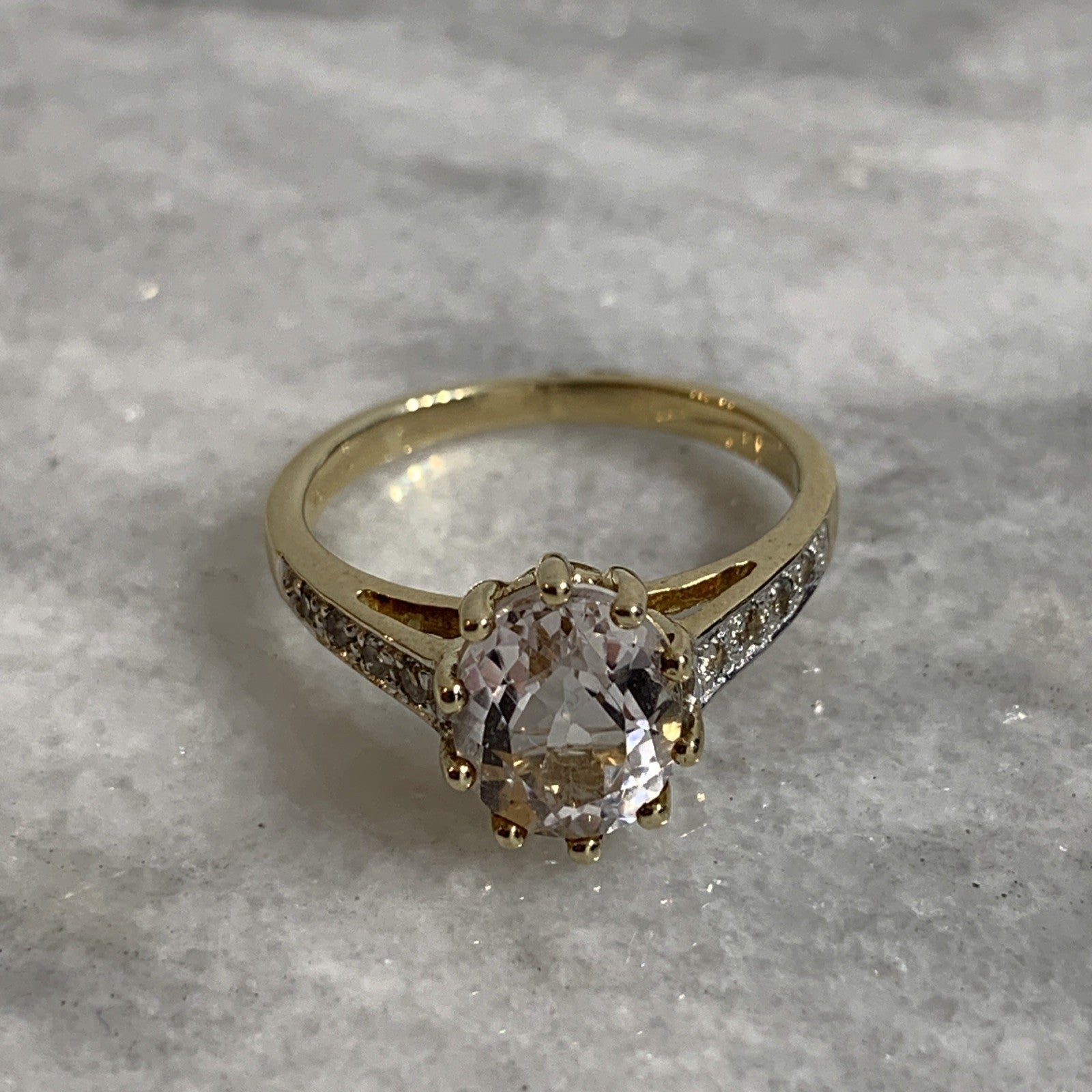 9 ct Gold Ring Kunzite White Topaz Solitaire With Accents Yellow Gold - Size N