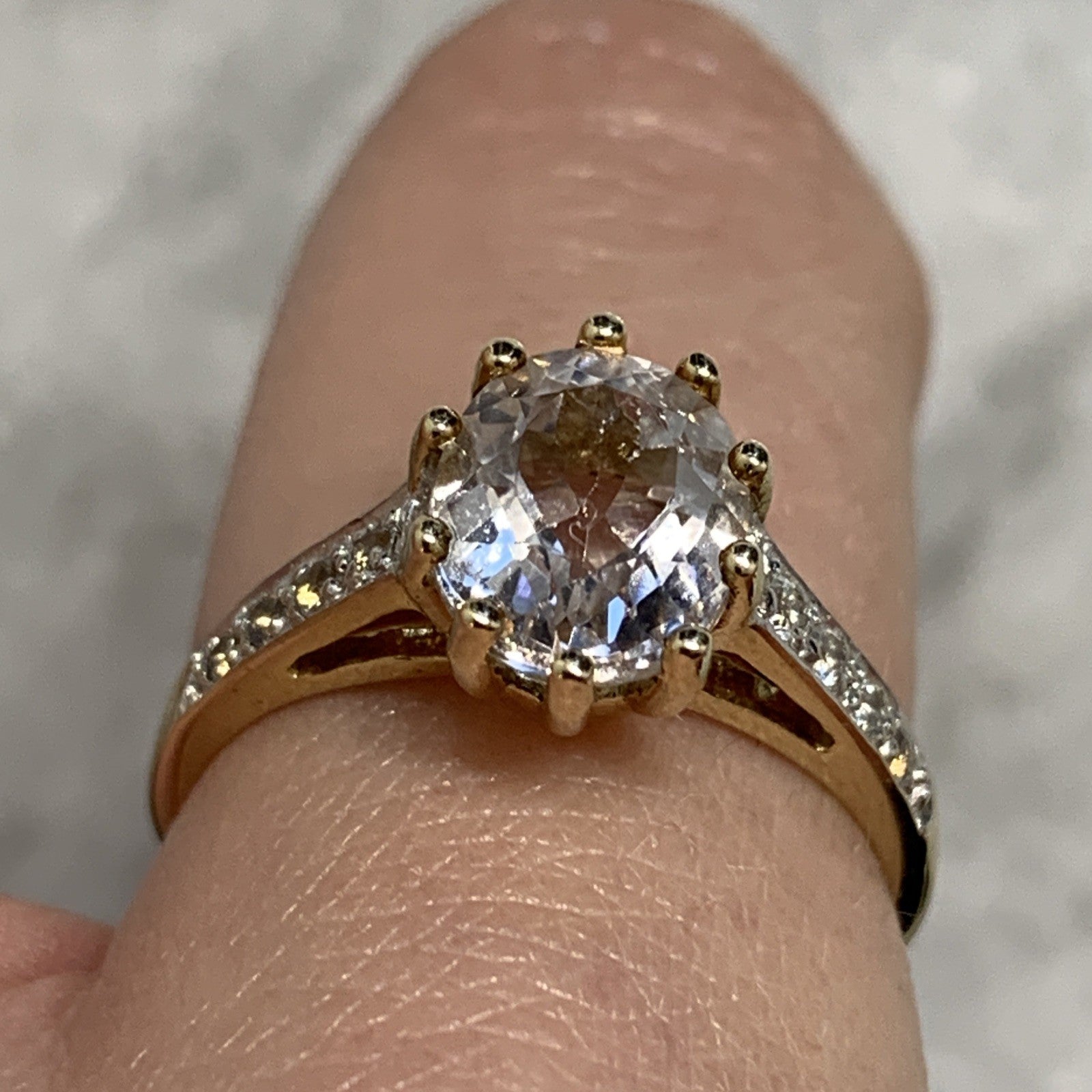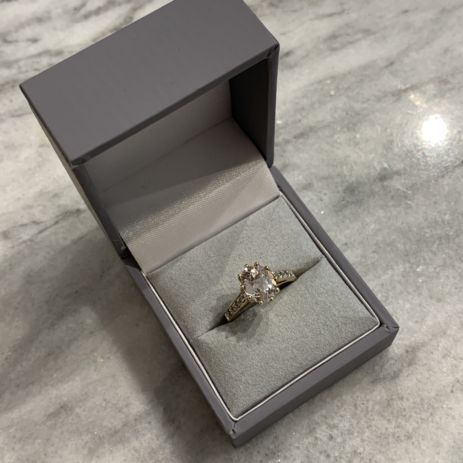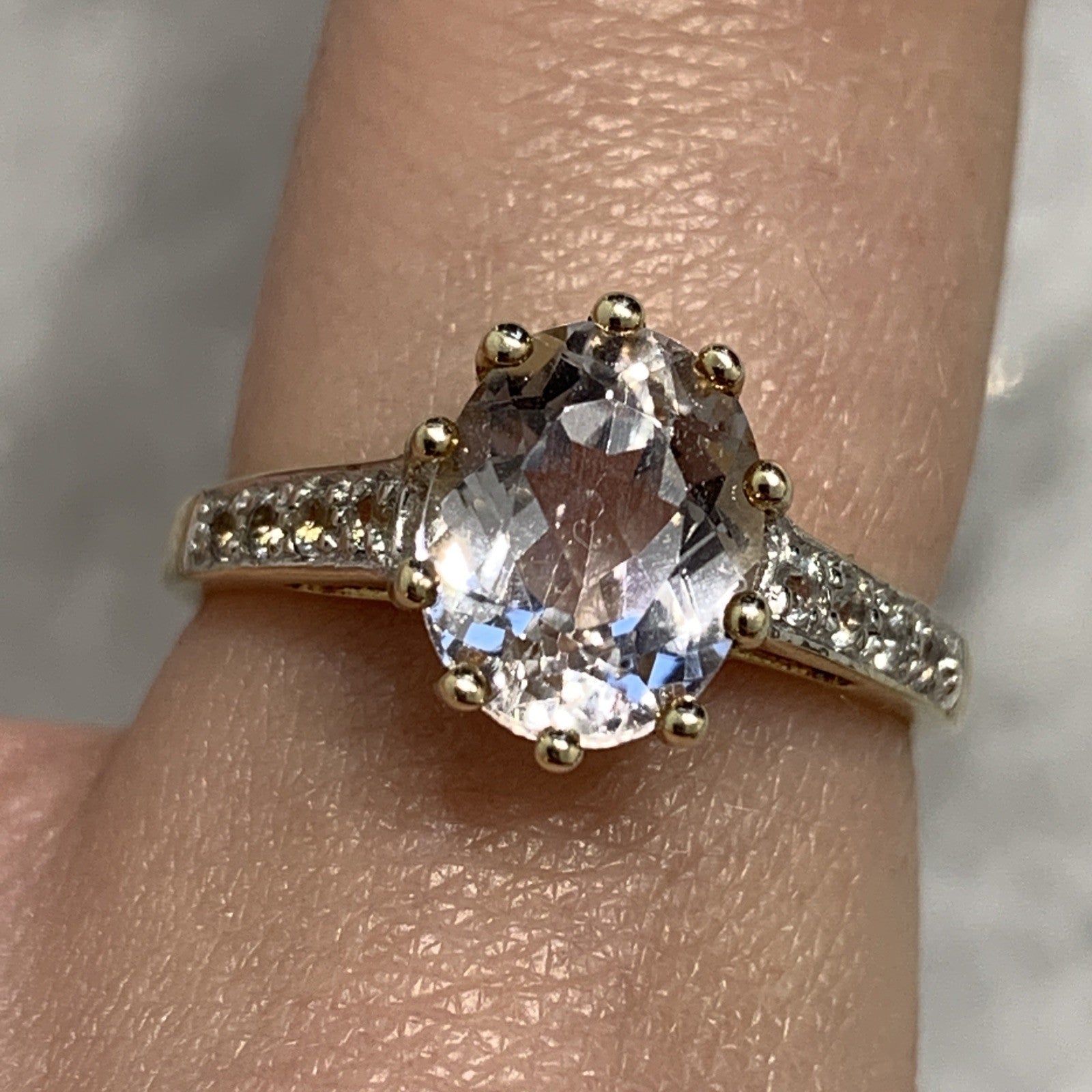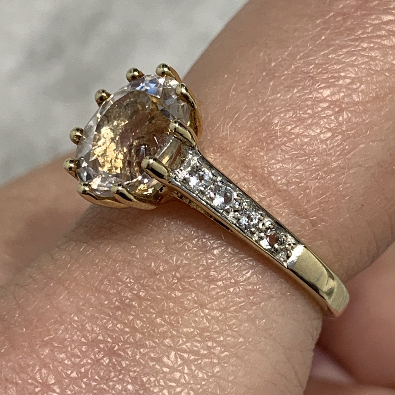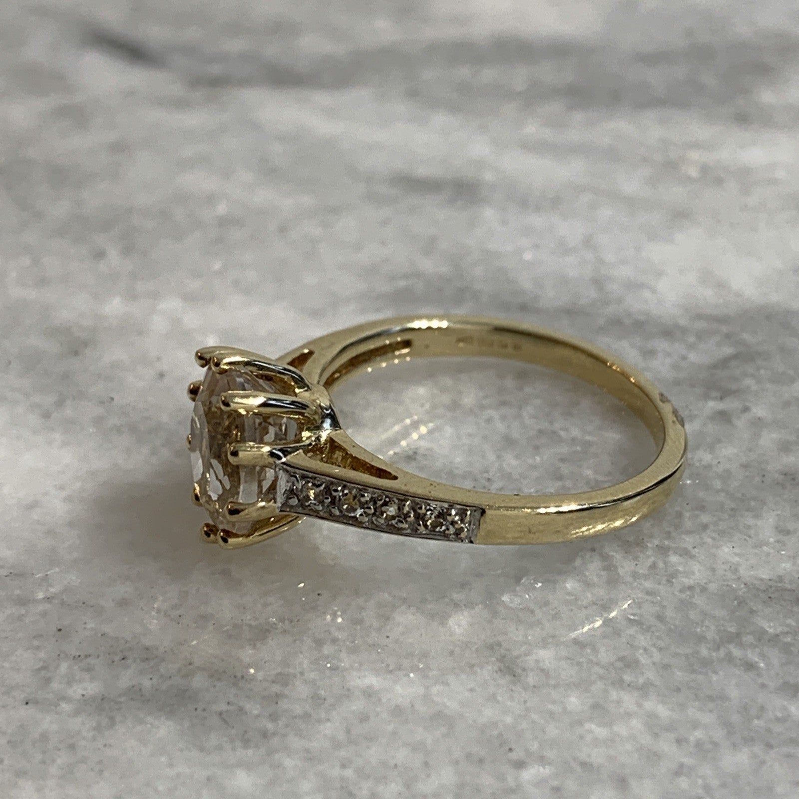 9 ct Gold Ring Kunzite White Topaz Solitaire With Accents Yellow Gold - Size N