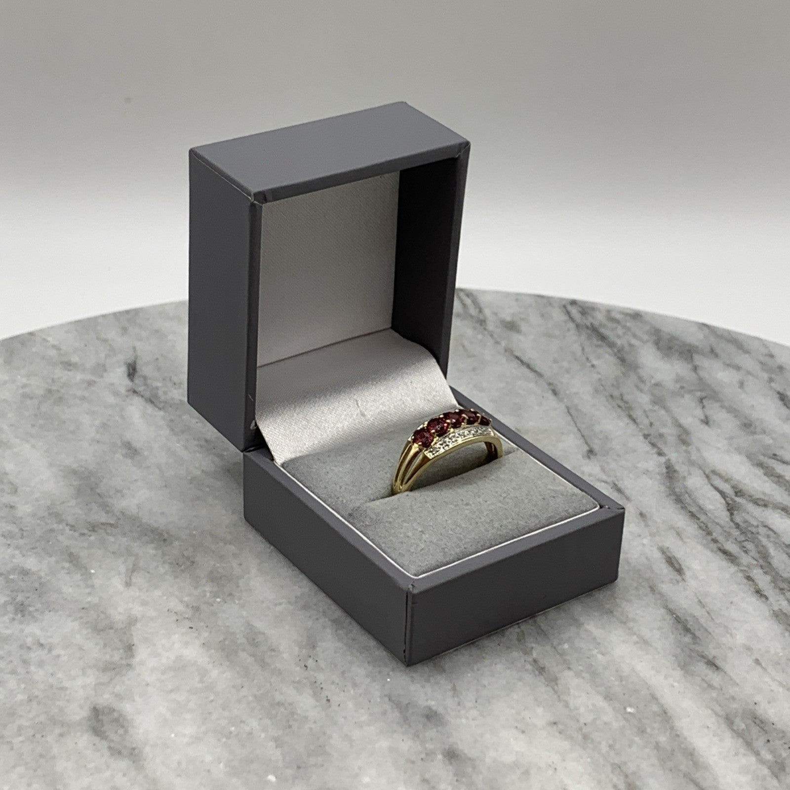 9 ct Gold Ring Pink Tourmaline Diamond Band in 375 Yellow Gold - Size U