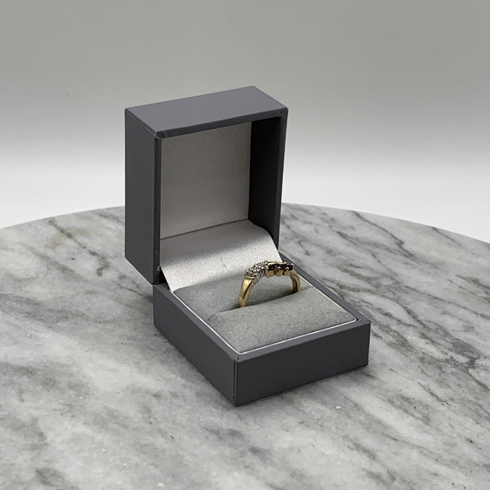 9 ct Gold Ring Sapphire Diamond Wave Band Set In 375 Yellow Gold - Size P