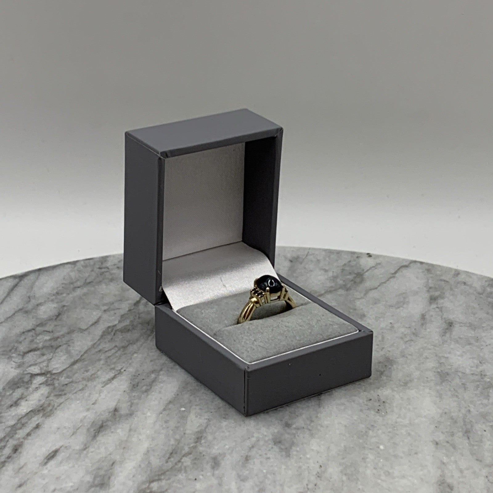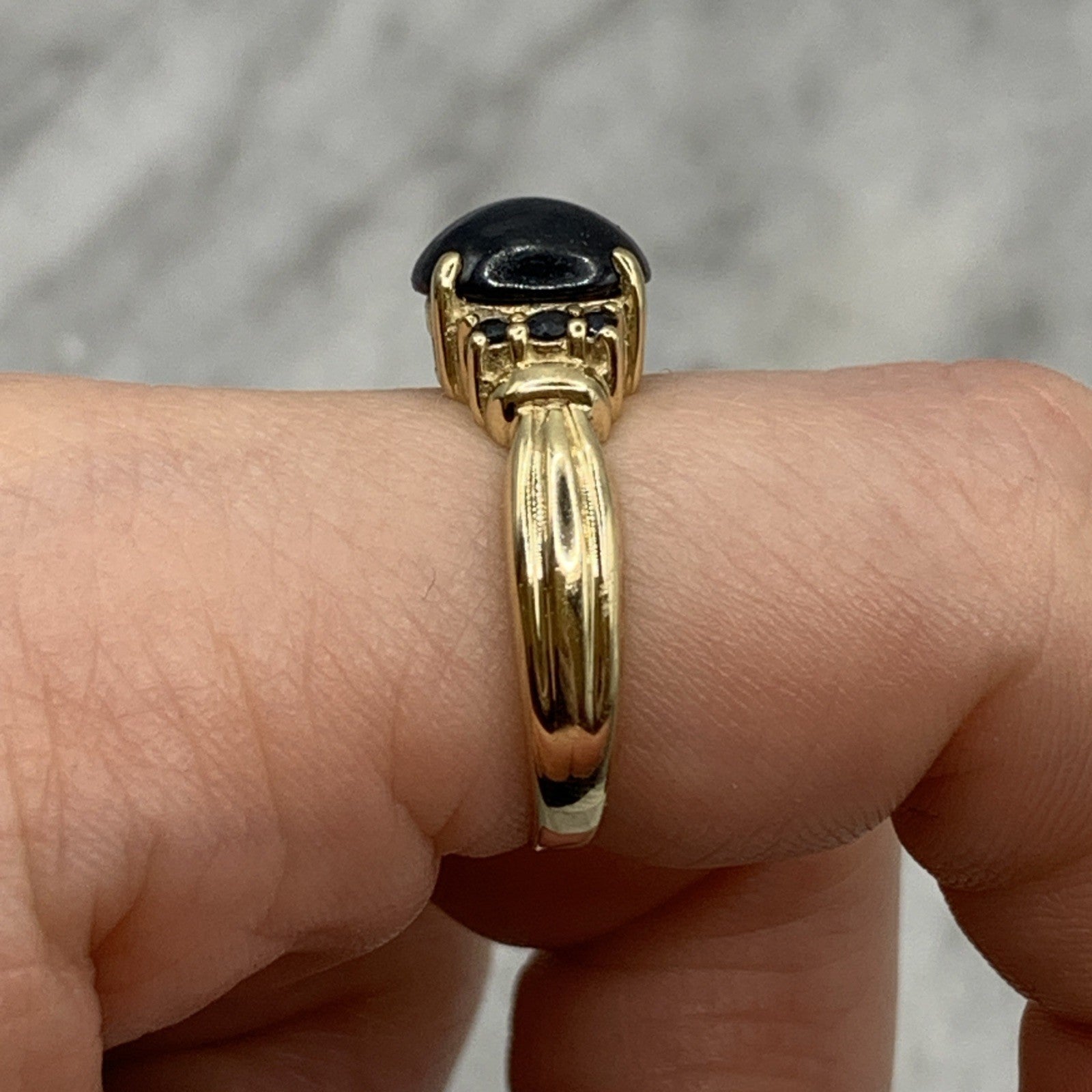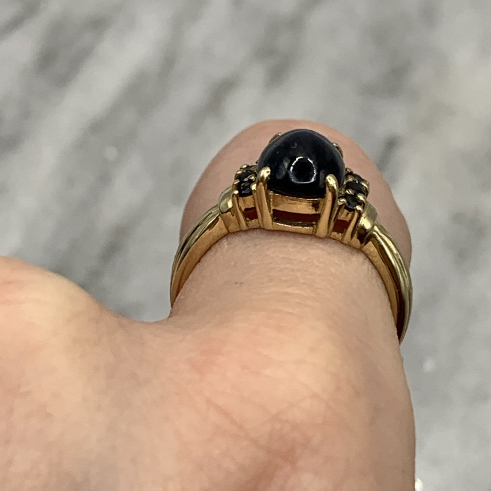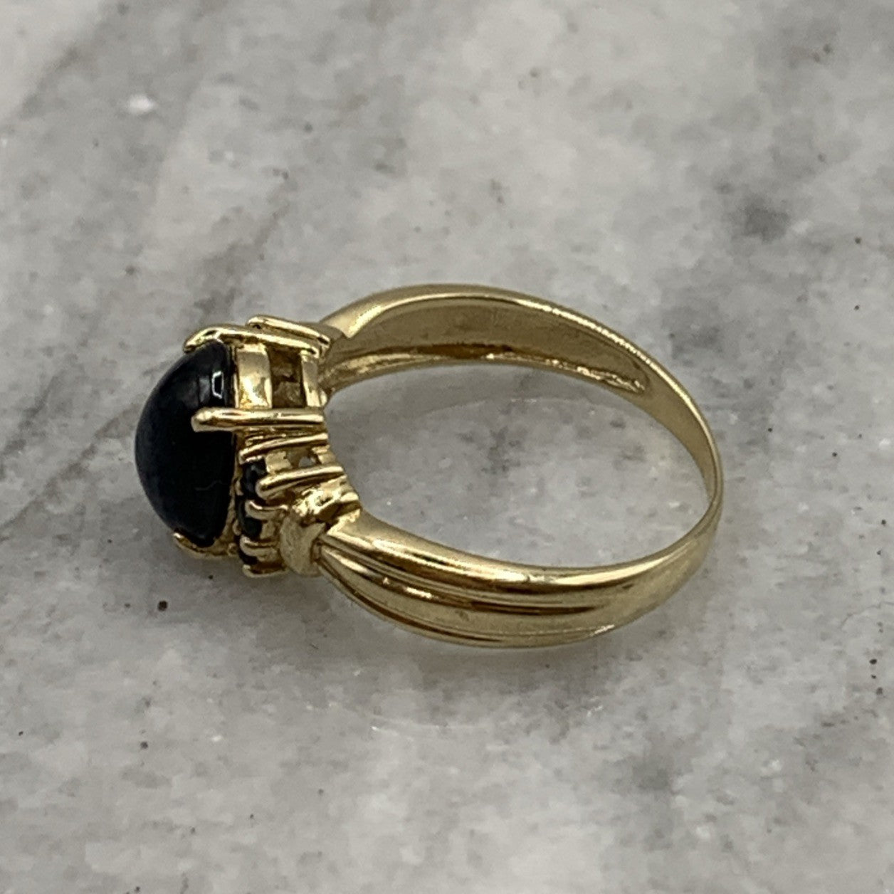 9 ct Gold Ring Star Sapphire Cabochon Accent Band of 375 Yellow Gold - Size N