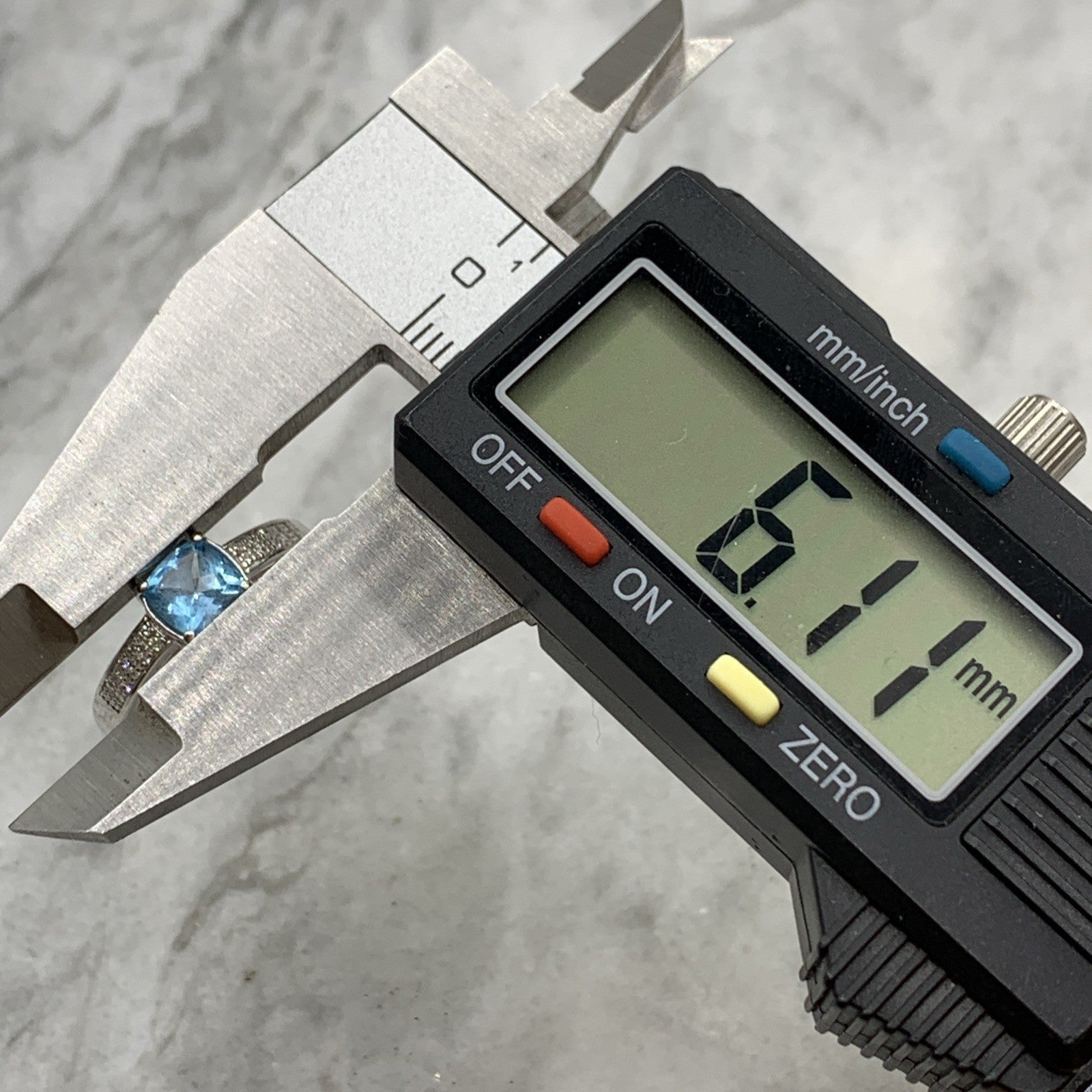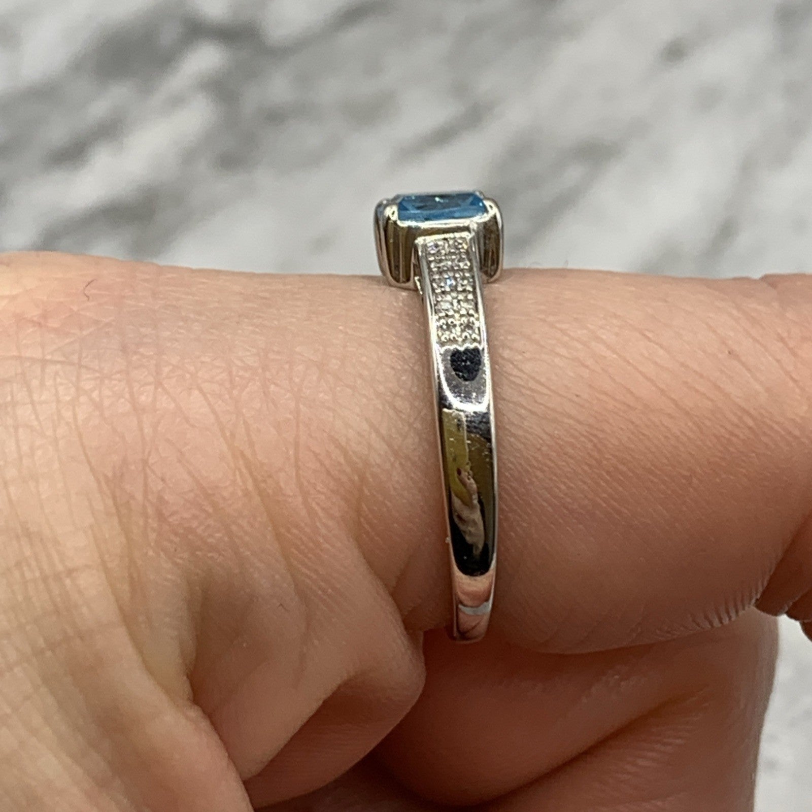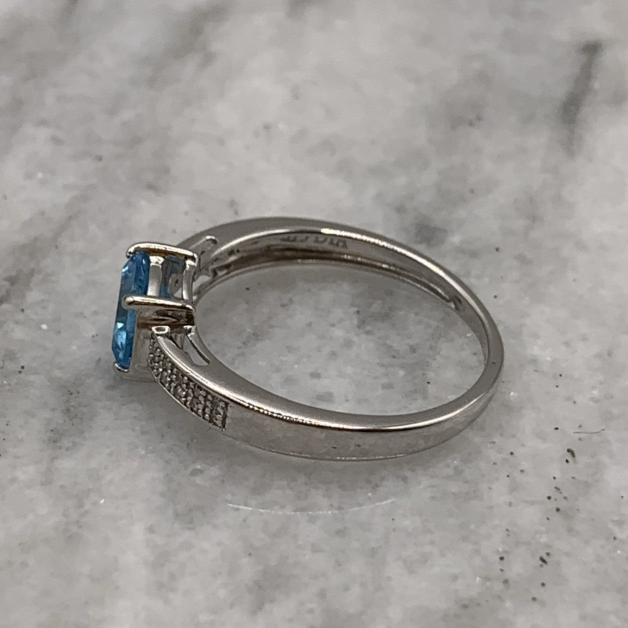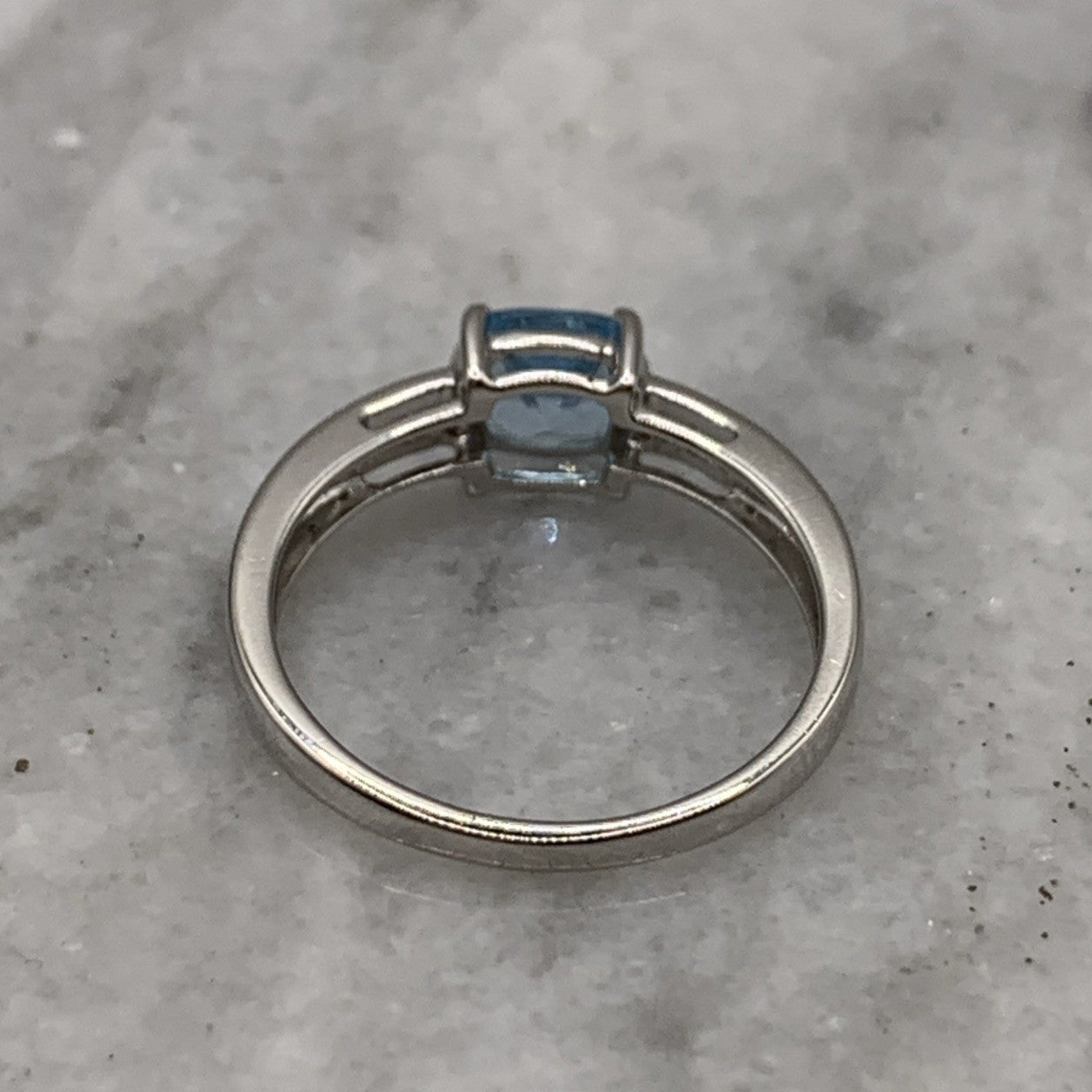 9 ct Gold Ring Swiss Blue Topaz Cushion Diamond in 375 White Gold - Size N 1/2