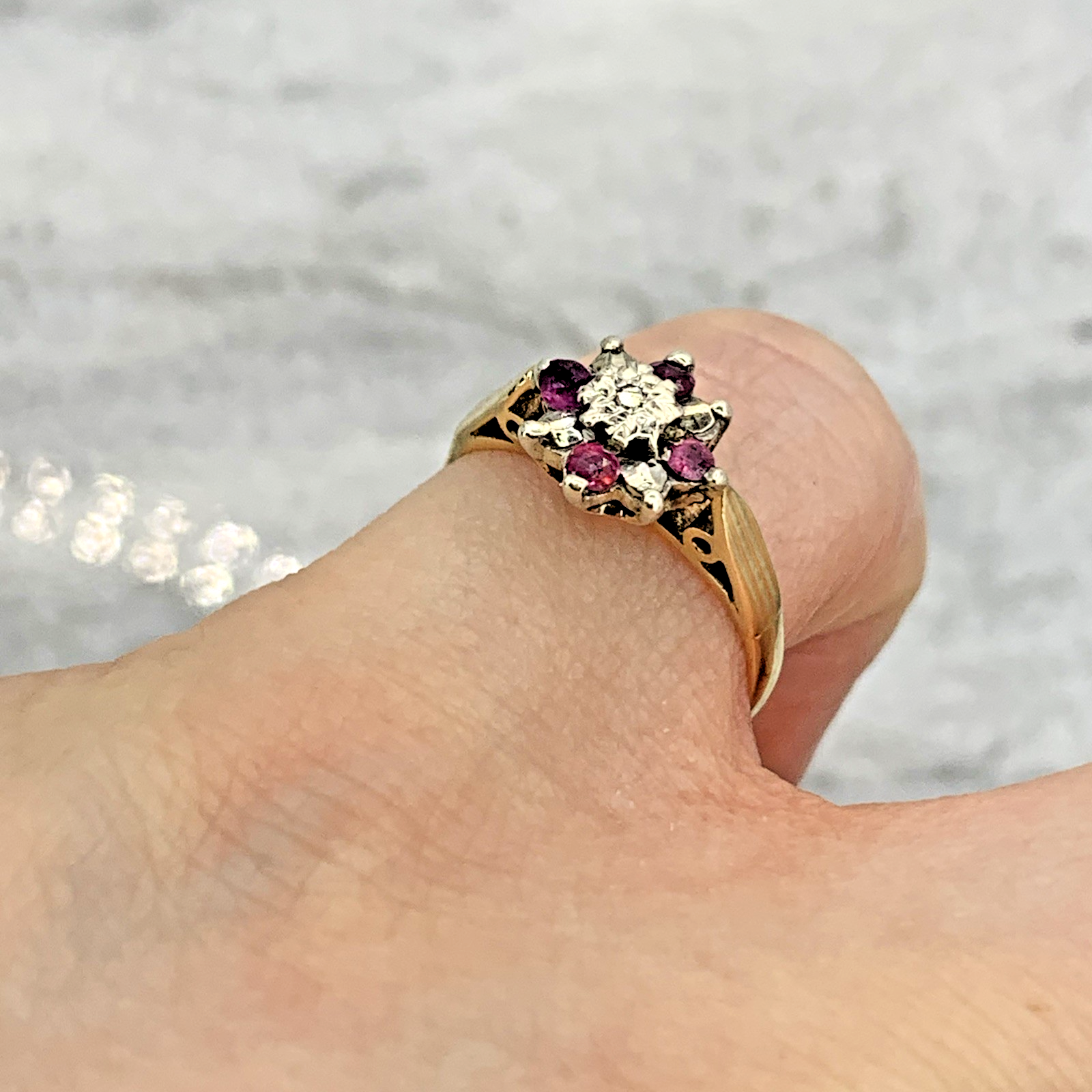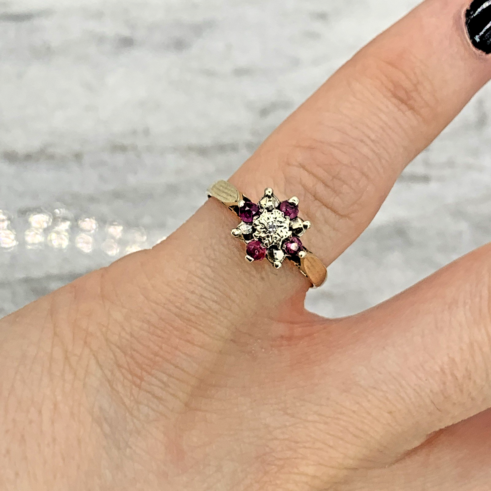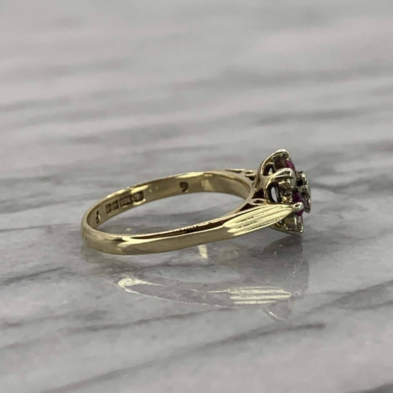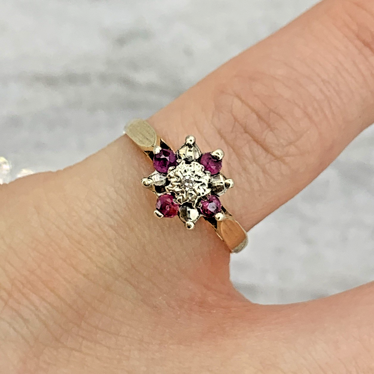 9 ct Gold Ruby & Diamond Cluster Ring 9ct 9k 375 Yellow Gold - Size I