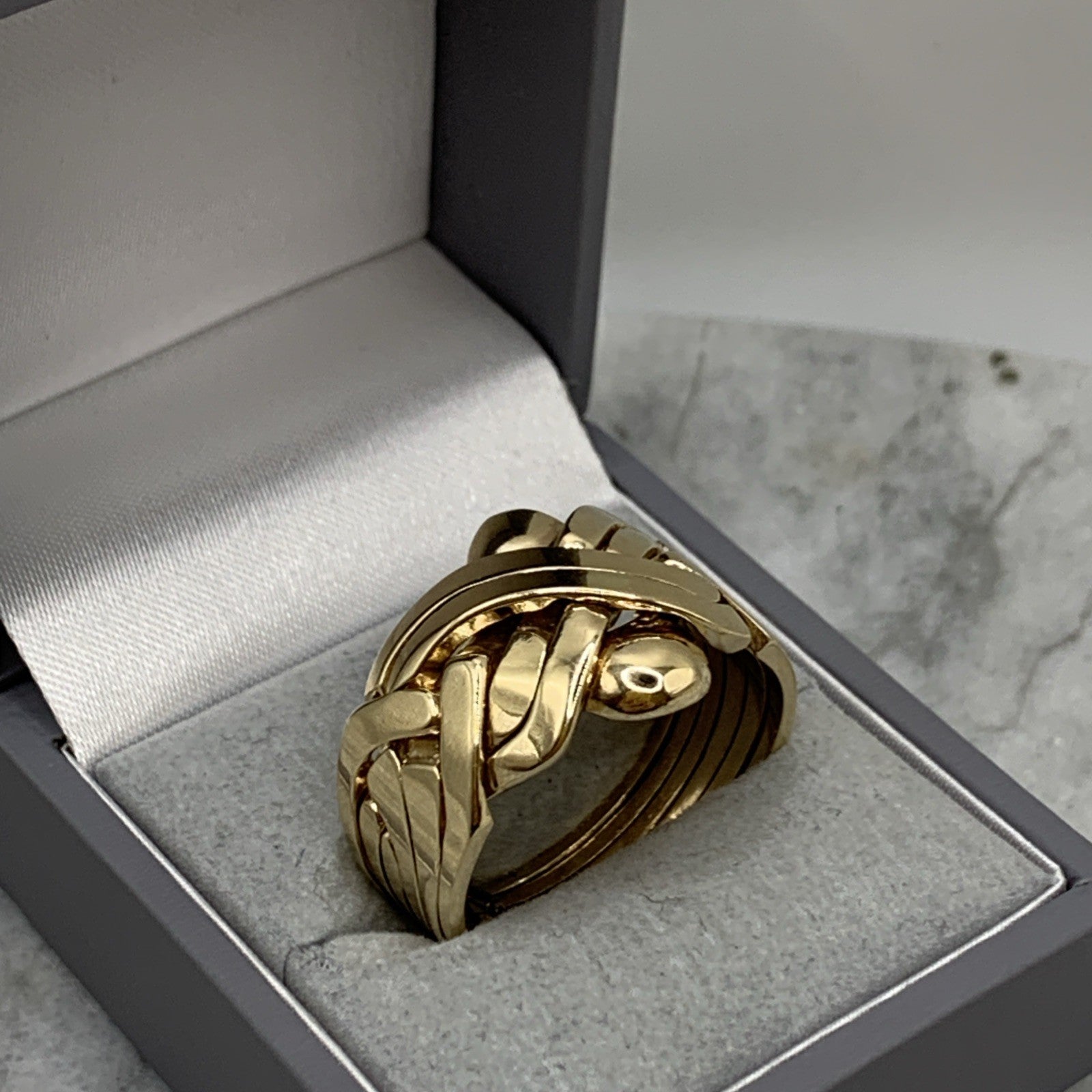 A beautifully crafted six piece puzzle ring.