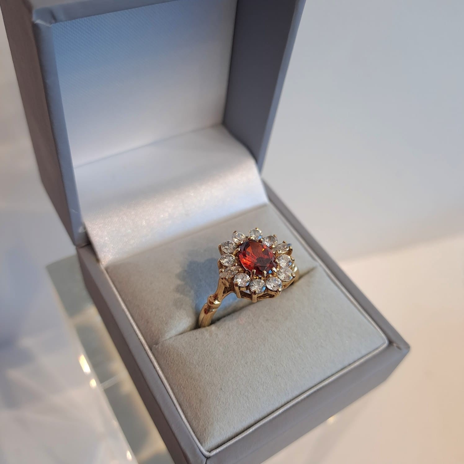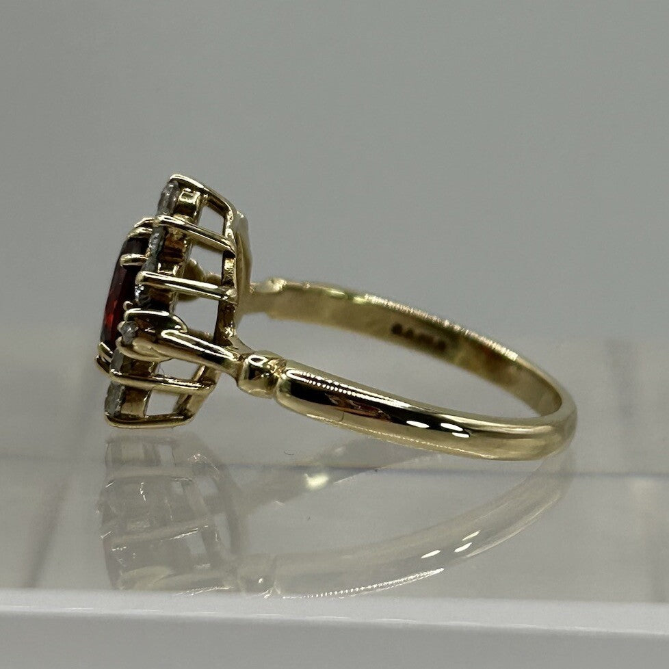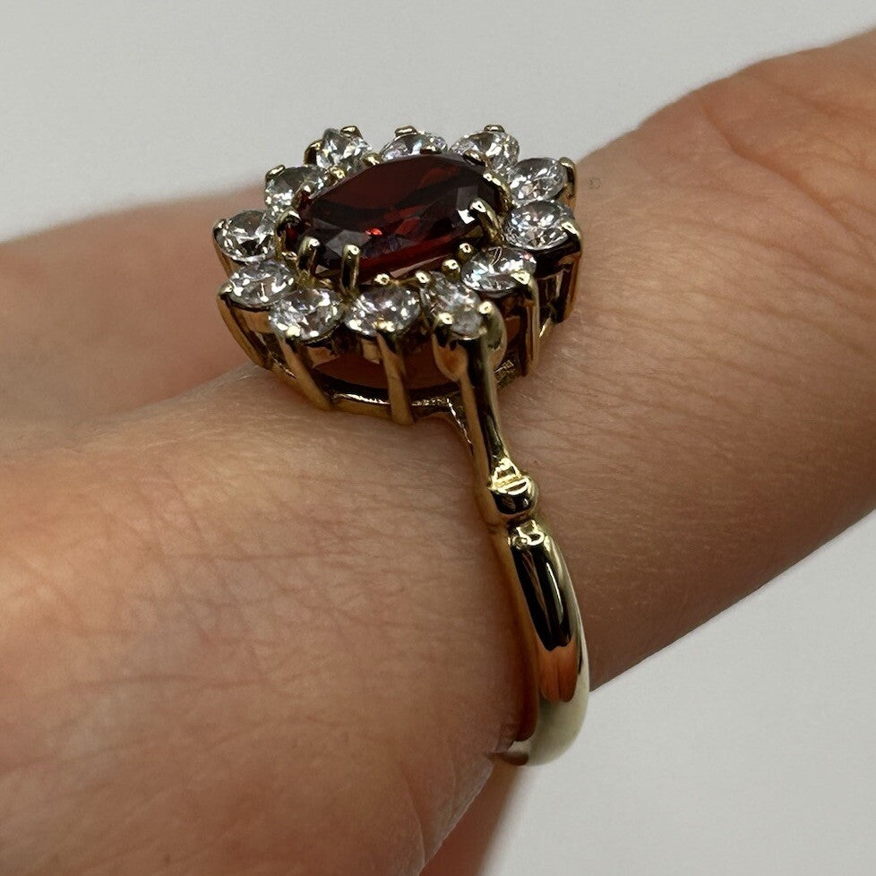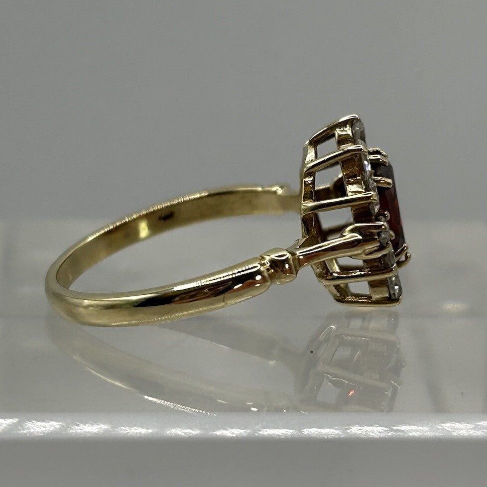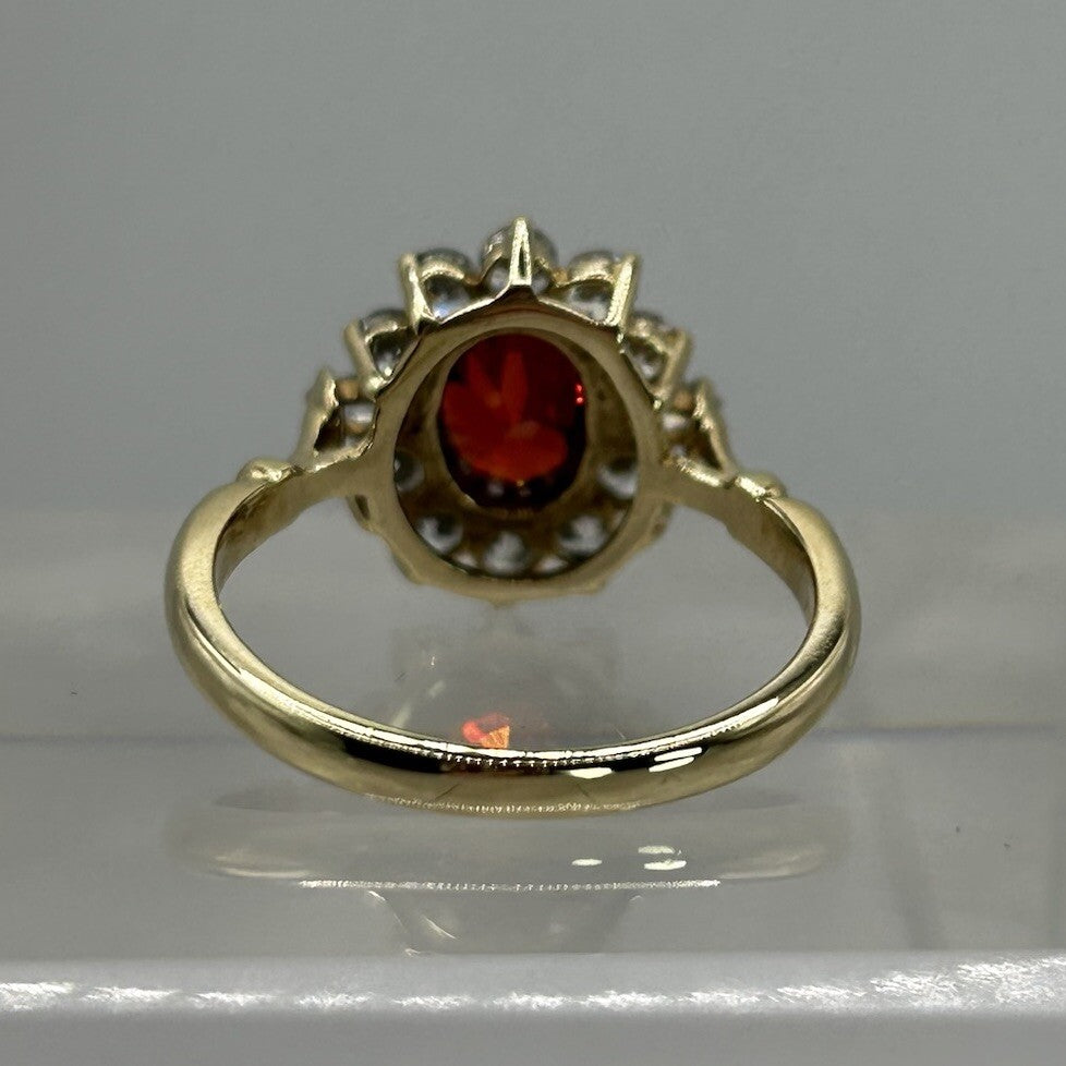 9 ct Gold Spessartine Garnet Ring CZ Halo Cluster Set in Yellow Gold - Size S