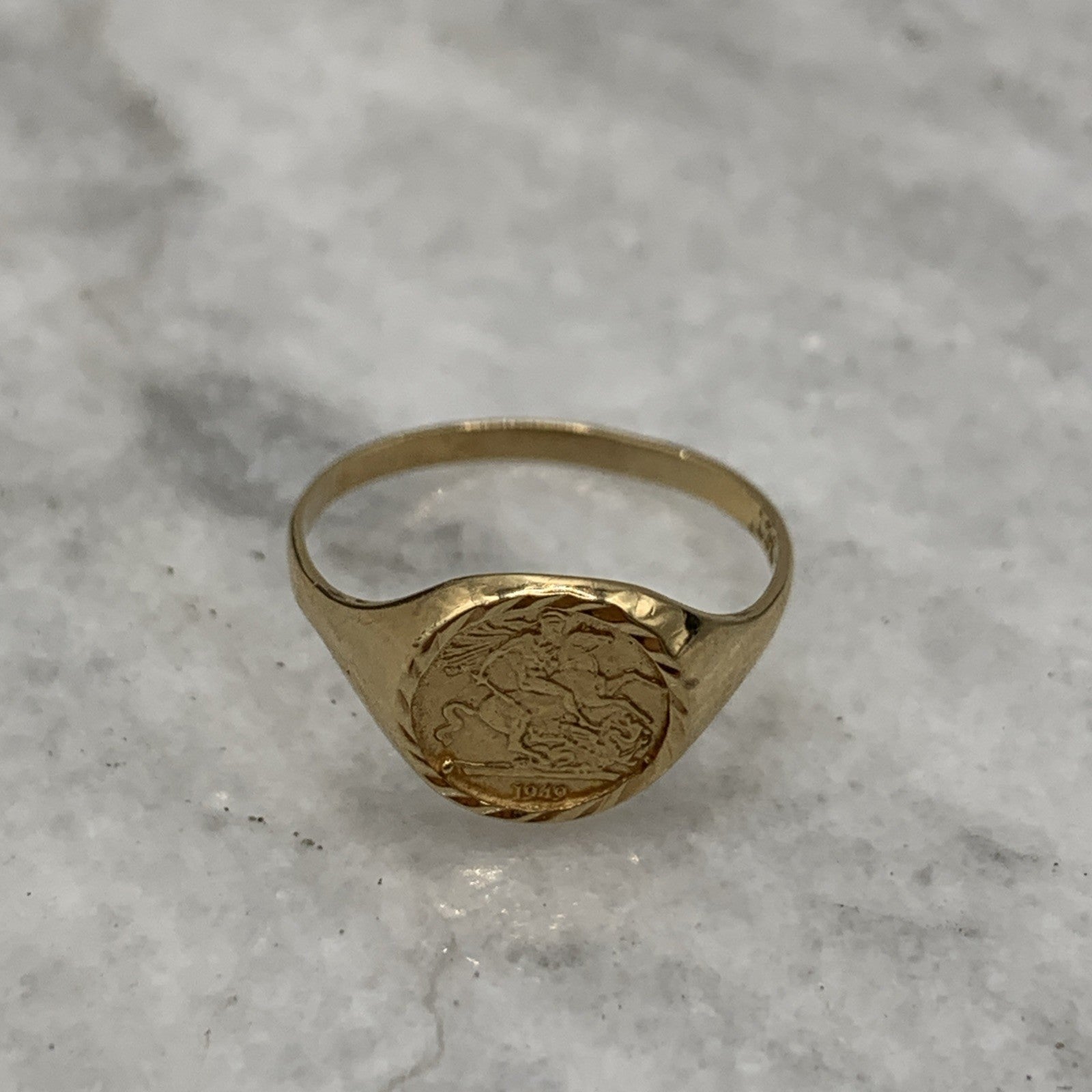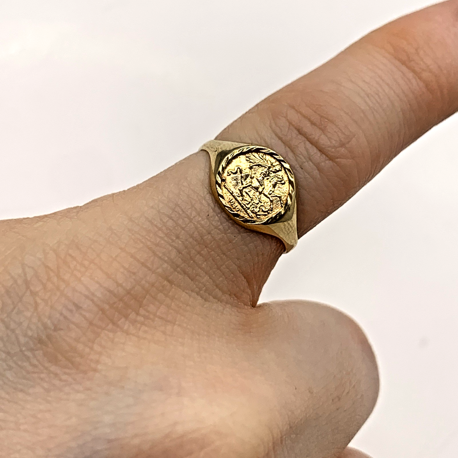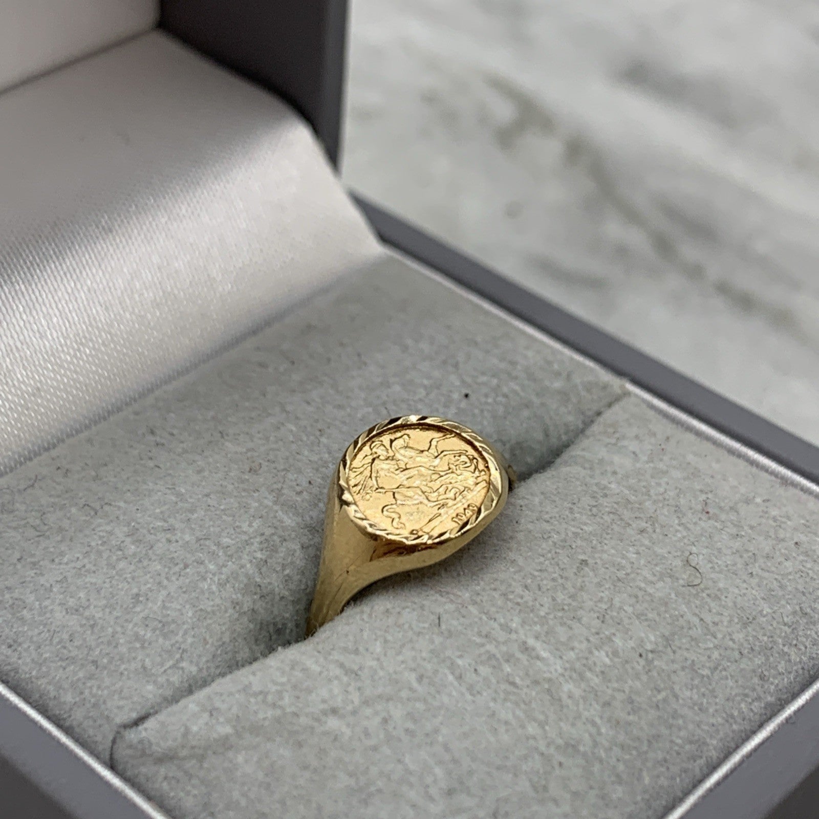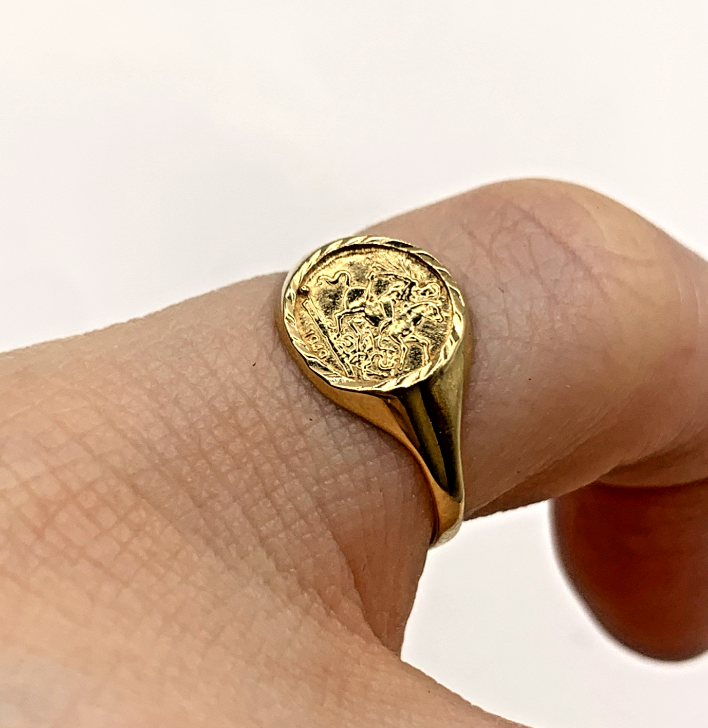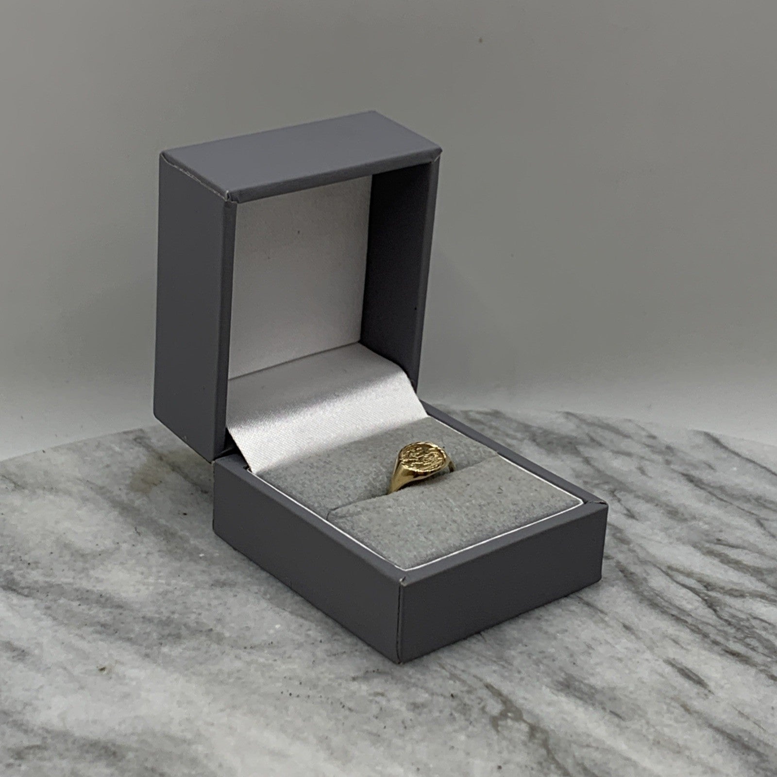 9 ct Gold St Christopher Pinky Juniors Ring 9k 375 Yellow Gold - Size F 1/2