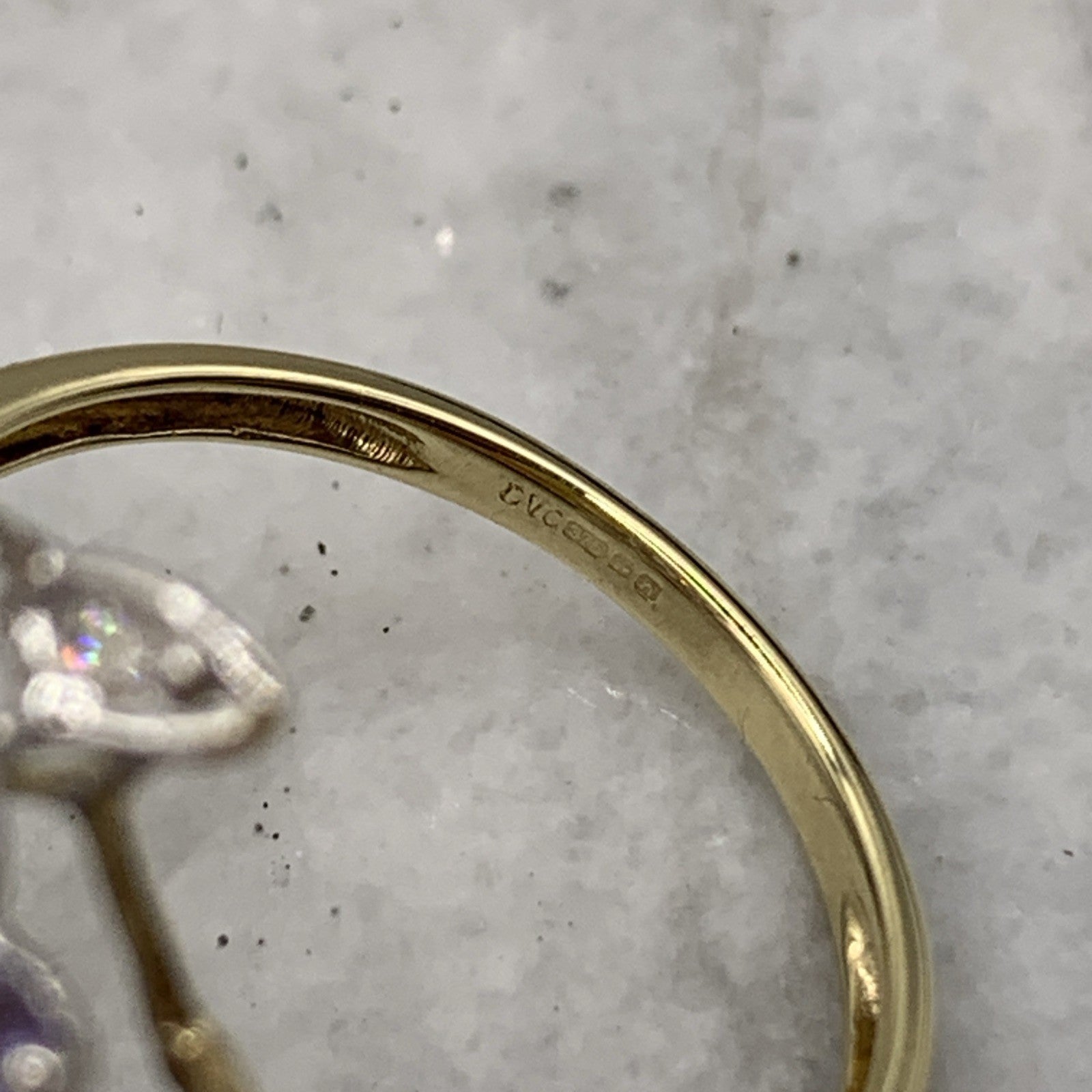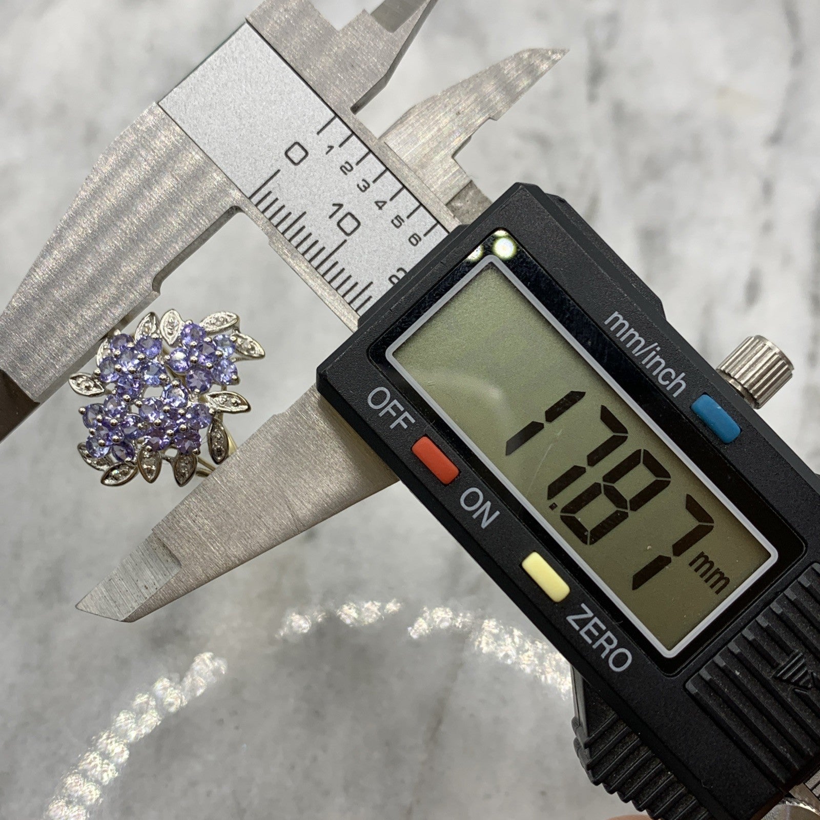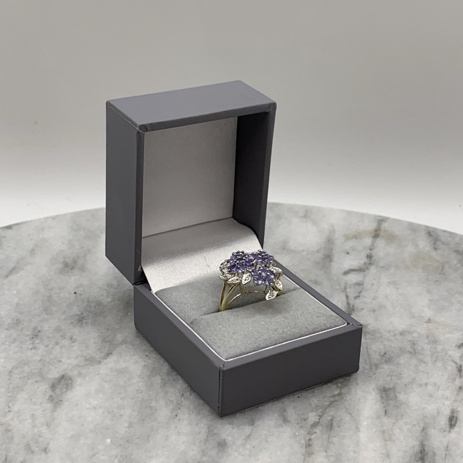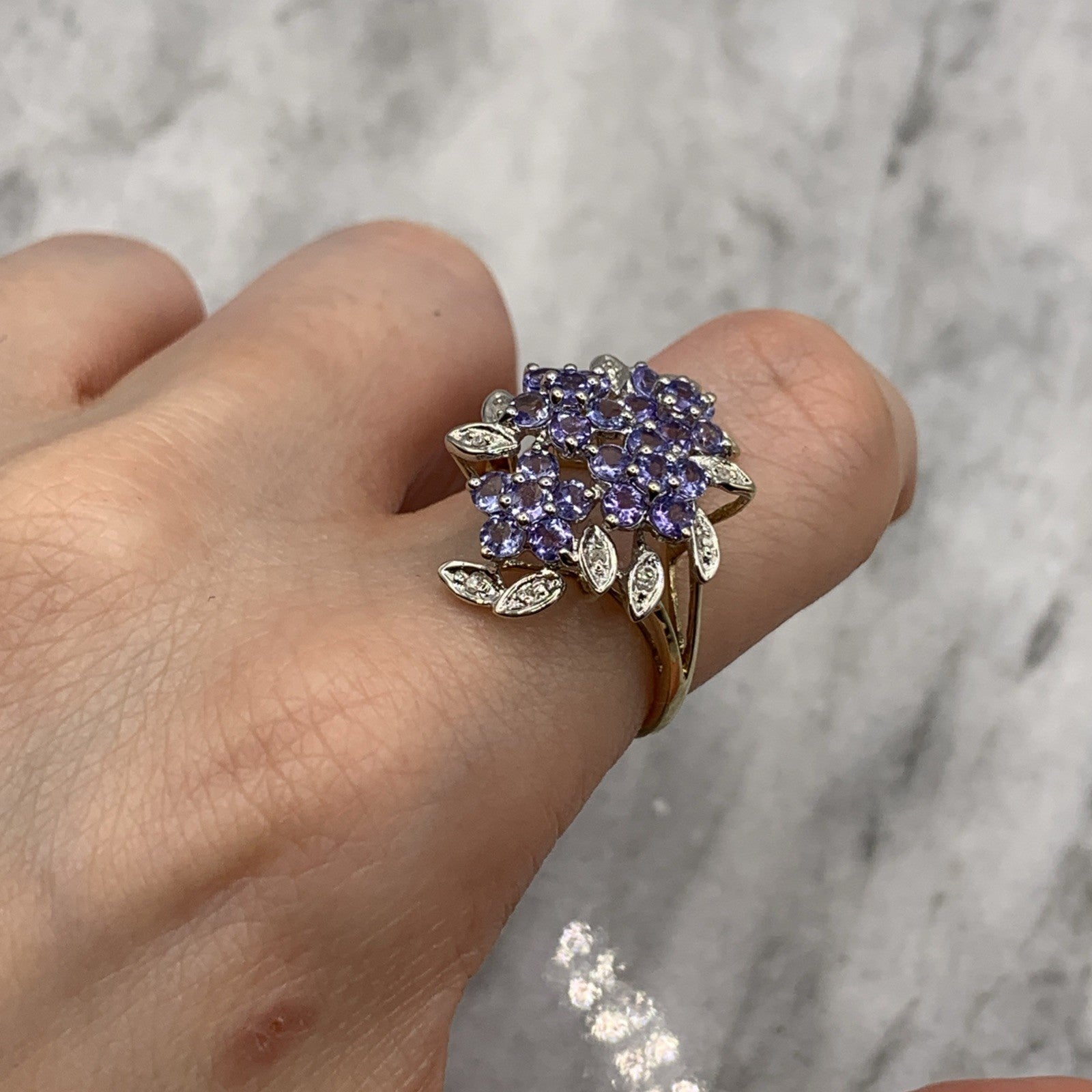 9 ct Gold Tanzanite & Diamond Flower Cluster Ring 375 9k Yellow Gold - Size P