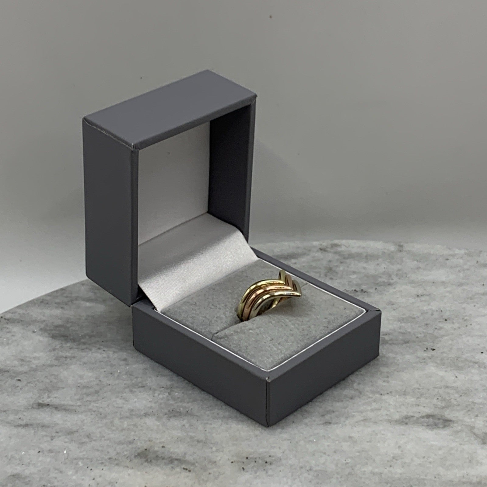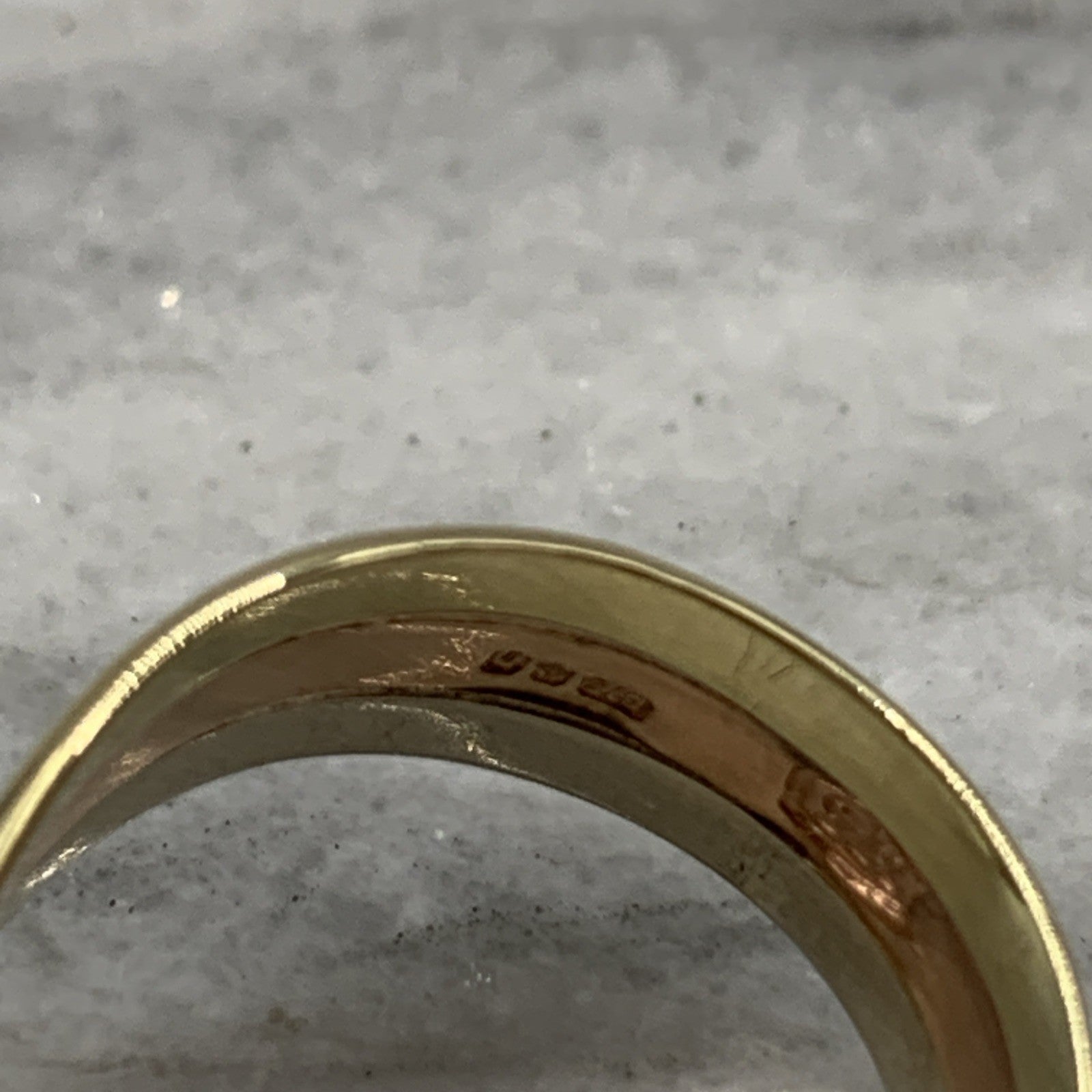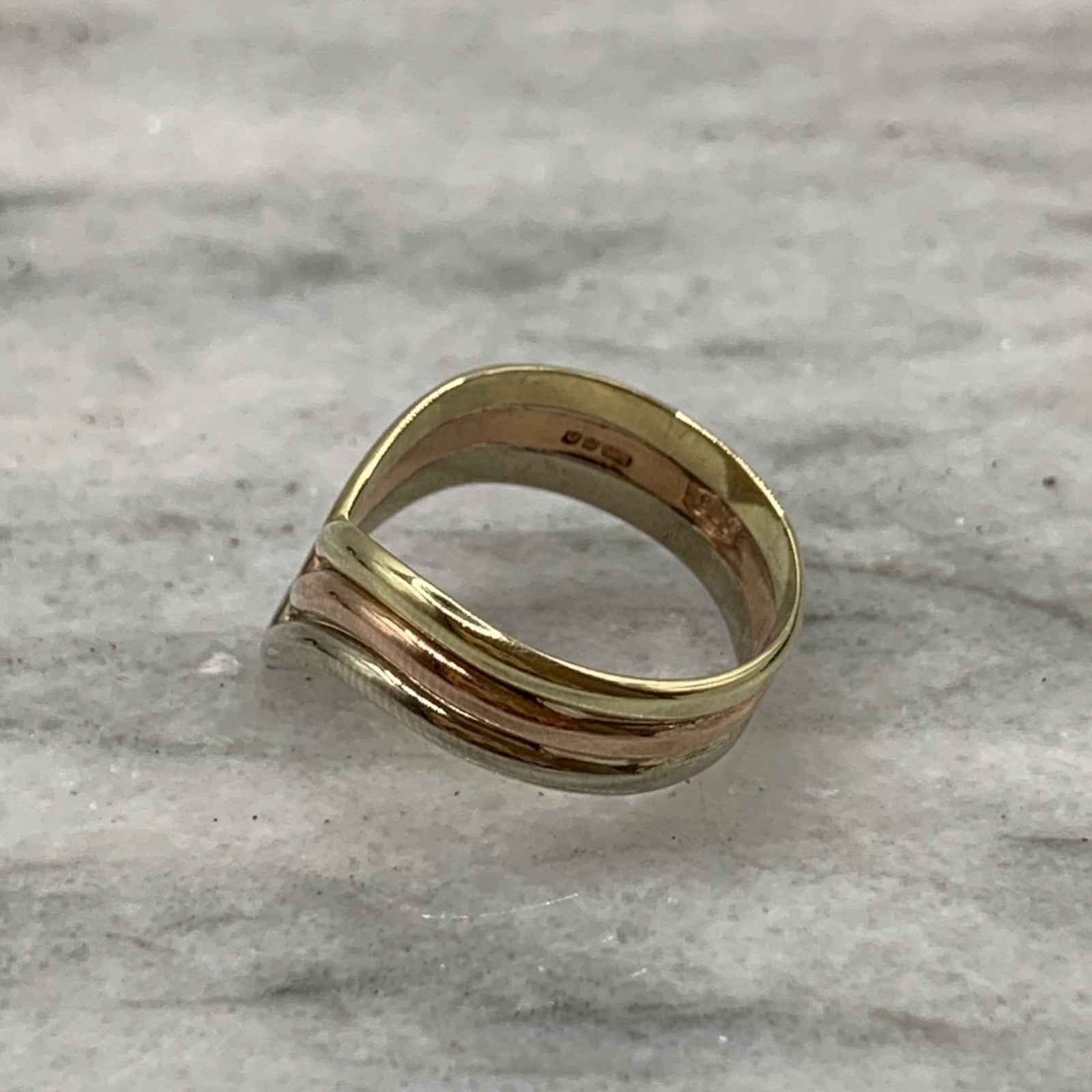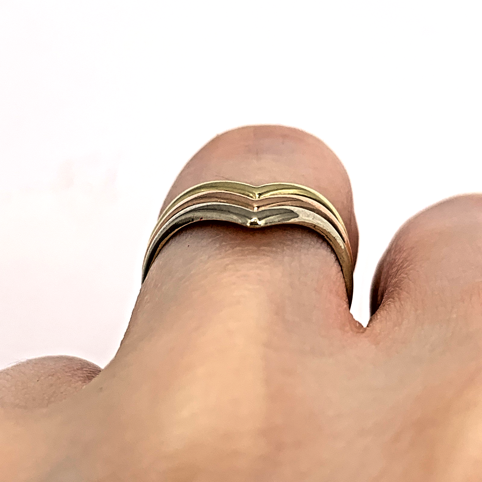 9 ct Gold Three Tone Wishbone Triple Stack Ring 9k 375 Yellow Gold - Size K