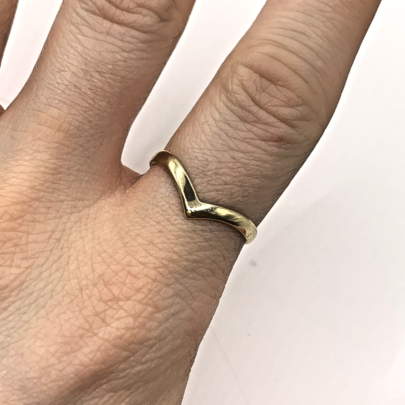 A lovely 9ct gold wishbone style band ring.