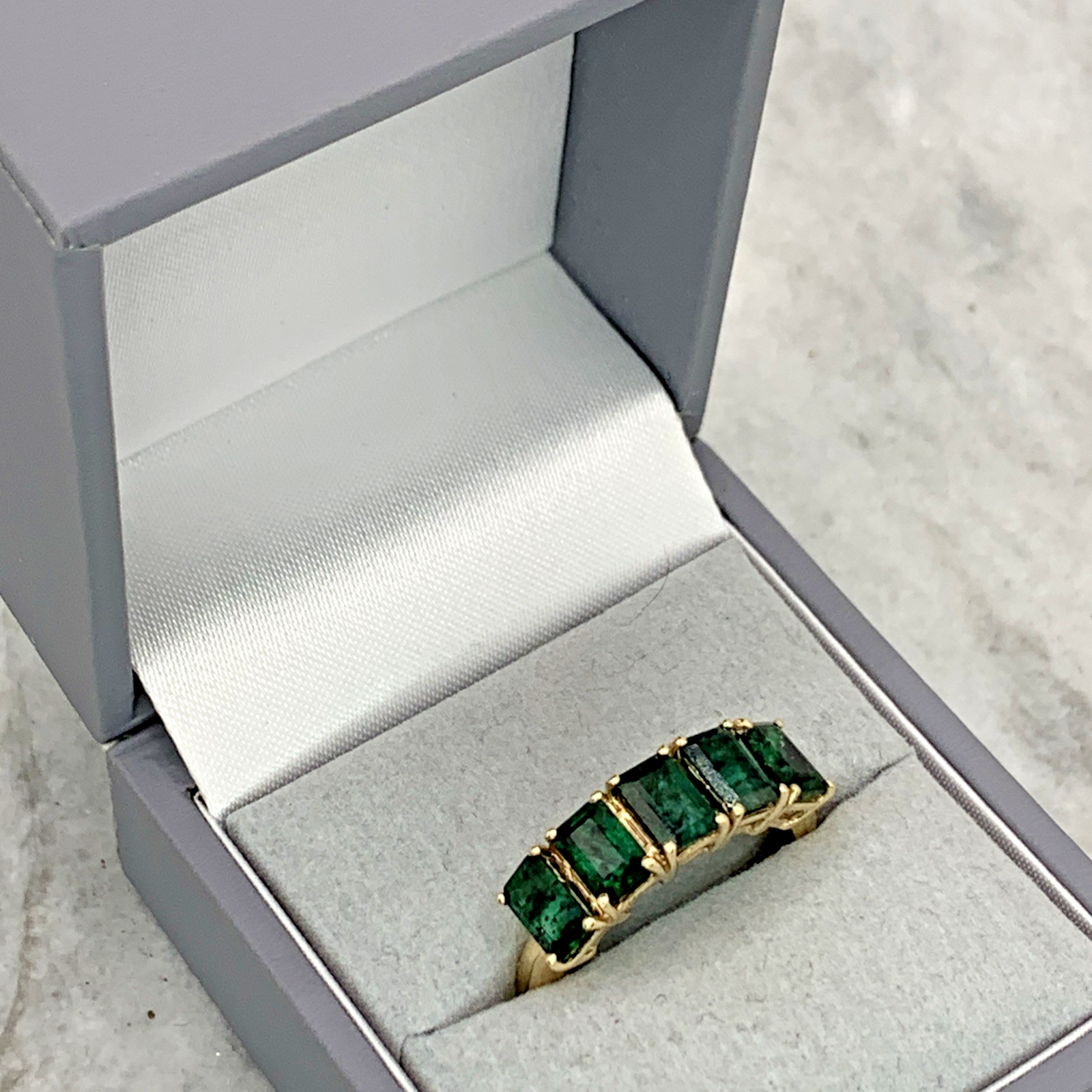9 ct Gold Zambian Emerald Cut Five Stone Ring 9k 375 Yellow Gold - Size N