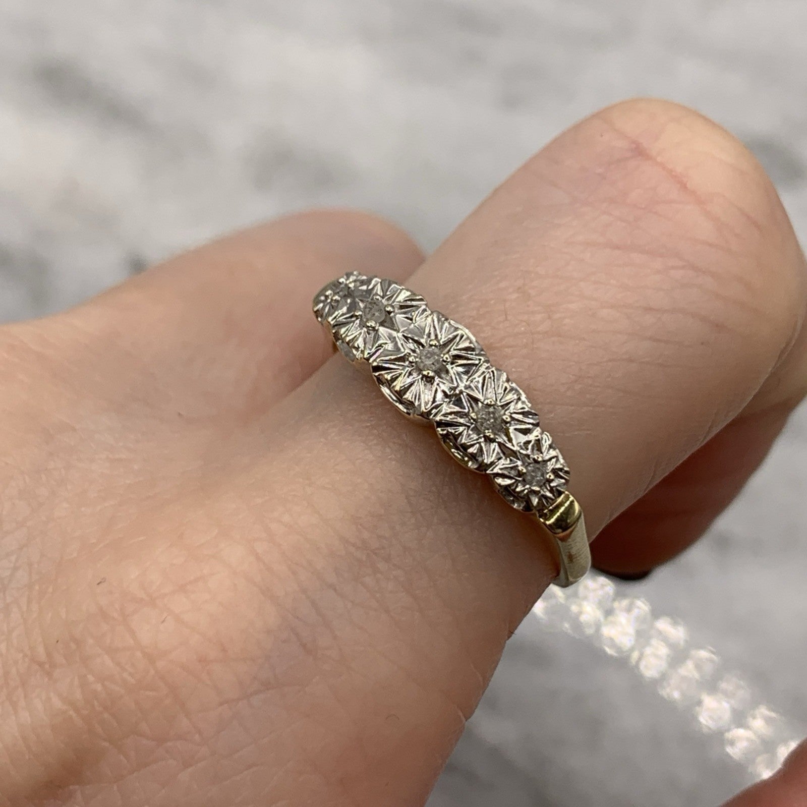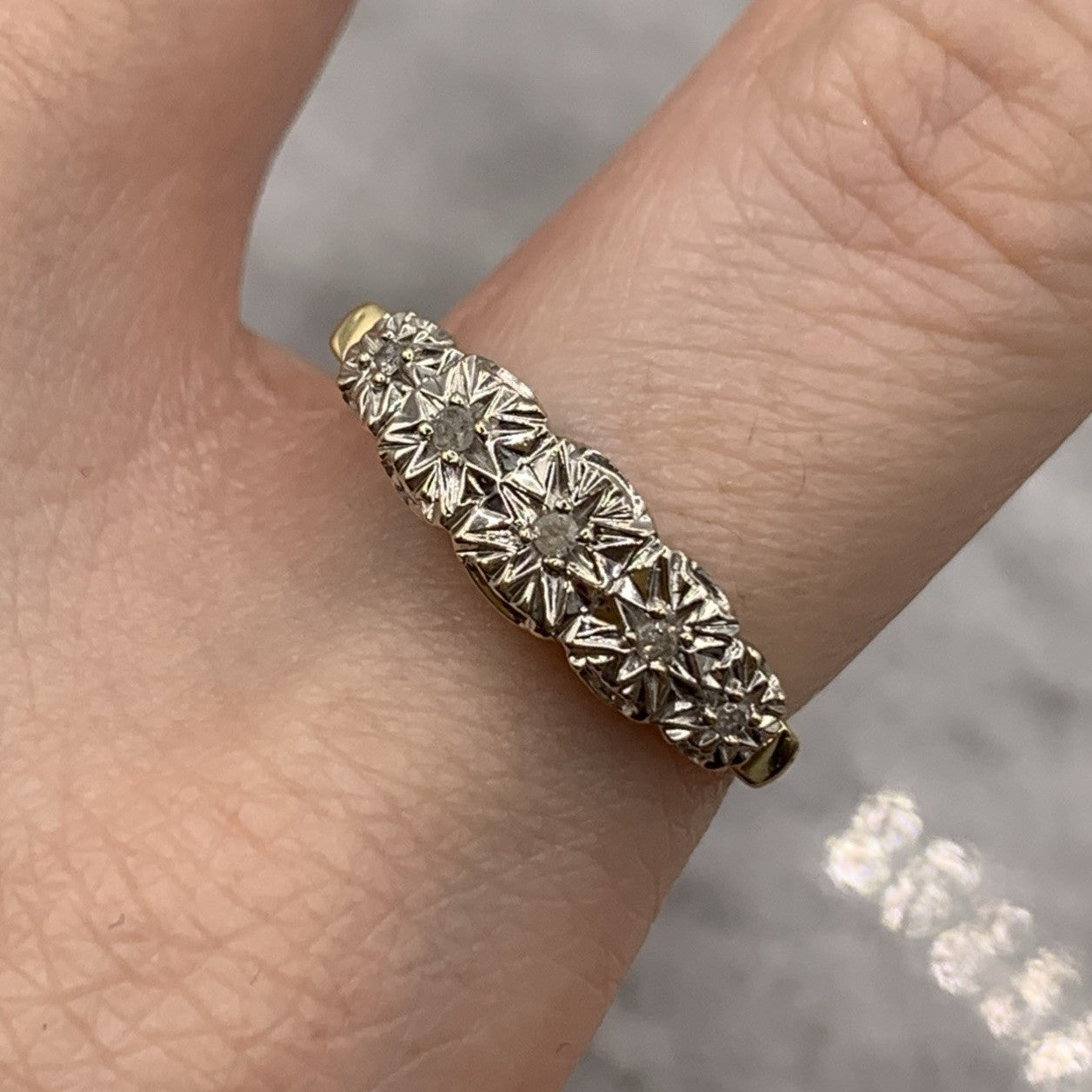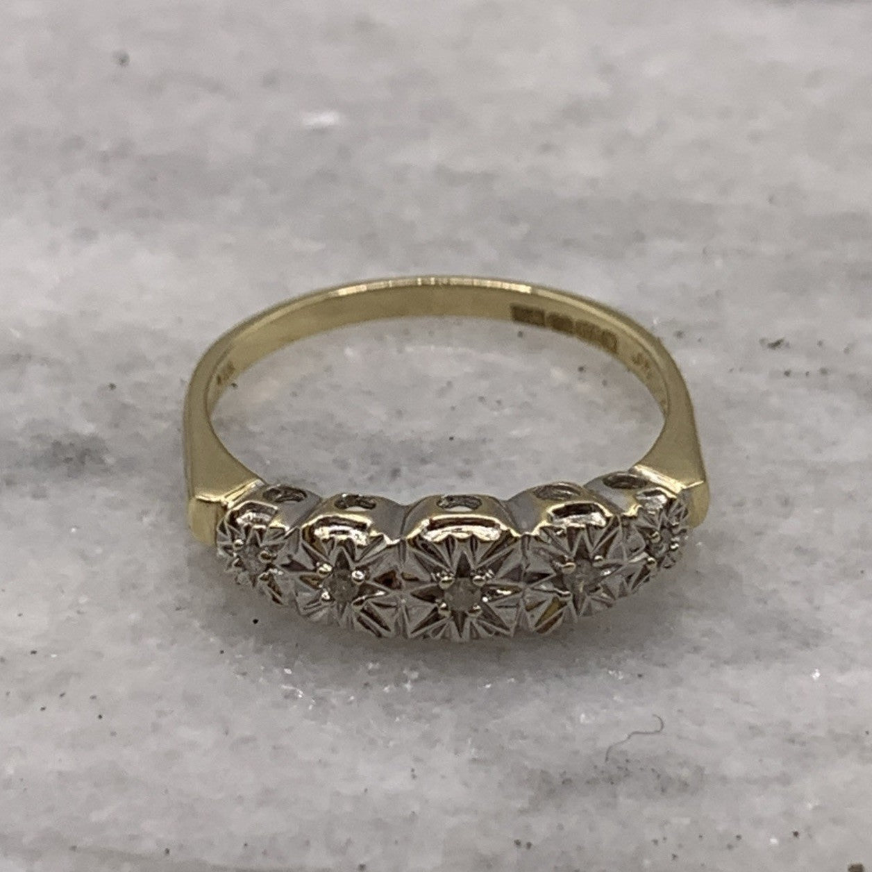 9 ct Yellow Gold Diamond Ring .05ct Five Stone Star Set - Size R