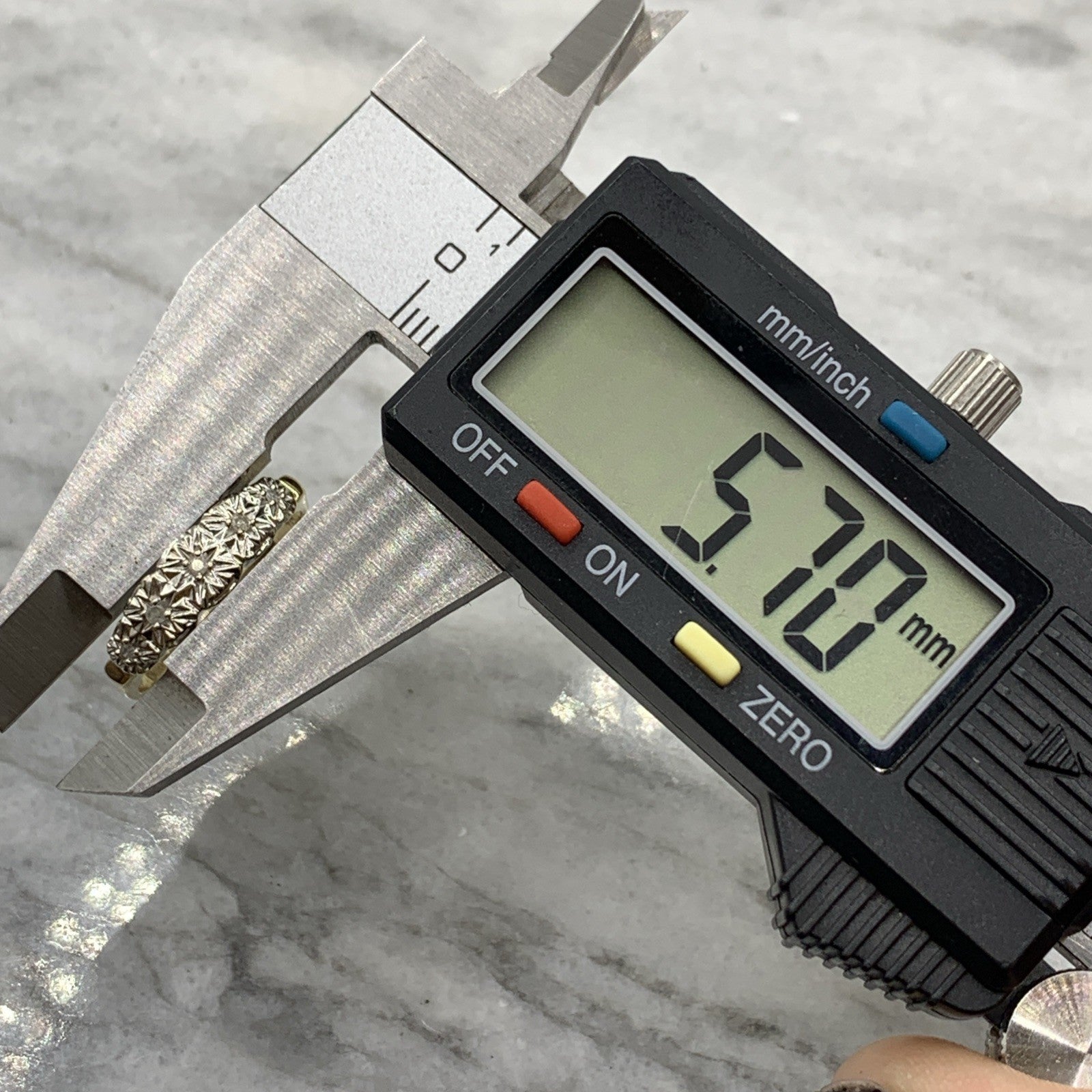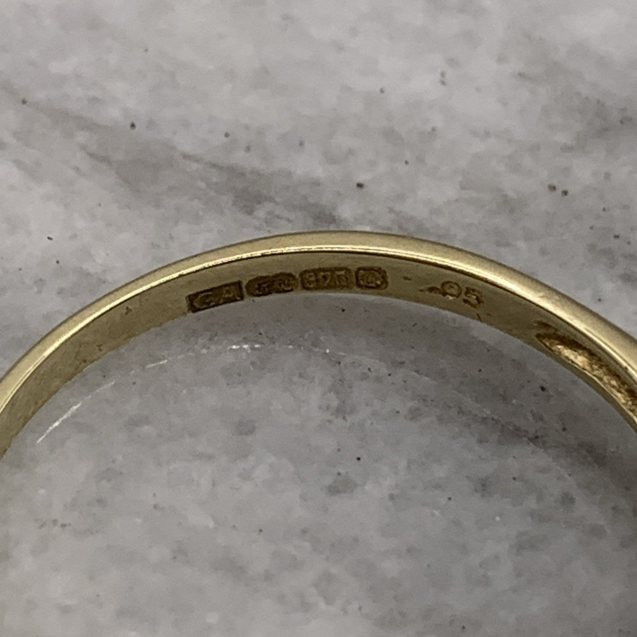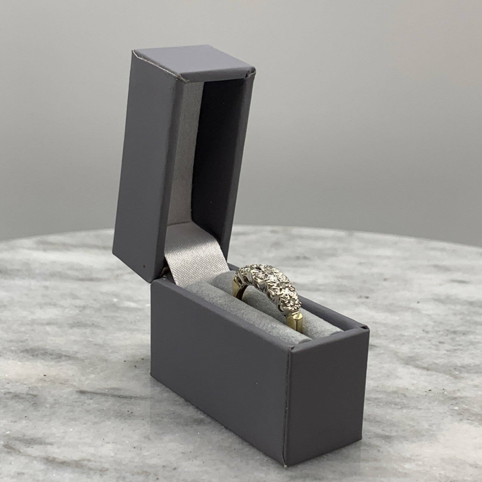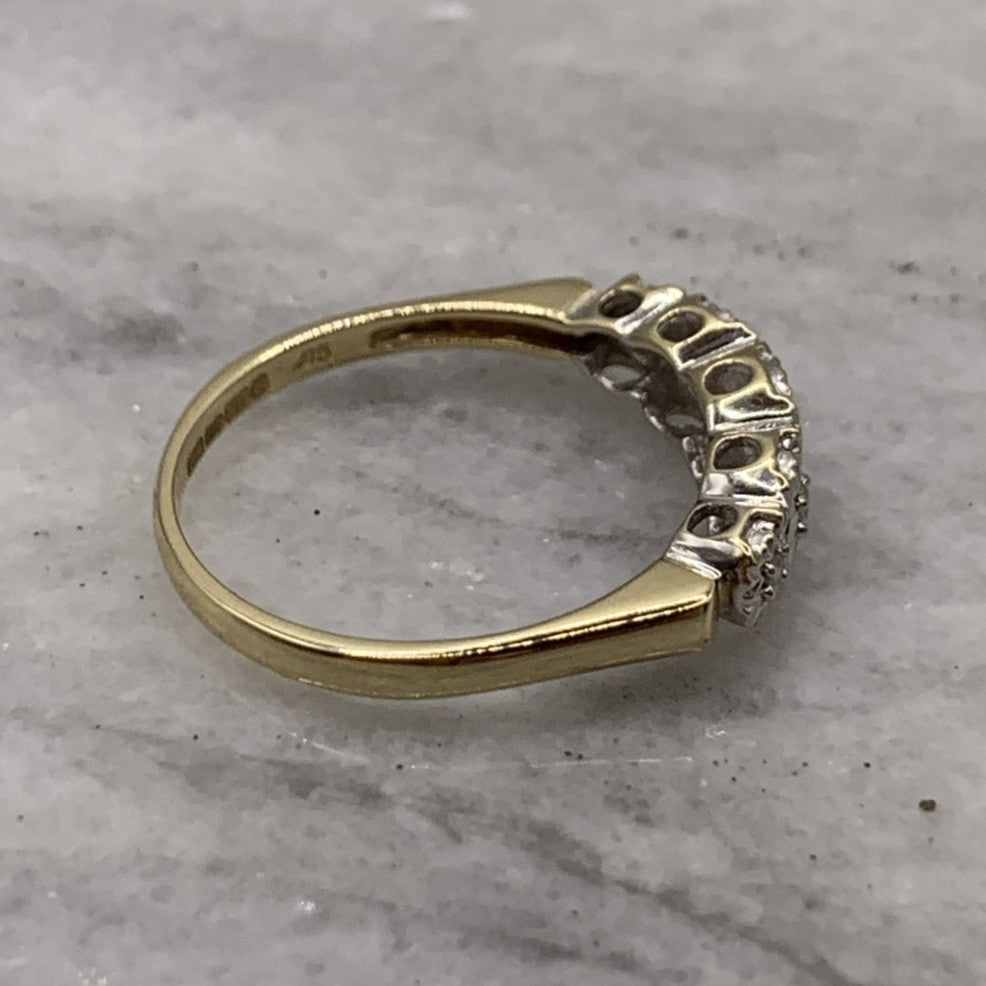 A beautiful yellow gold ring featuring five star set diamonds amounting to .05ct.