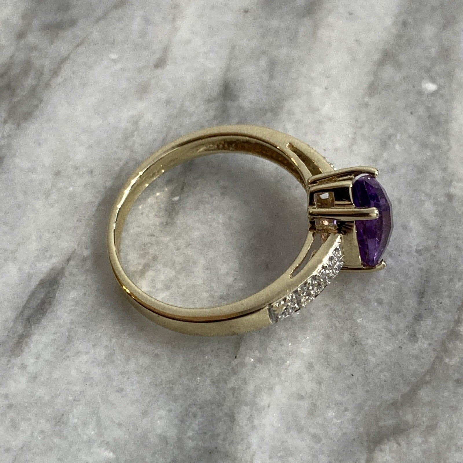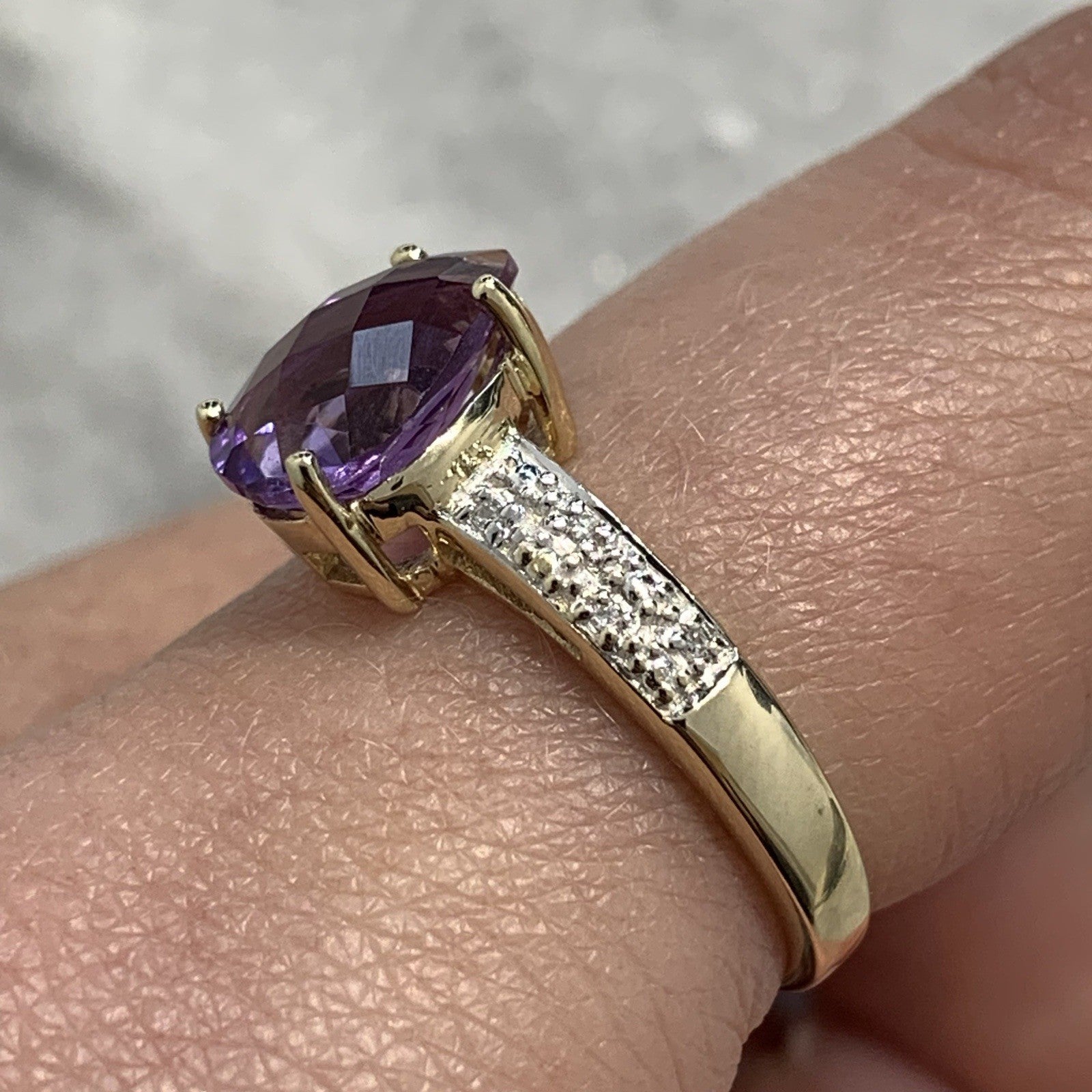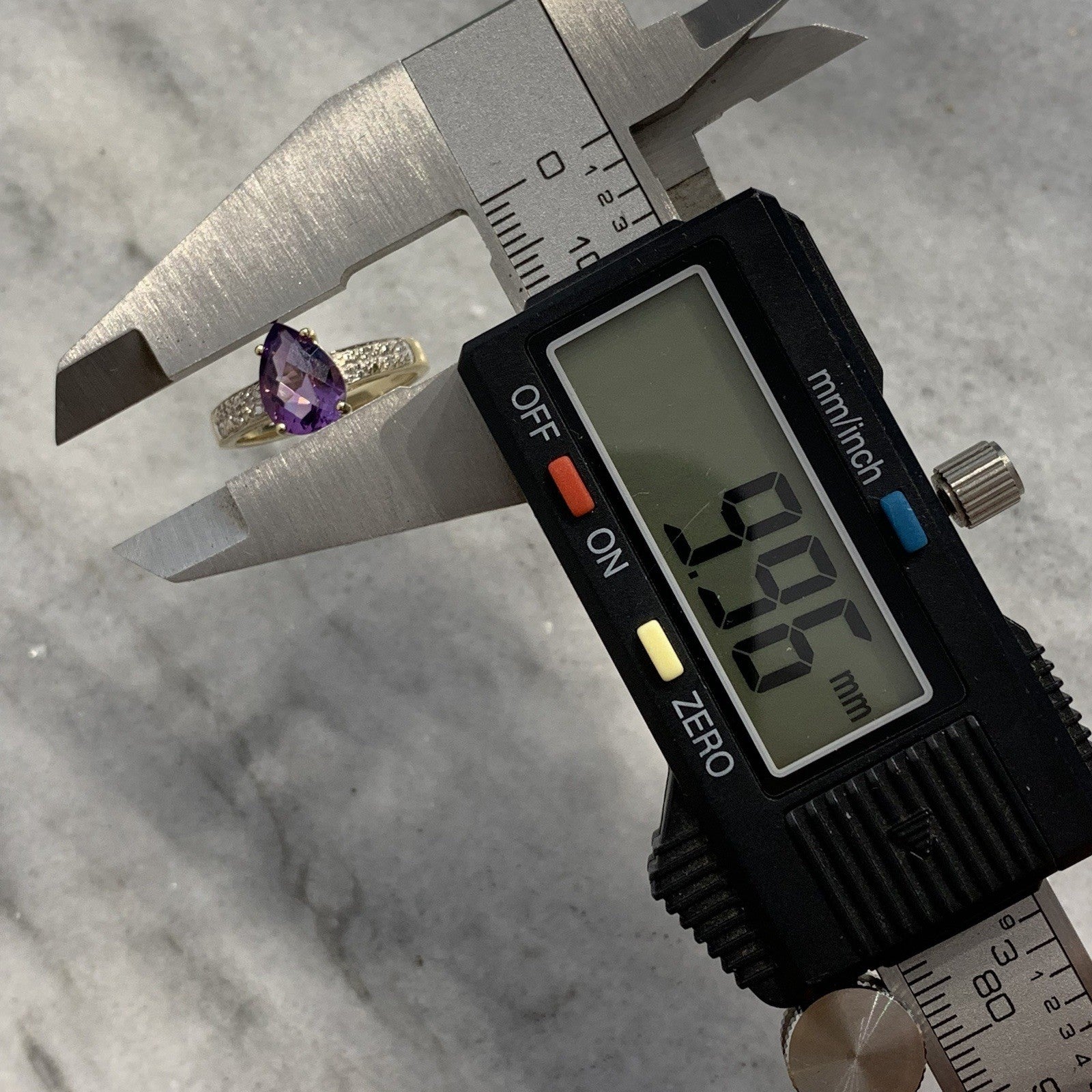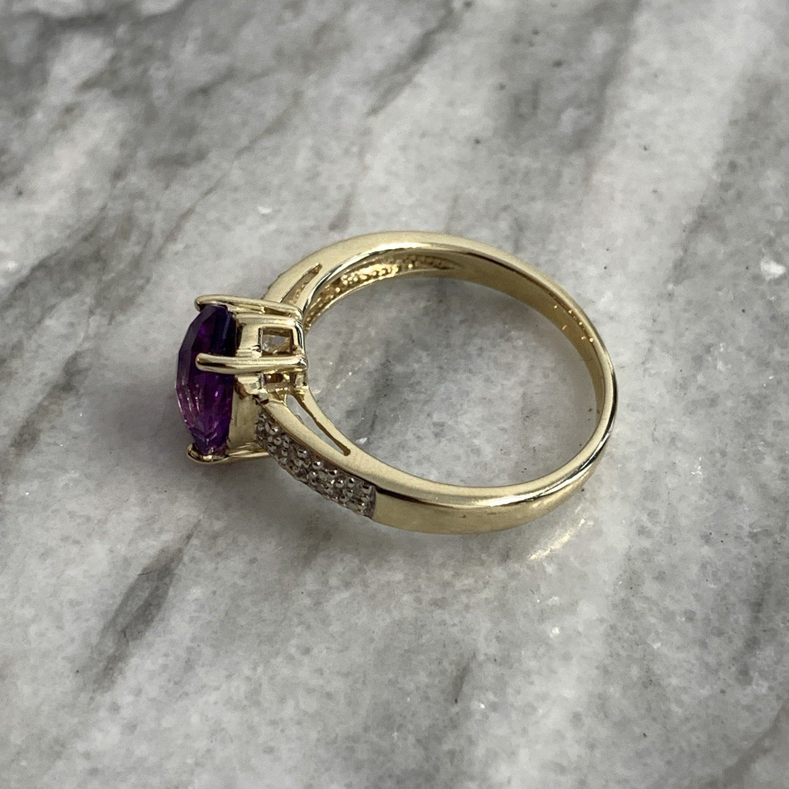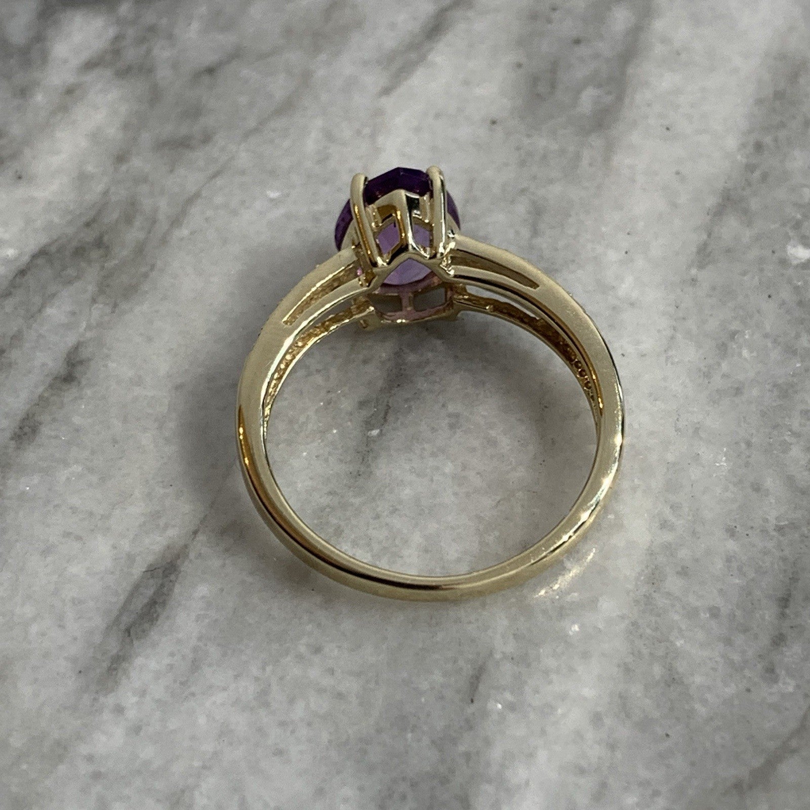 Amethyst Pear Cut with Diamond Accents Band Ring 9ct 375 Yellow Gold - Size N