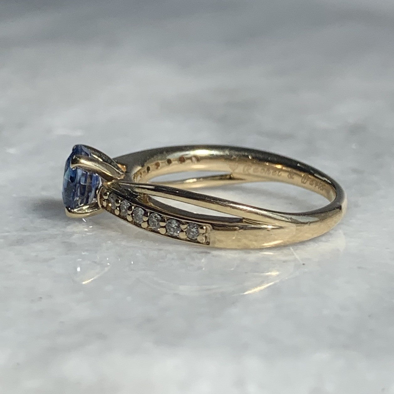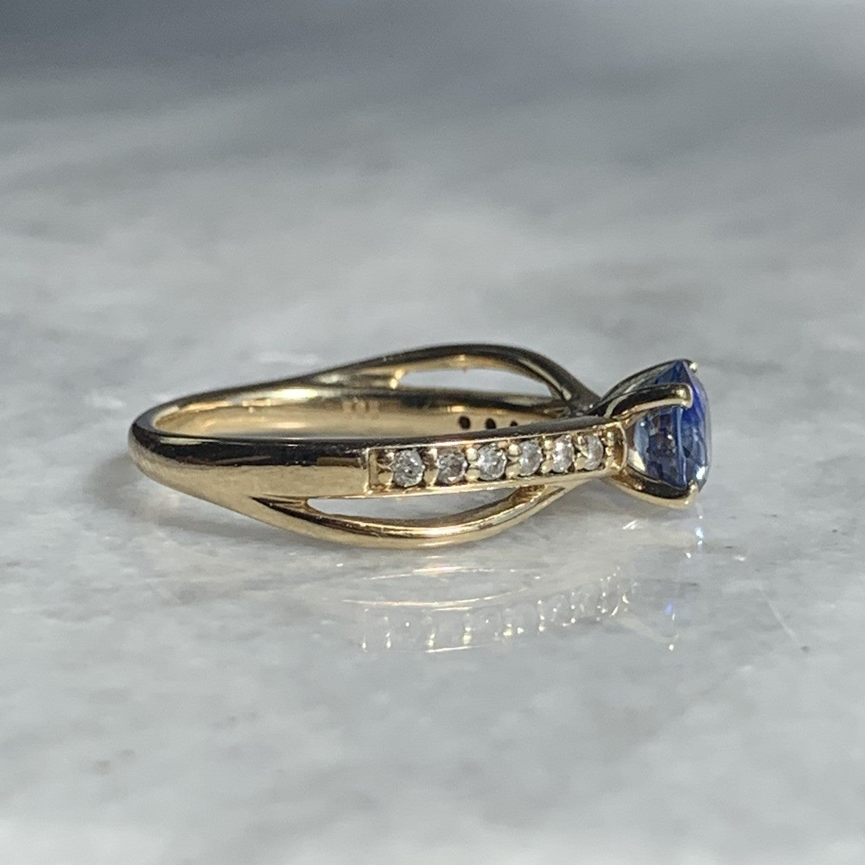 Blue Topaz & Diamond Crossover Ring 14ct 14k Yellow Gold - Size N 1/2