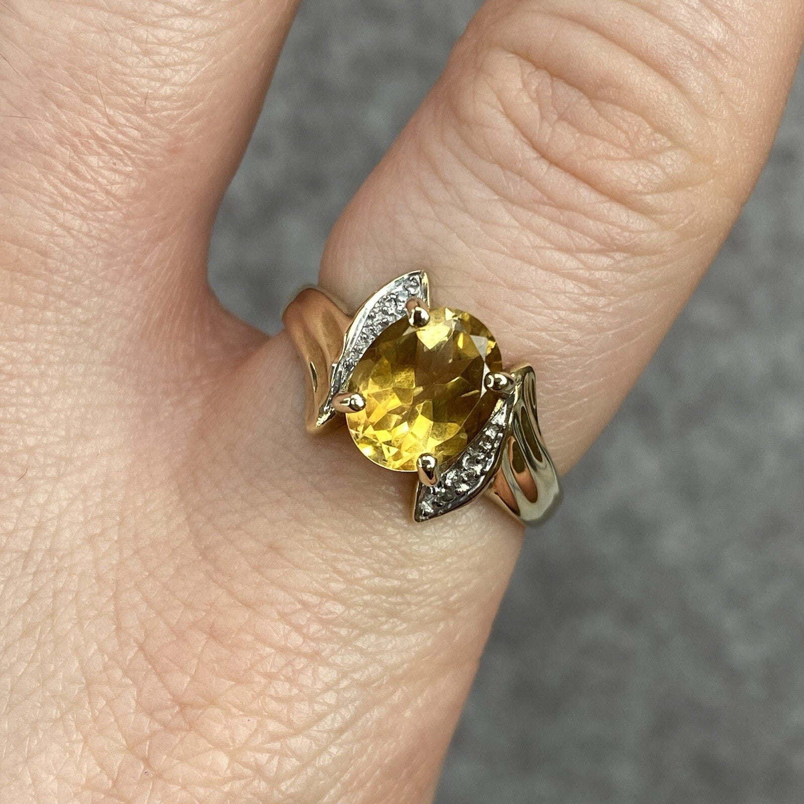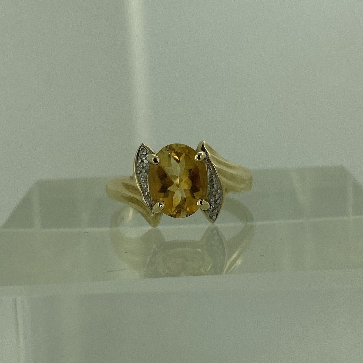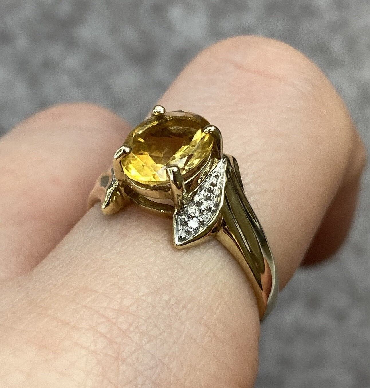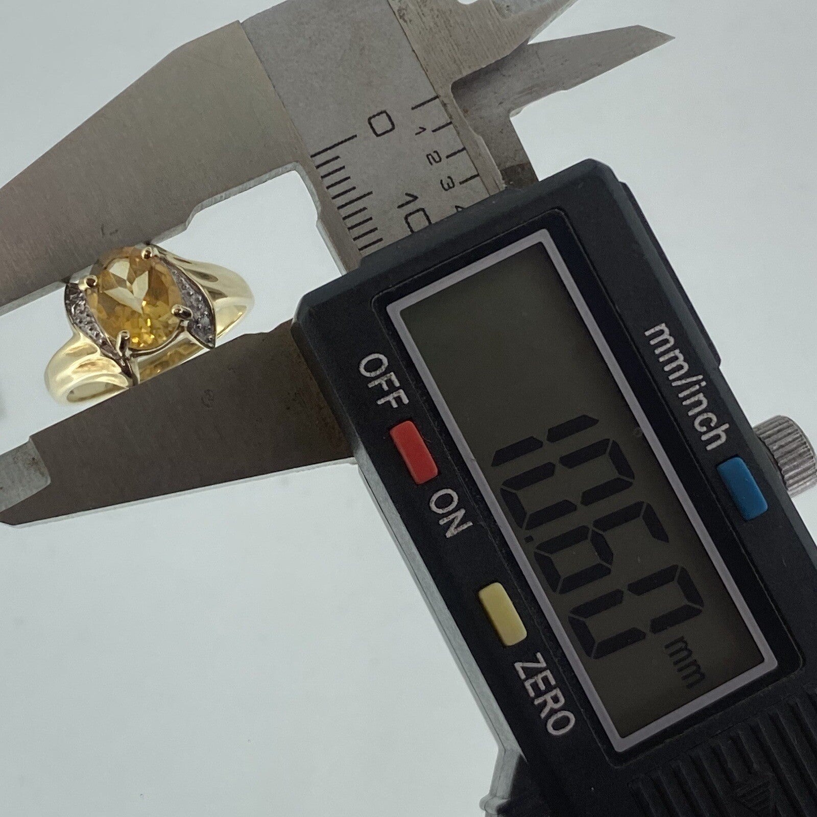Citrine Oval Diamond Accent Ring 9ct 375 Yellow Gold - Size N 1/2