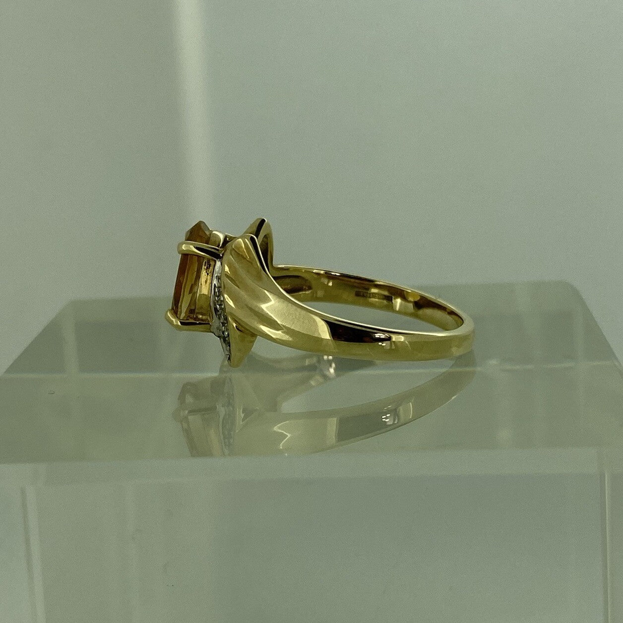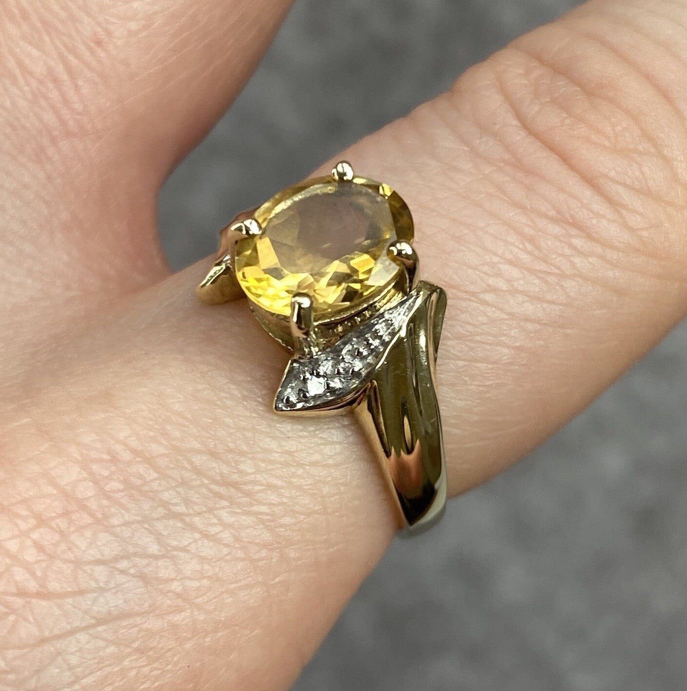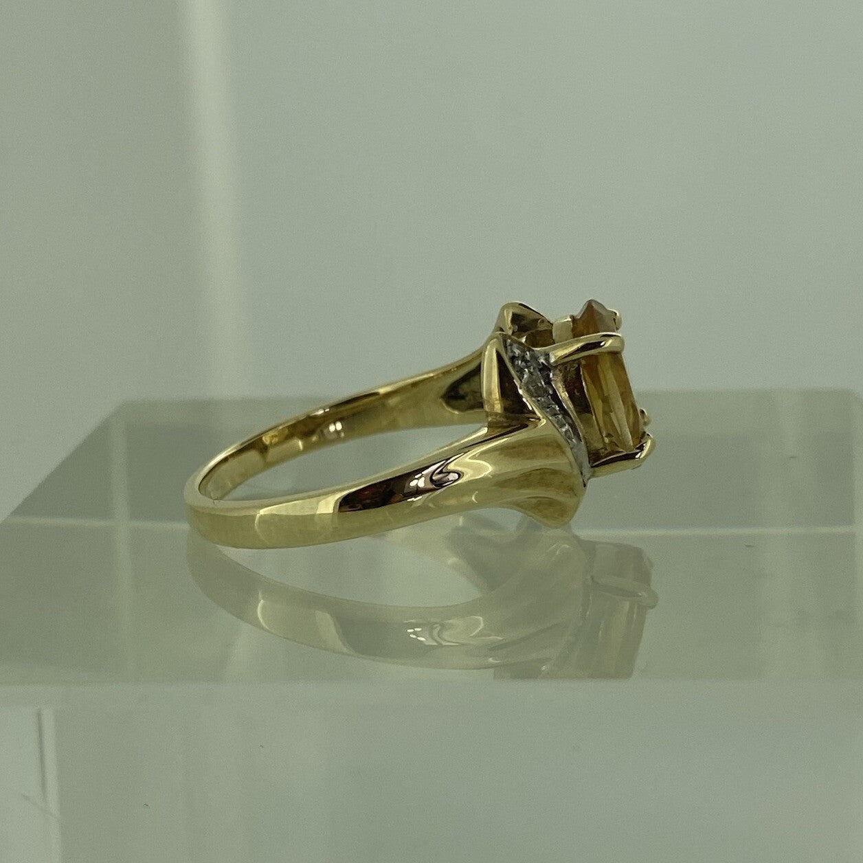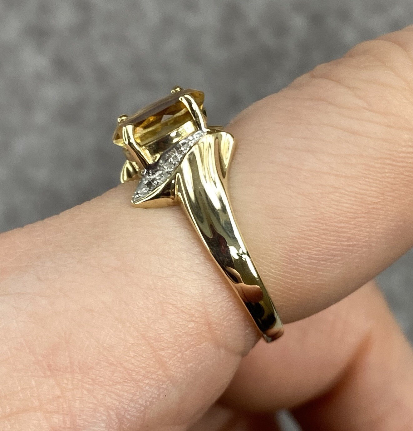 Citrine Oval Diamond Accent Ring 9ct 375 Yellow Gold - Size N 1/2