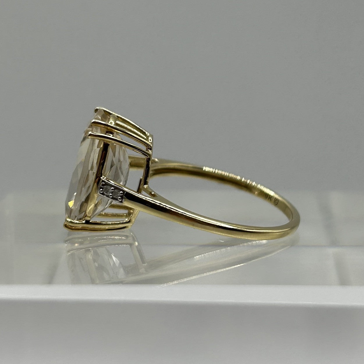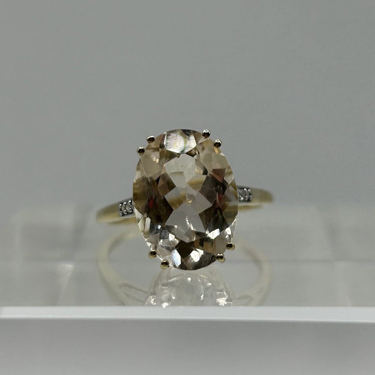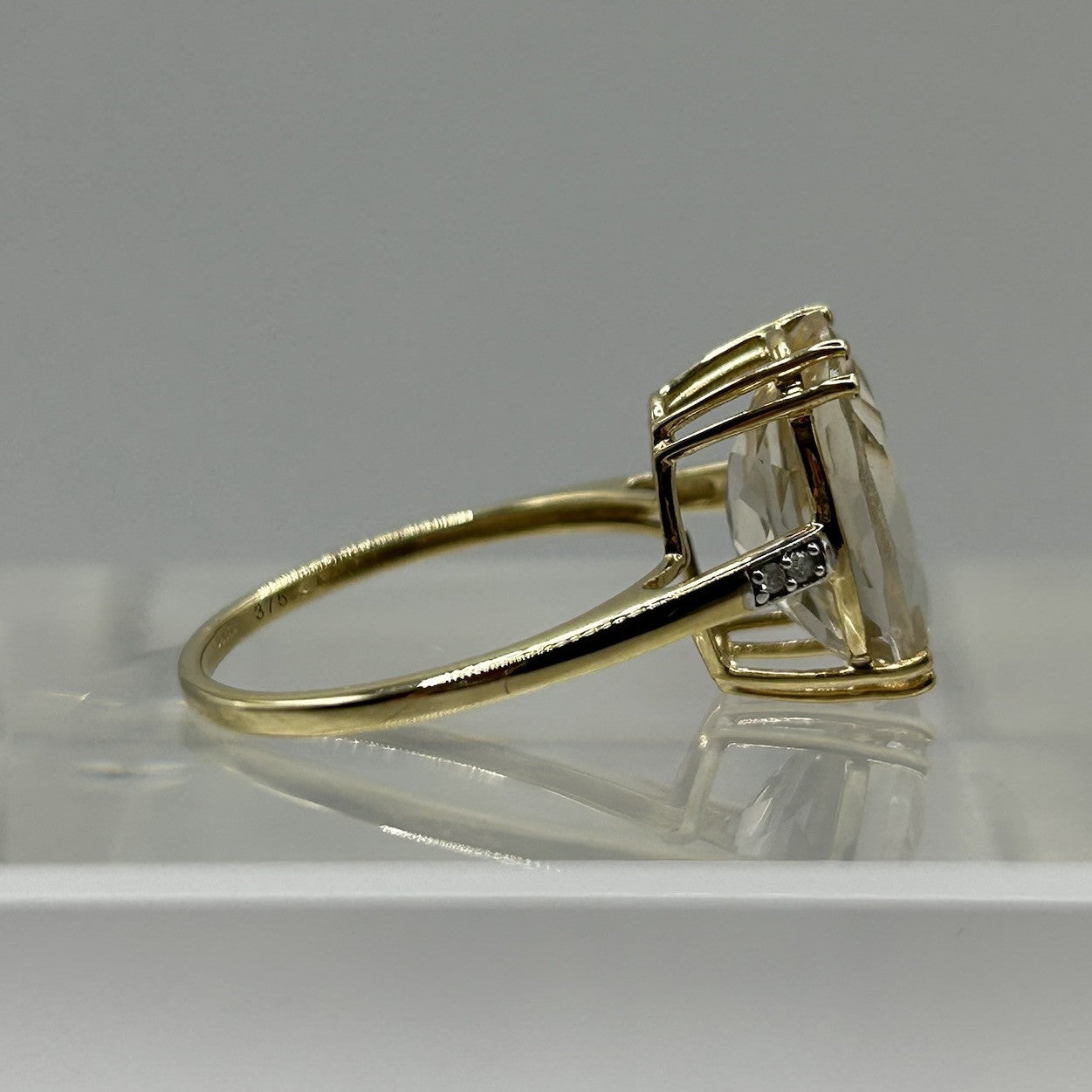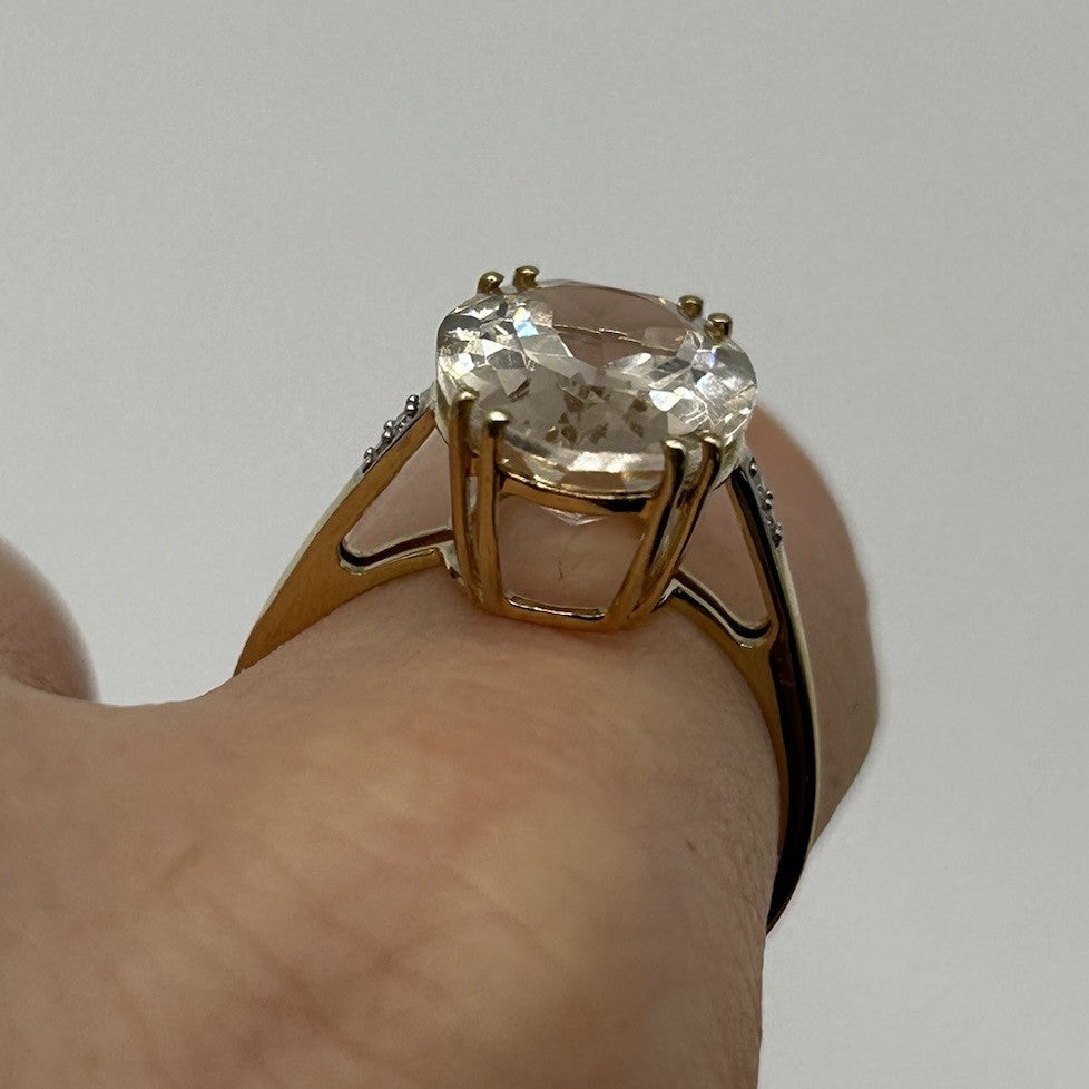 Danburite & Diamond Ornate Ring 9ct 9k Yellow Gold - Size O
