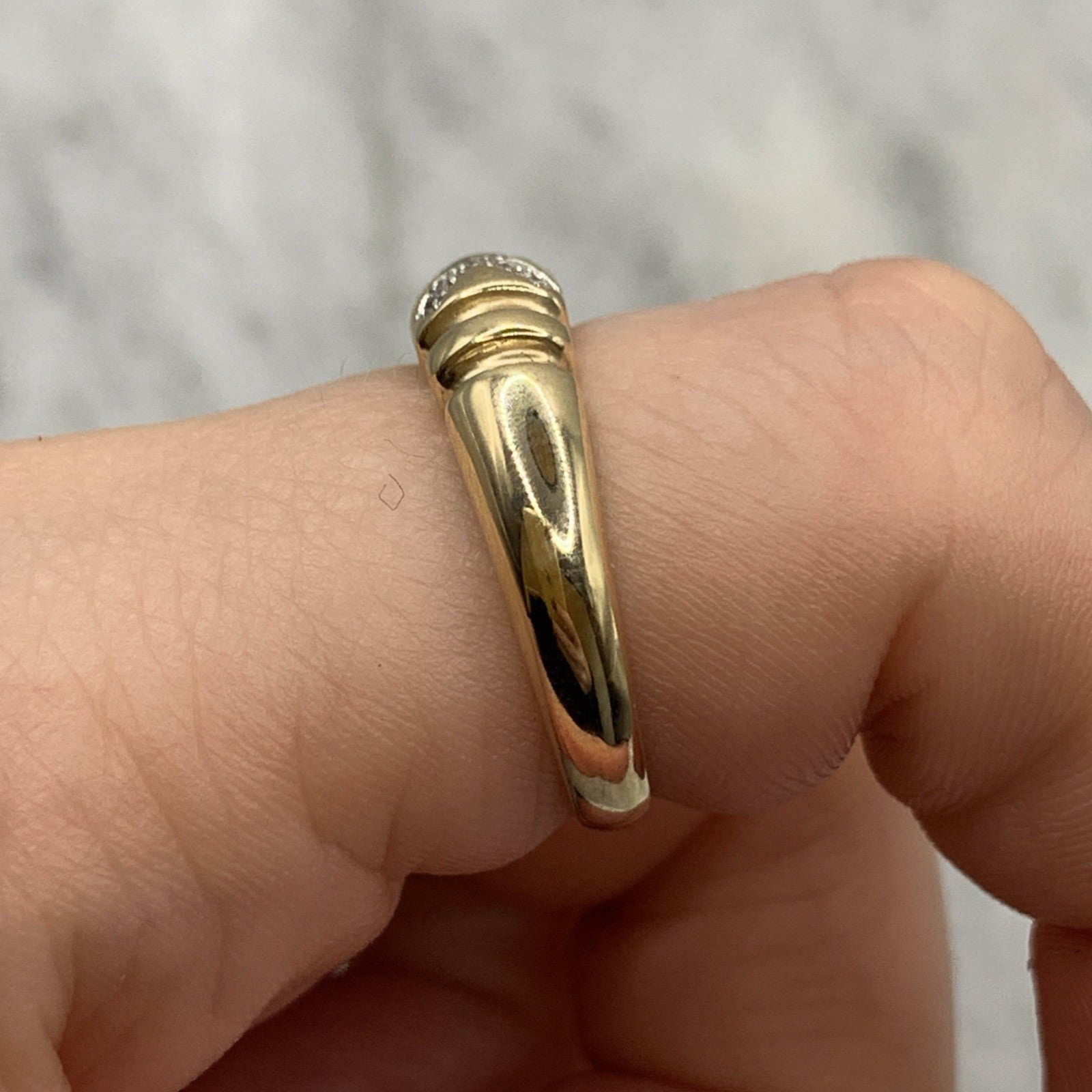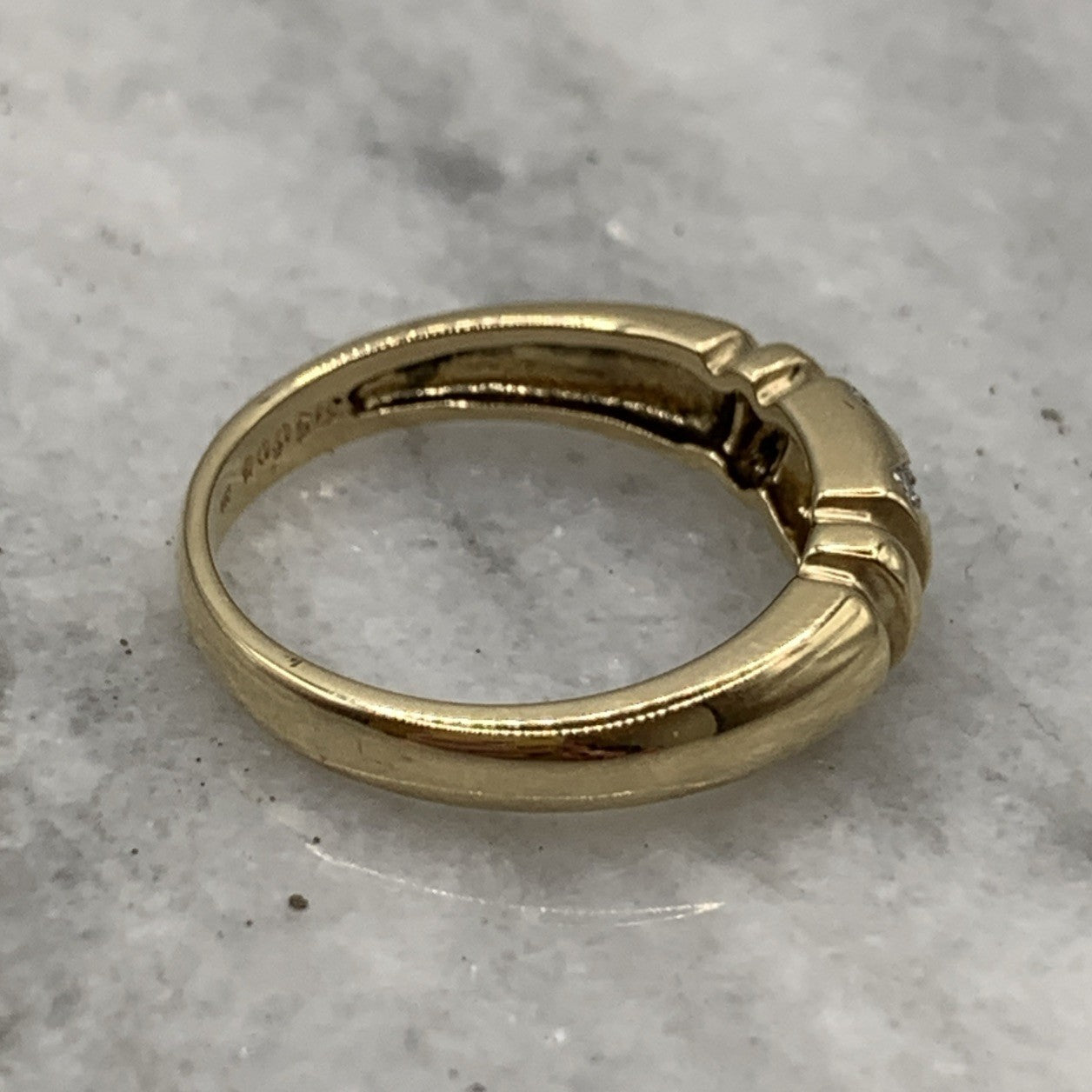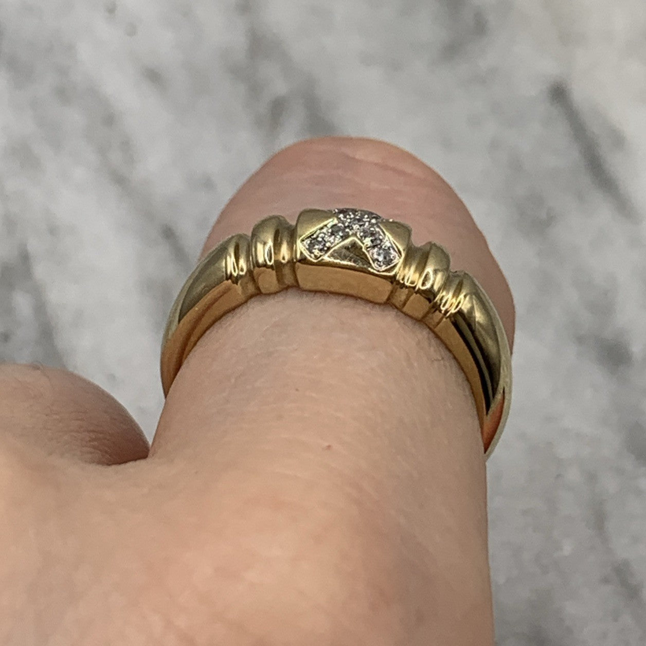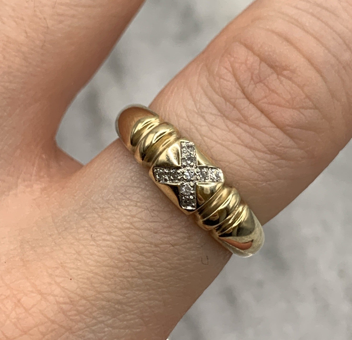 unique gold band ring featuring a .05ct cross of petite pave set diamonds.