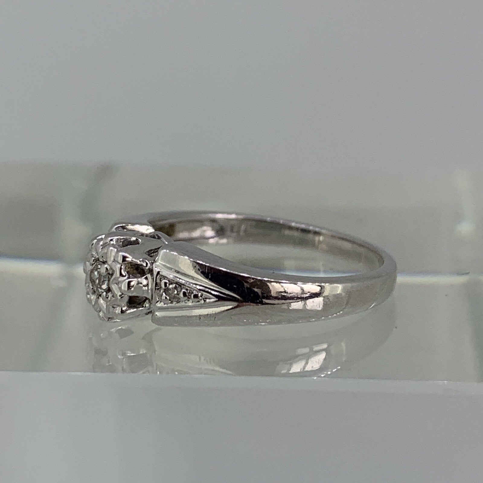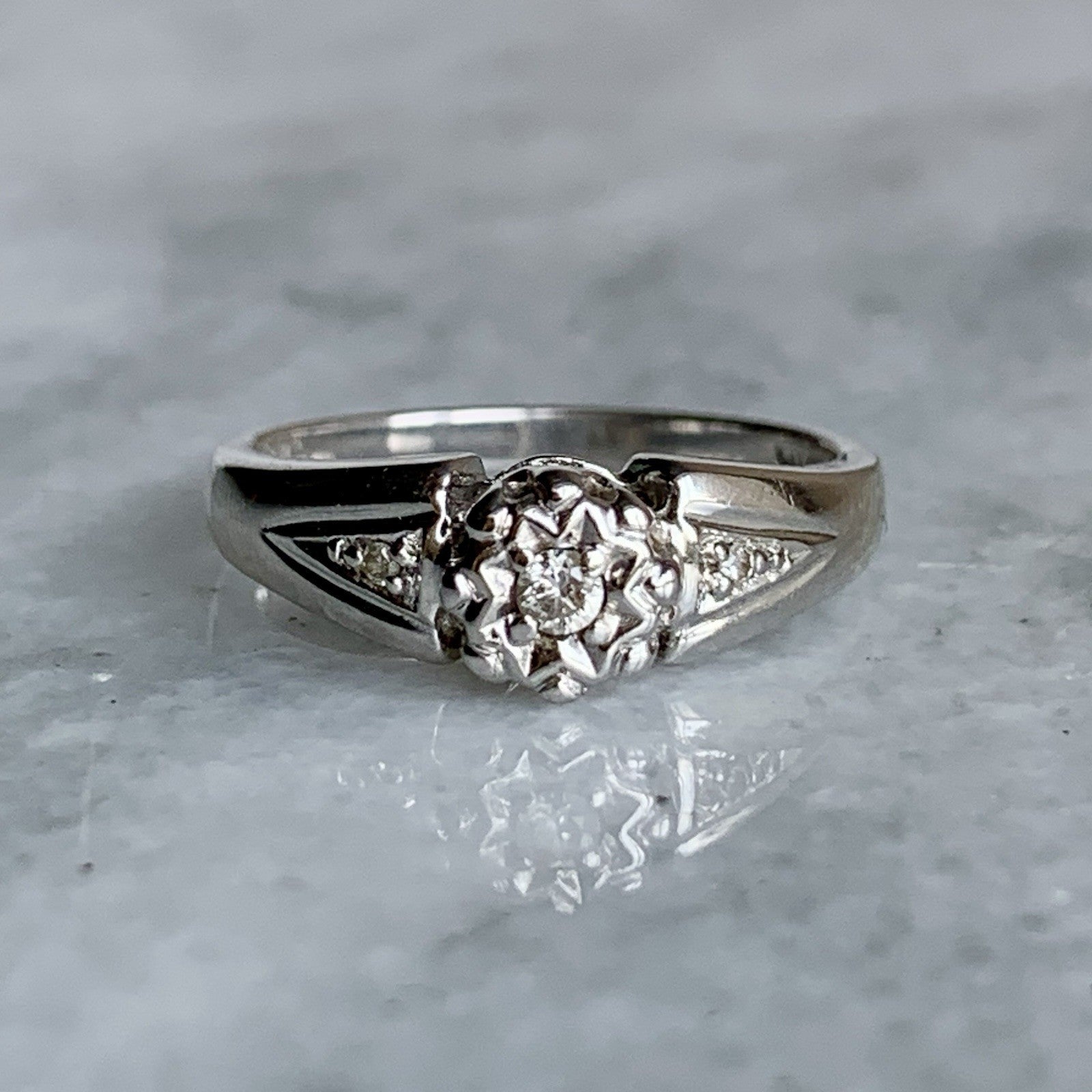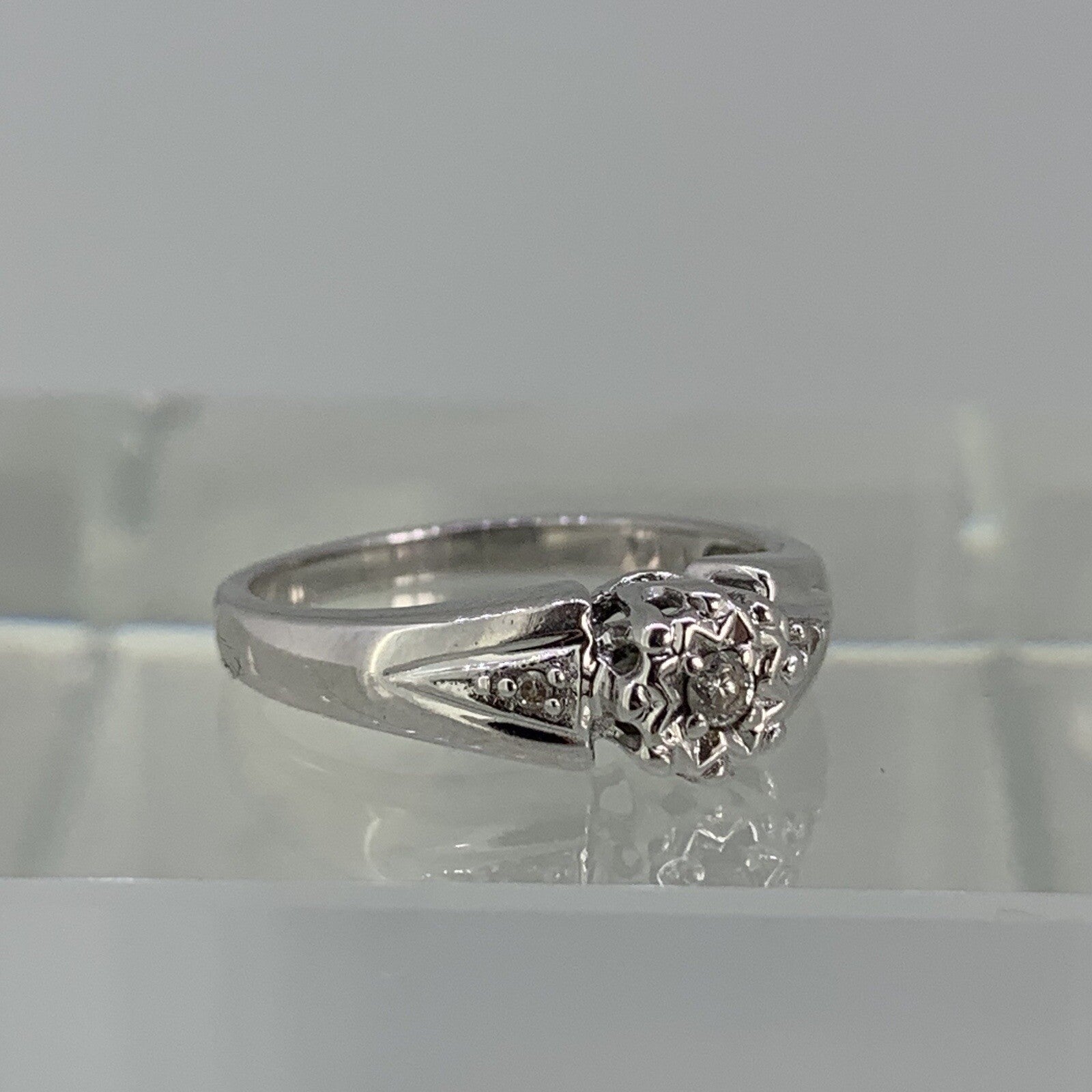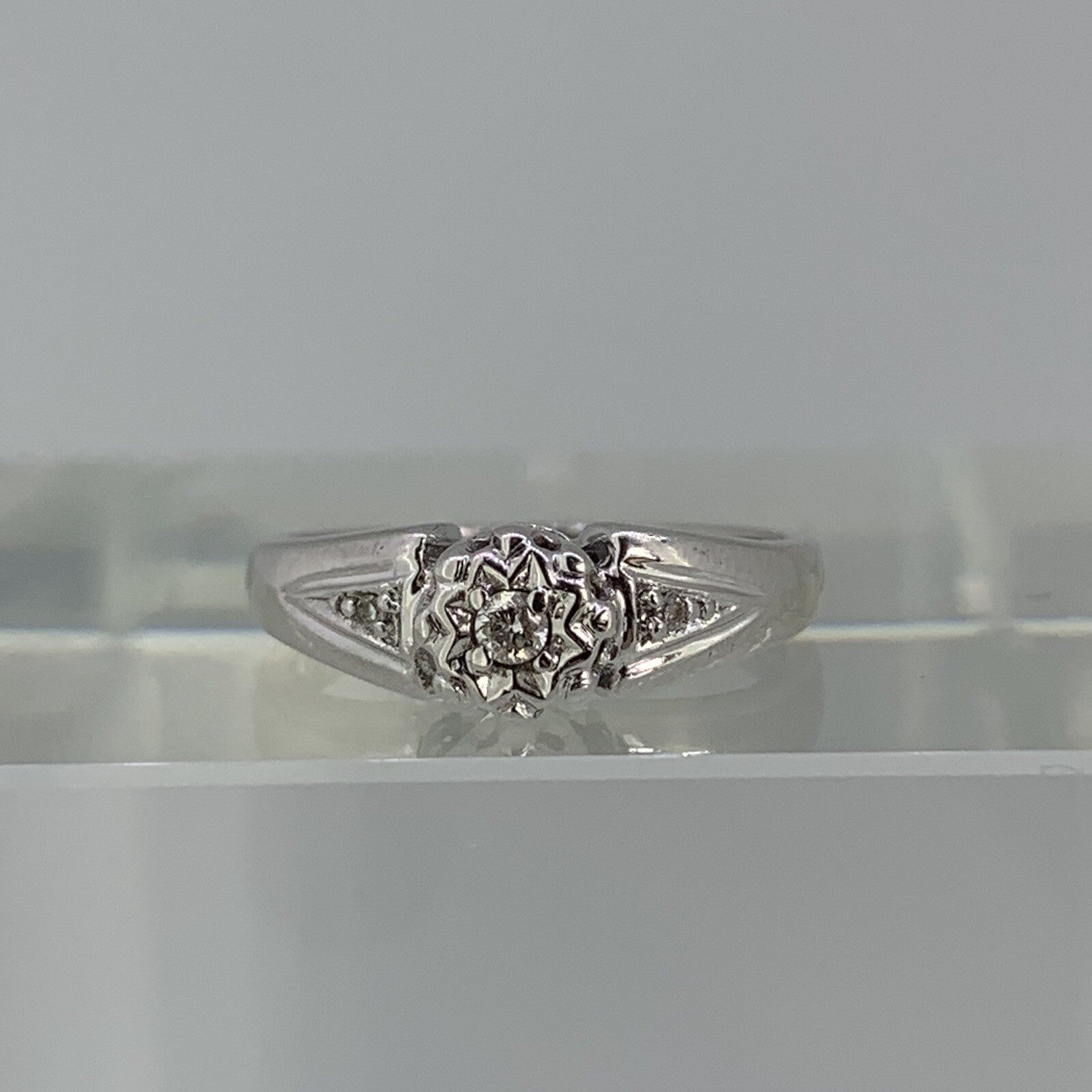 Diamond .10ct Solitaire With Accents Ring 9ct 9k White Gold - Size J