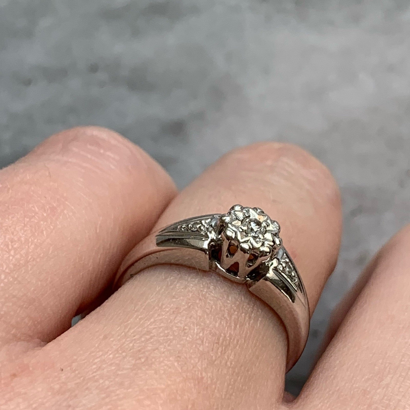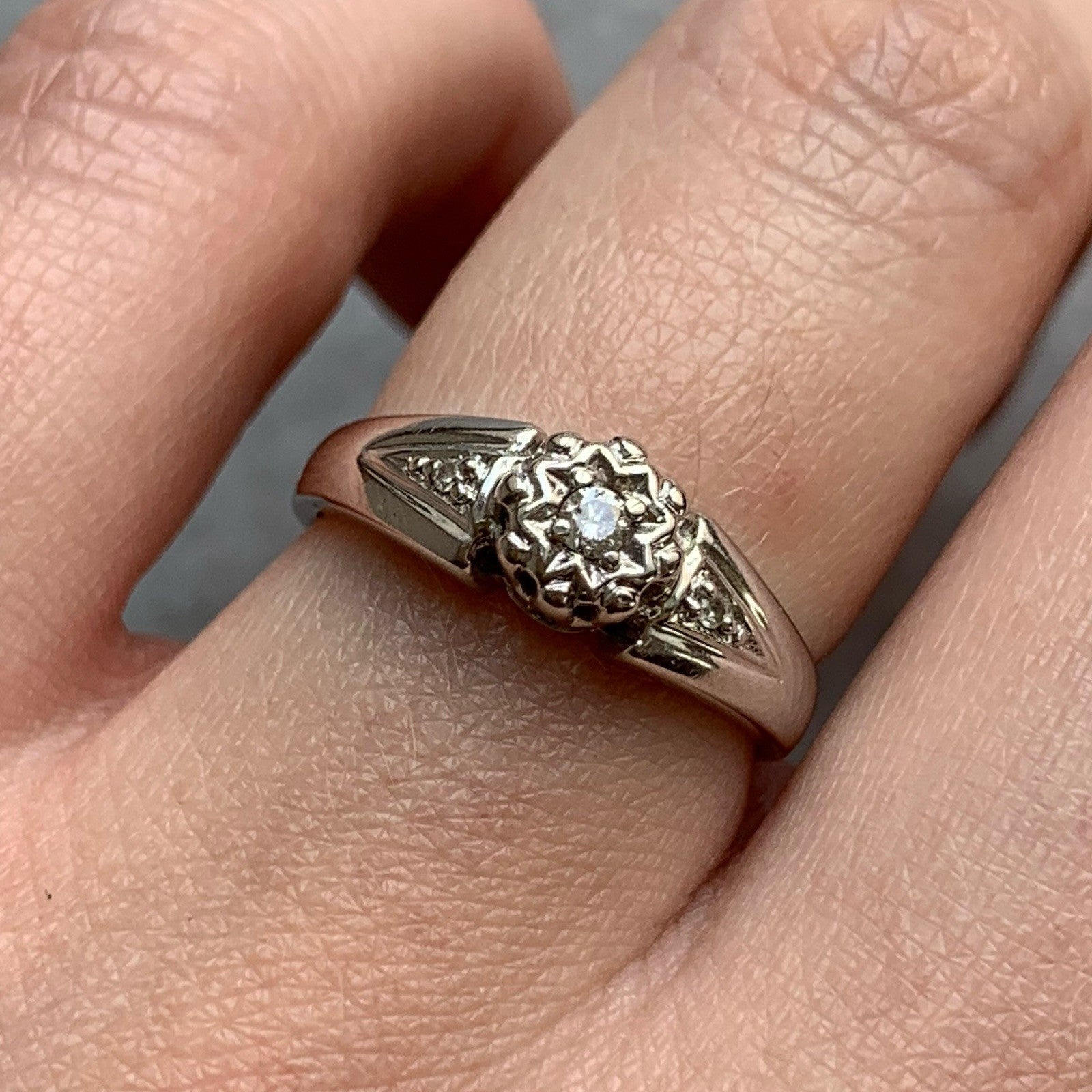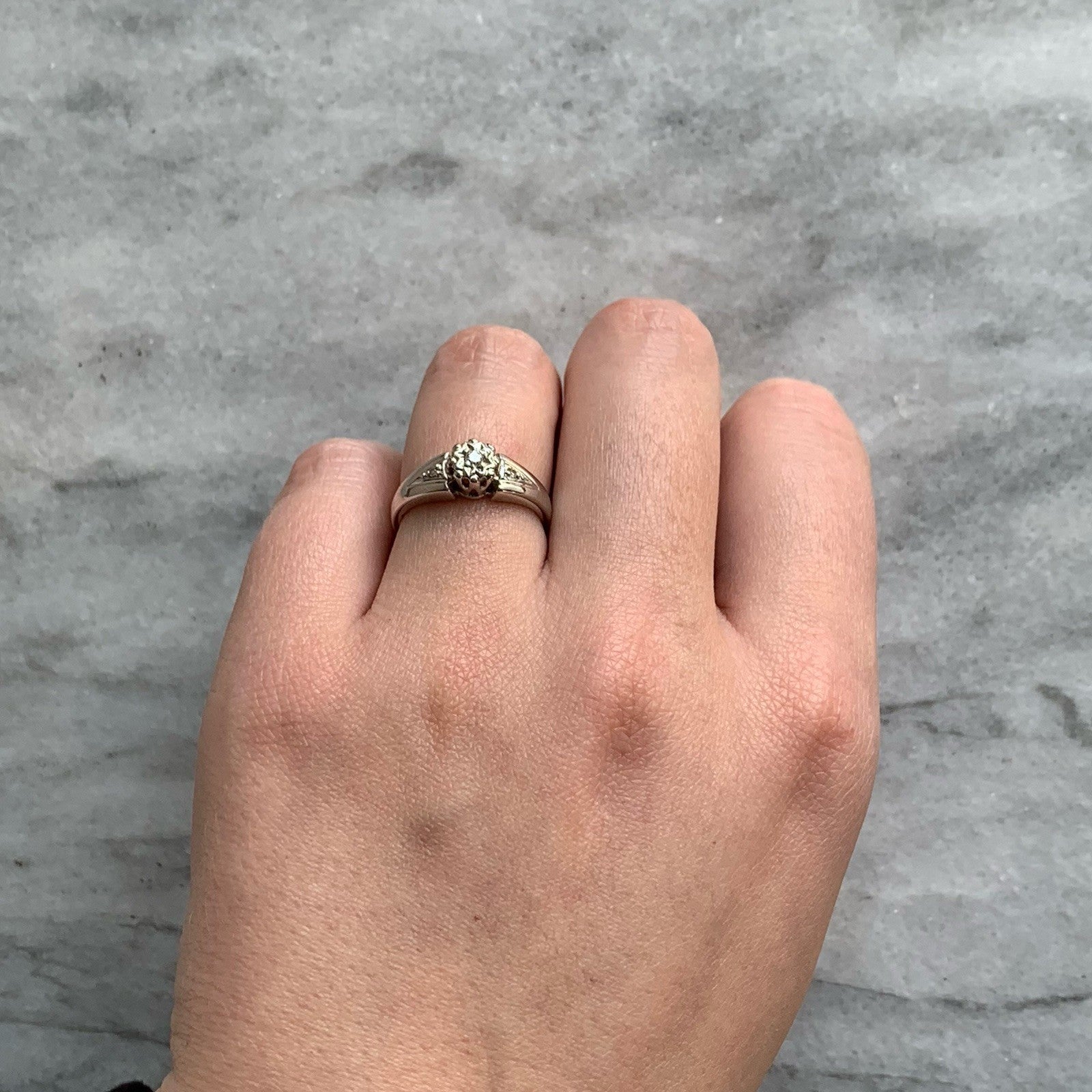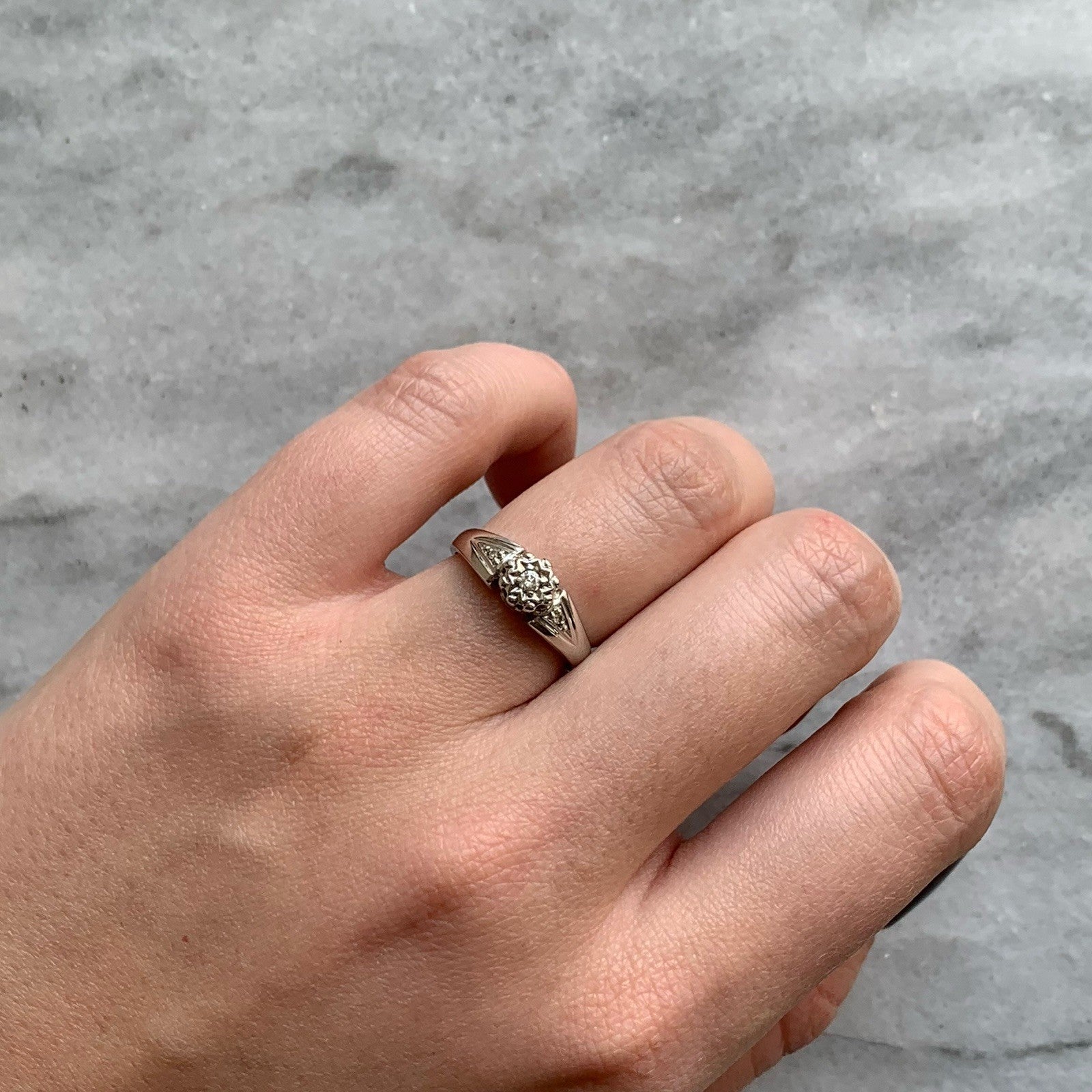 Diamond .10ct Solitaire With Accents Ring 9ct 9k White Gold - Size J