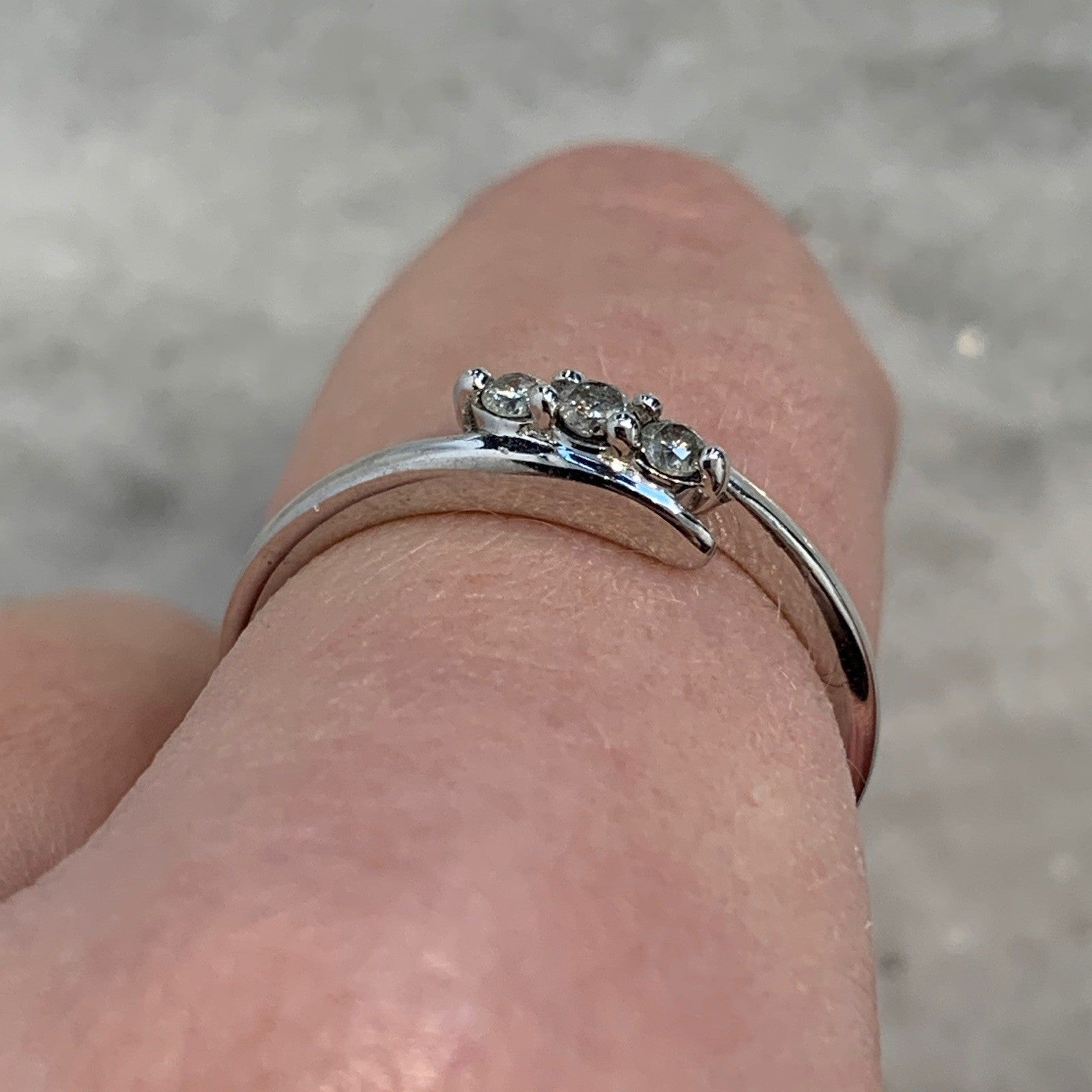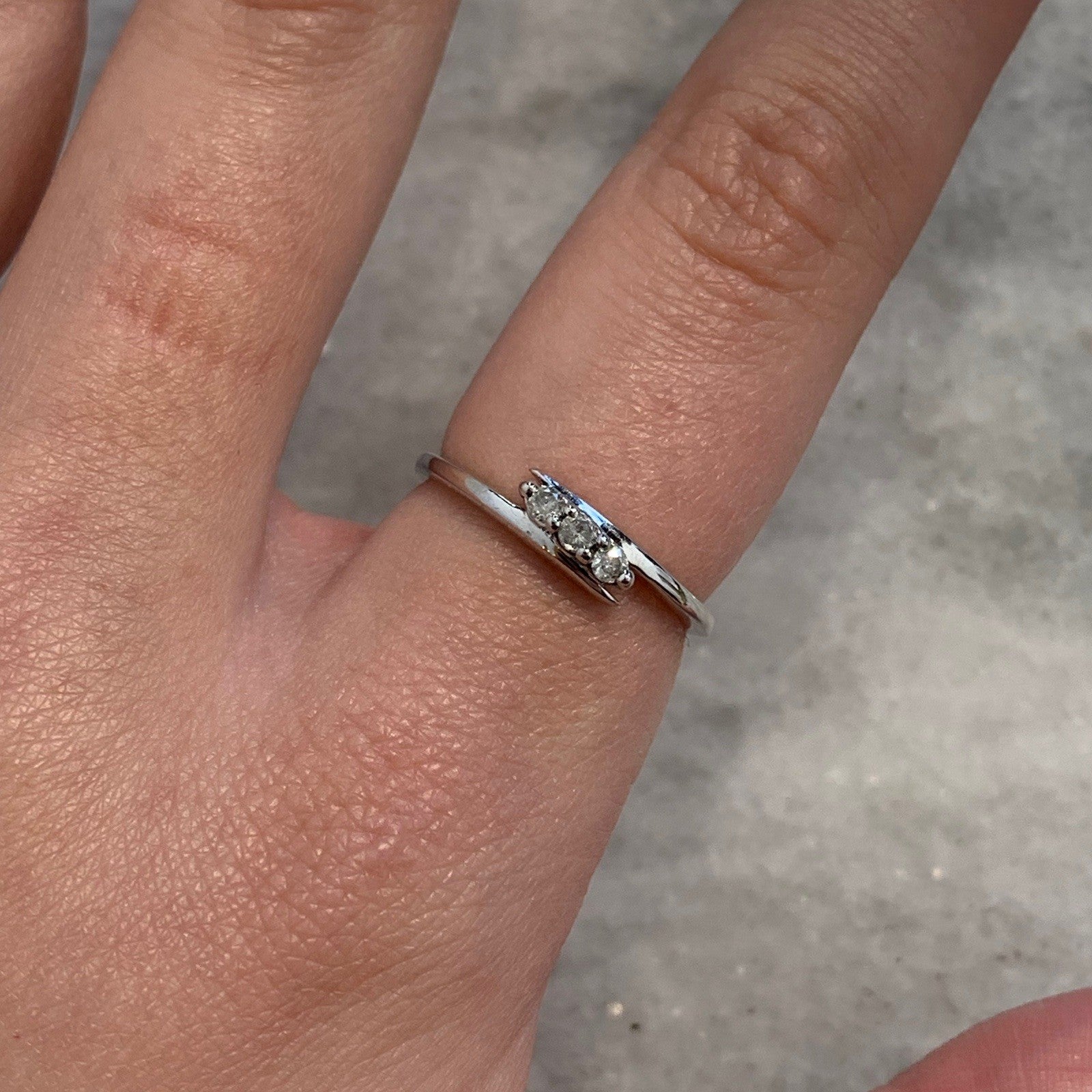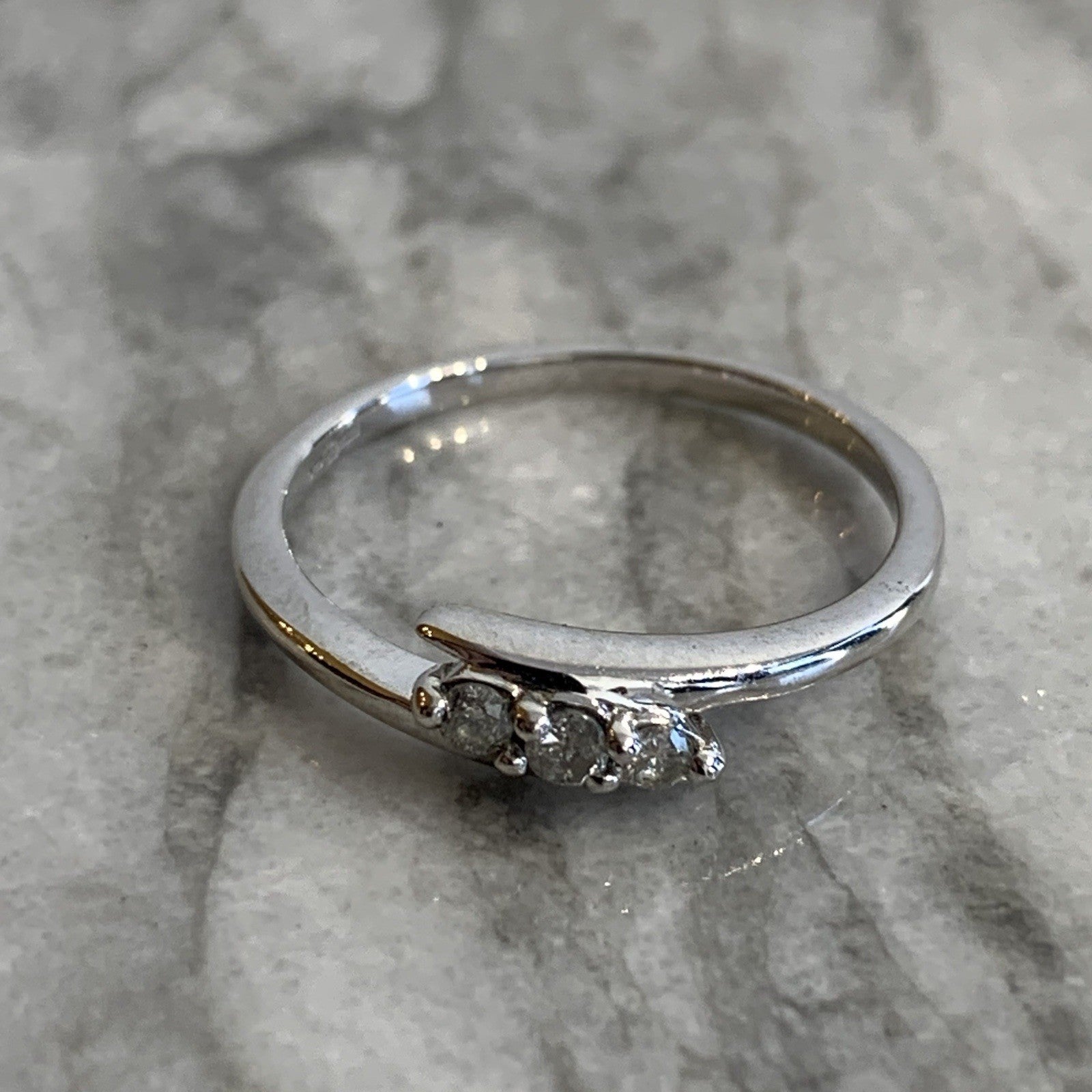 A lovely white gold bypass ring holding a trilogy of diamonds at .10ct.