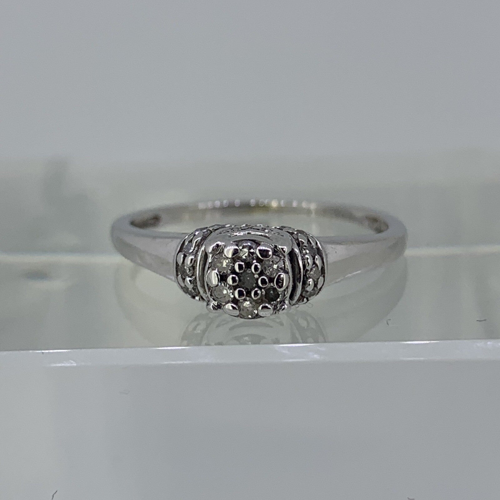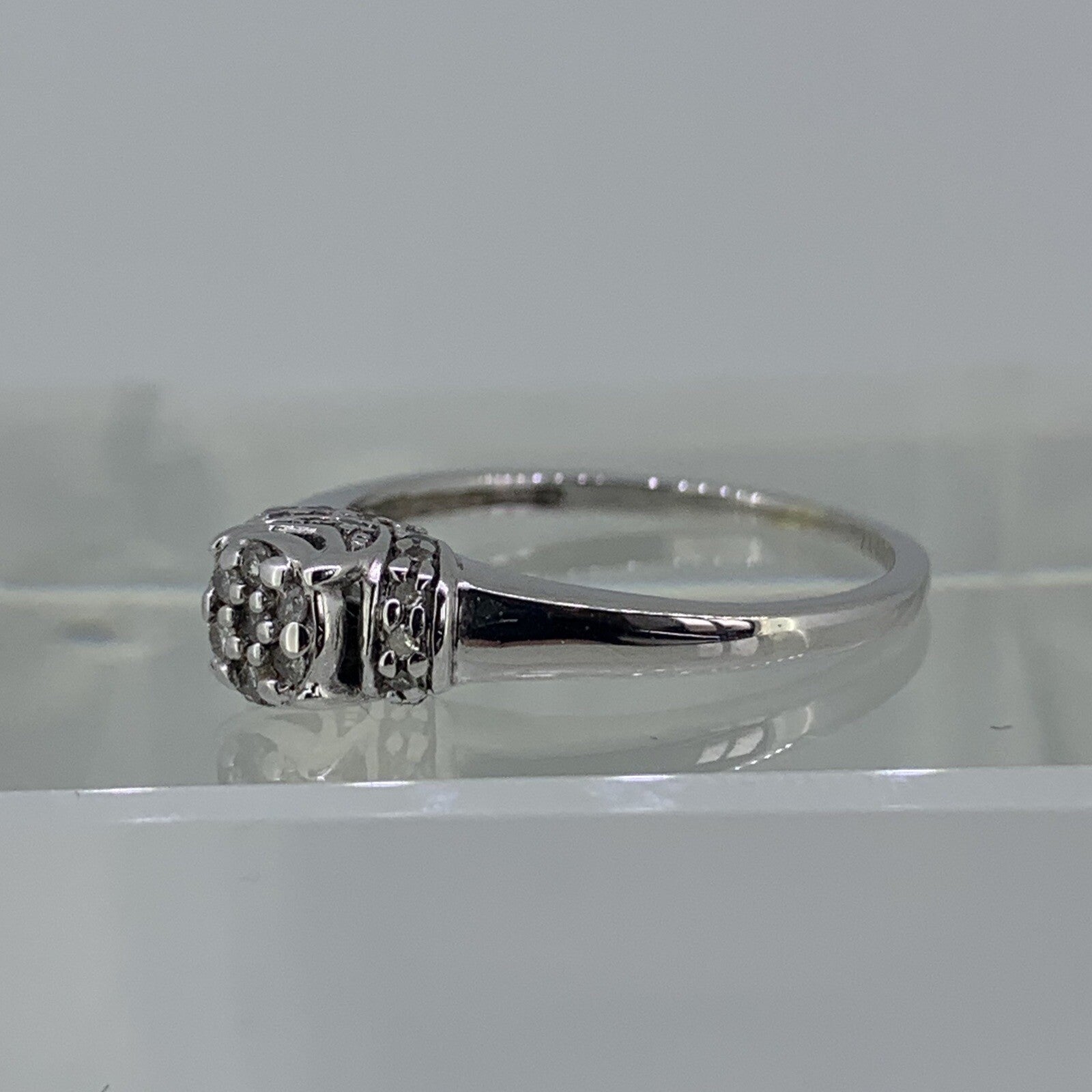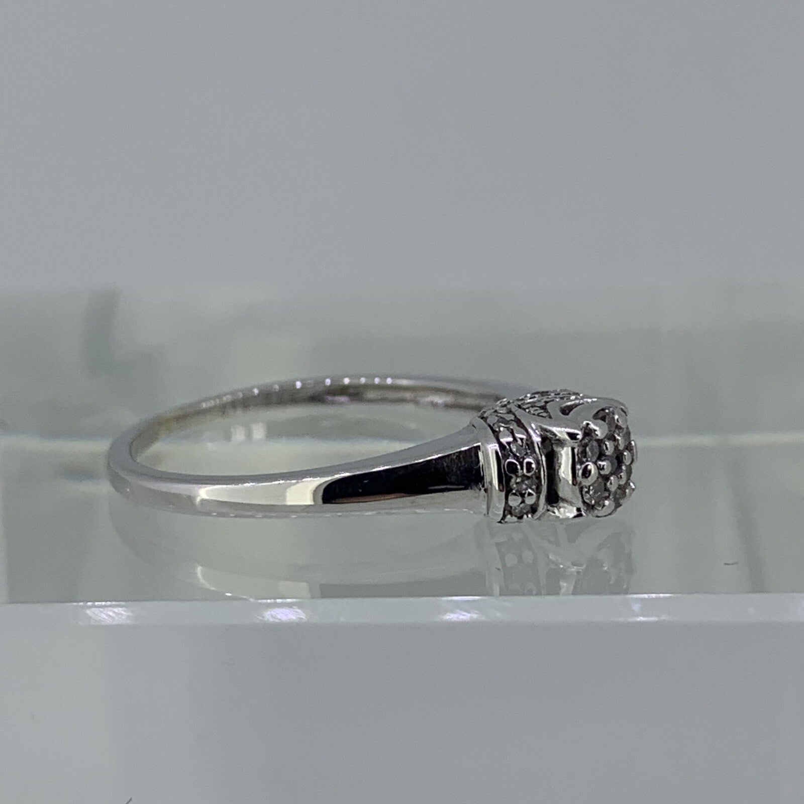 Diamond .17ct Unique Cluster Ring 9ct 9K White Gold - Size M