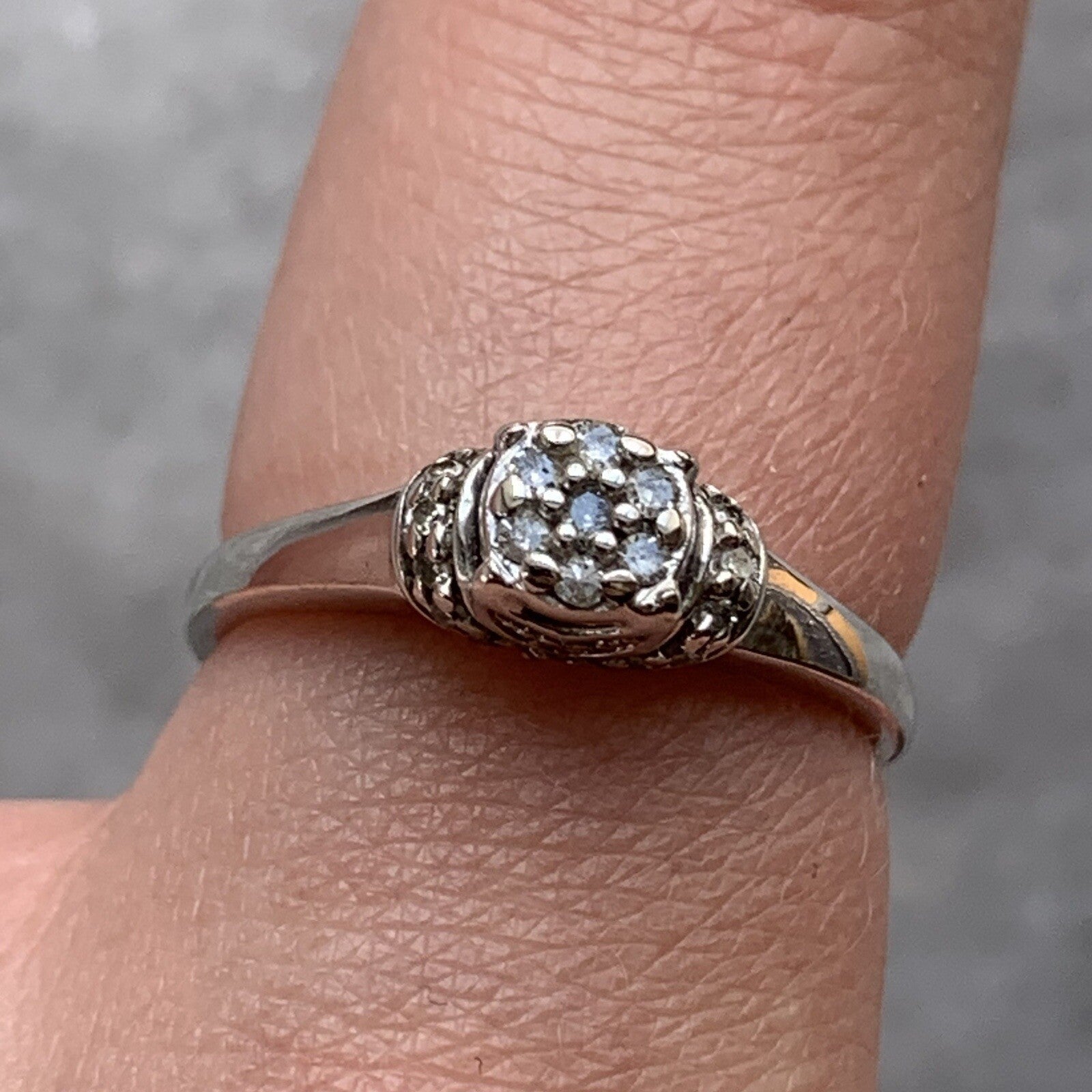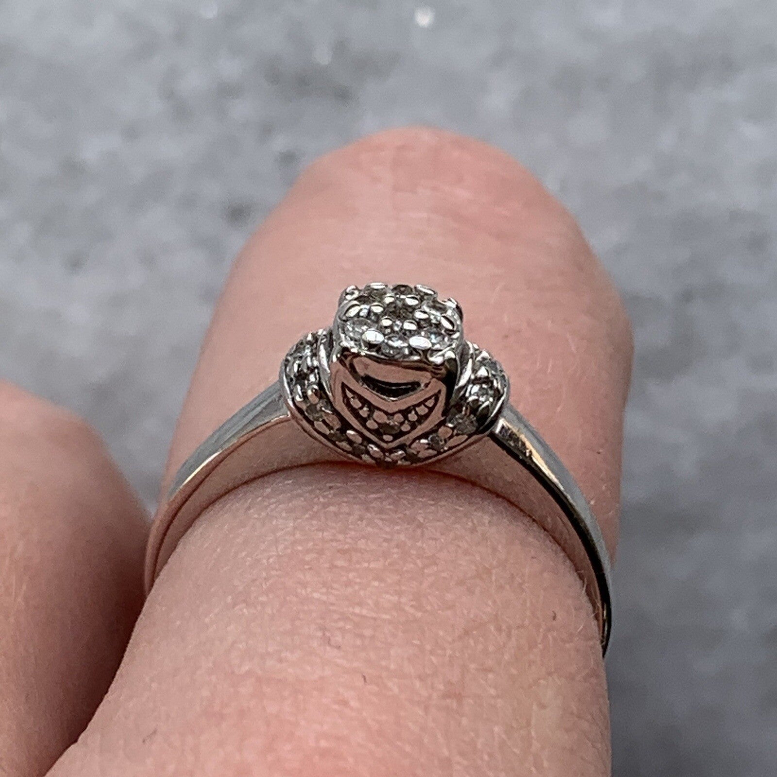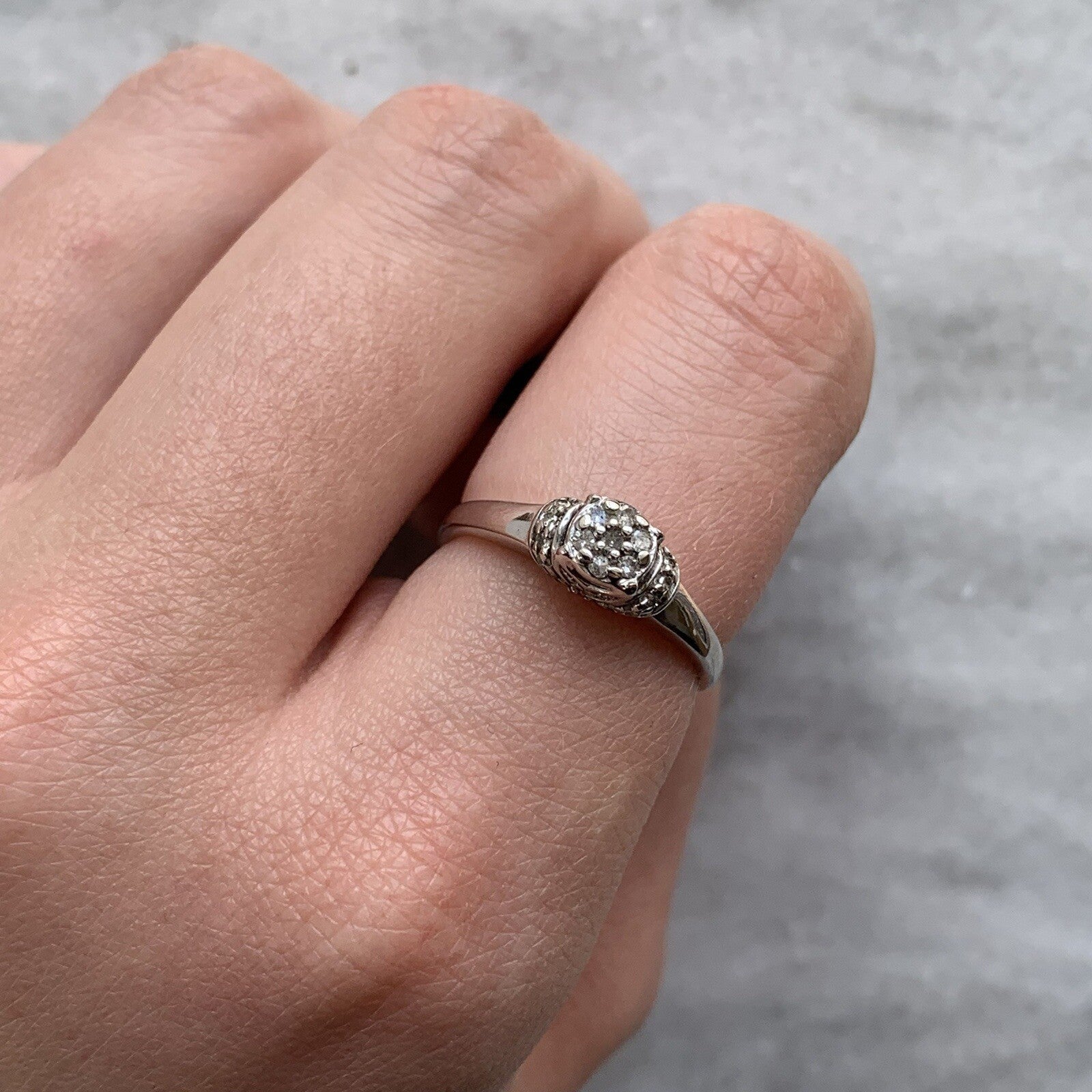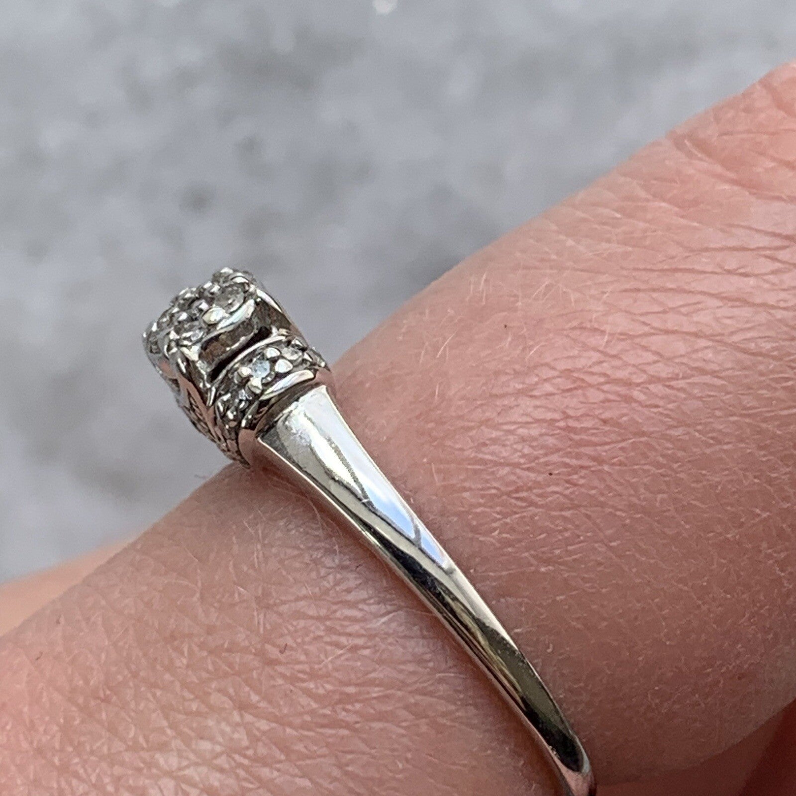 Diamond .17ct Unique Cluster Ring 9ct 9K White Gold - Size M