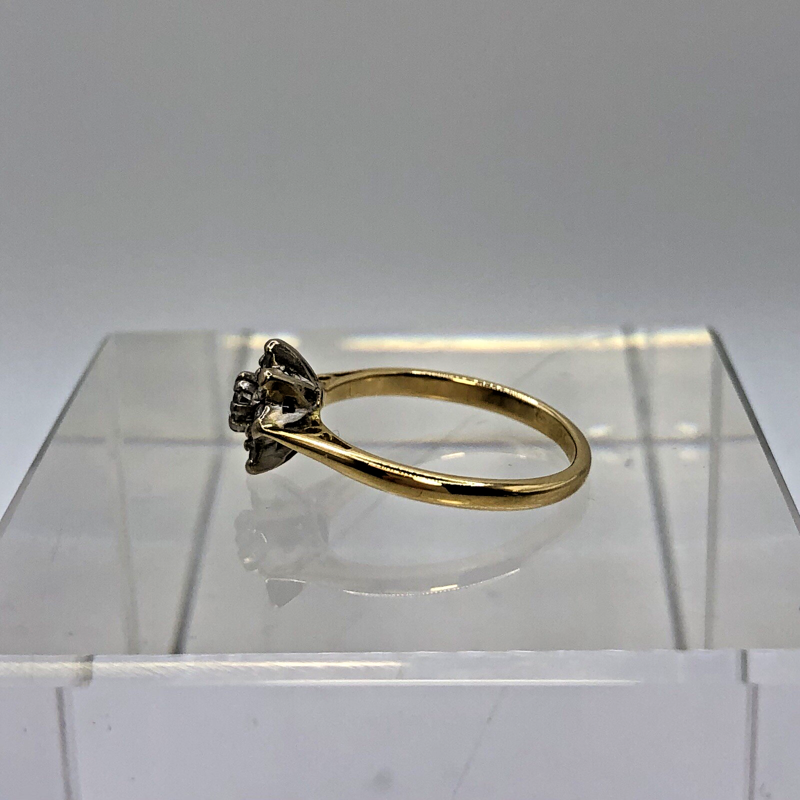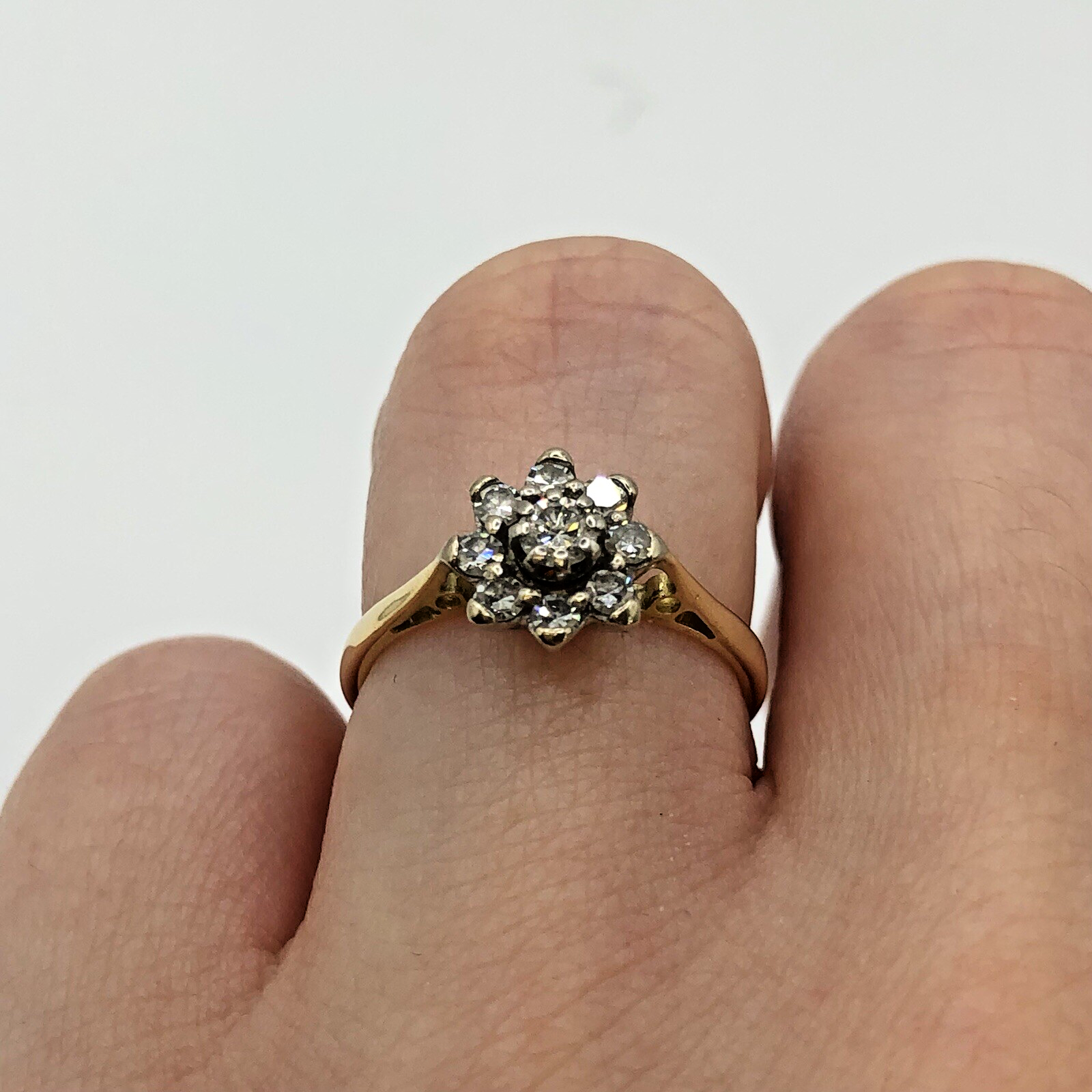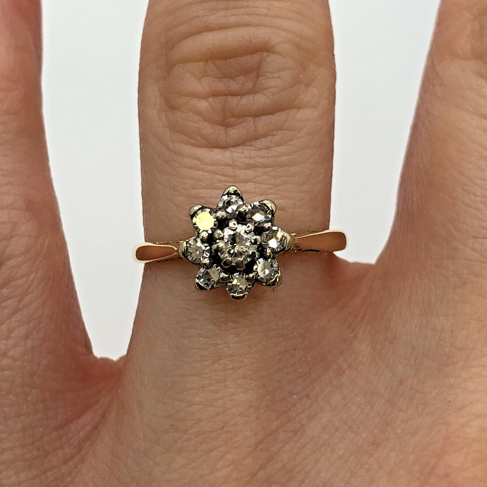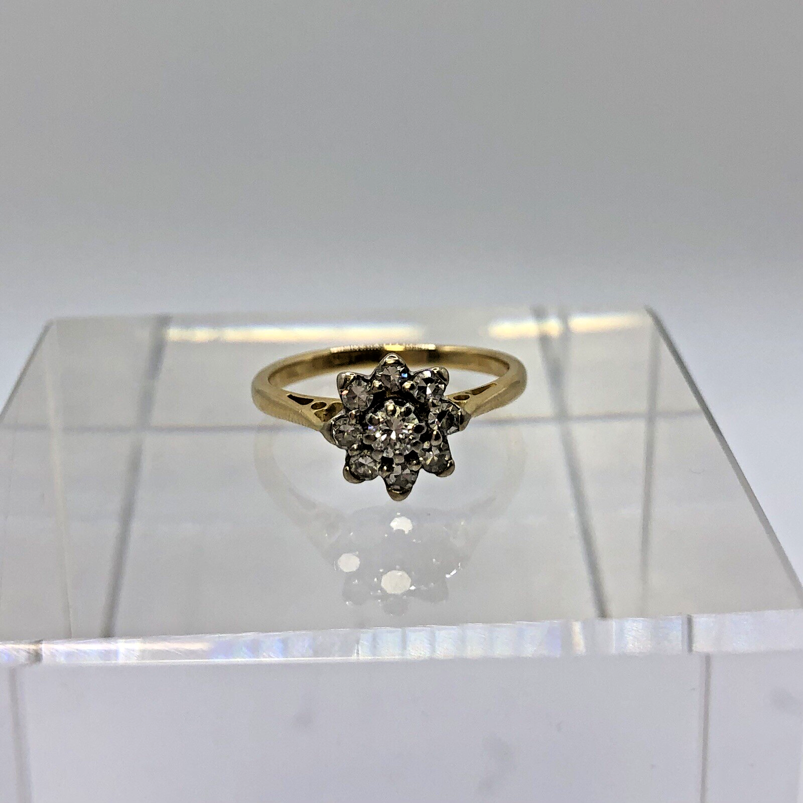 Diamond 18 ct Gold Ring Daisy Flower Cluster - Size L - 750 Yellow Gold