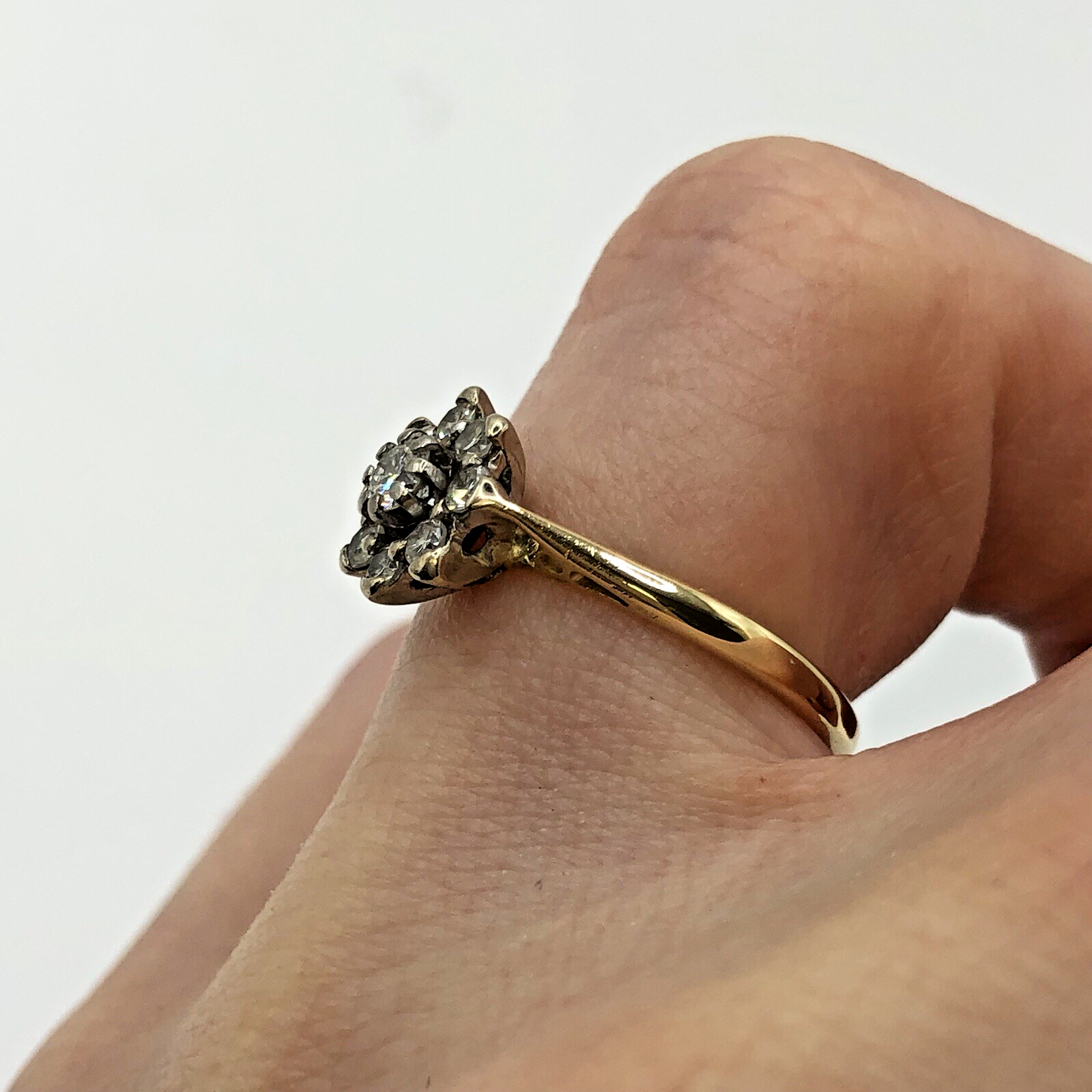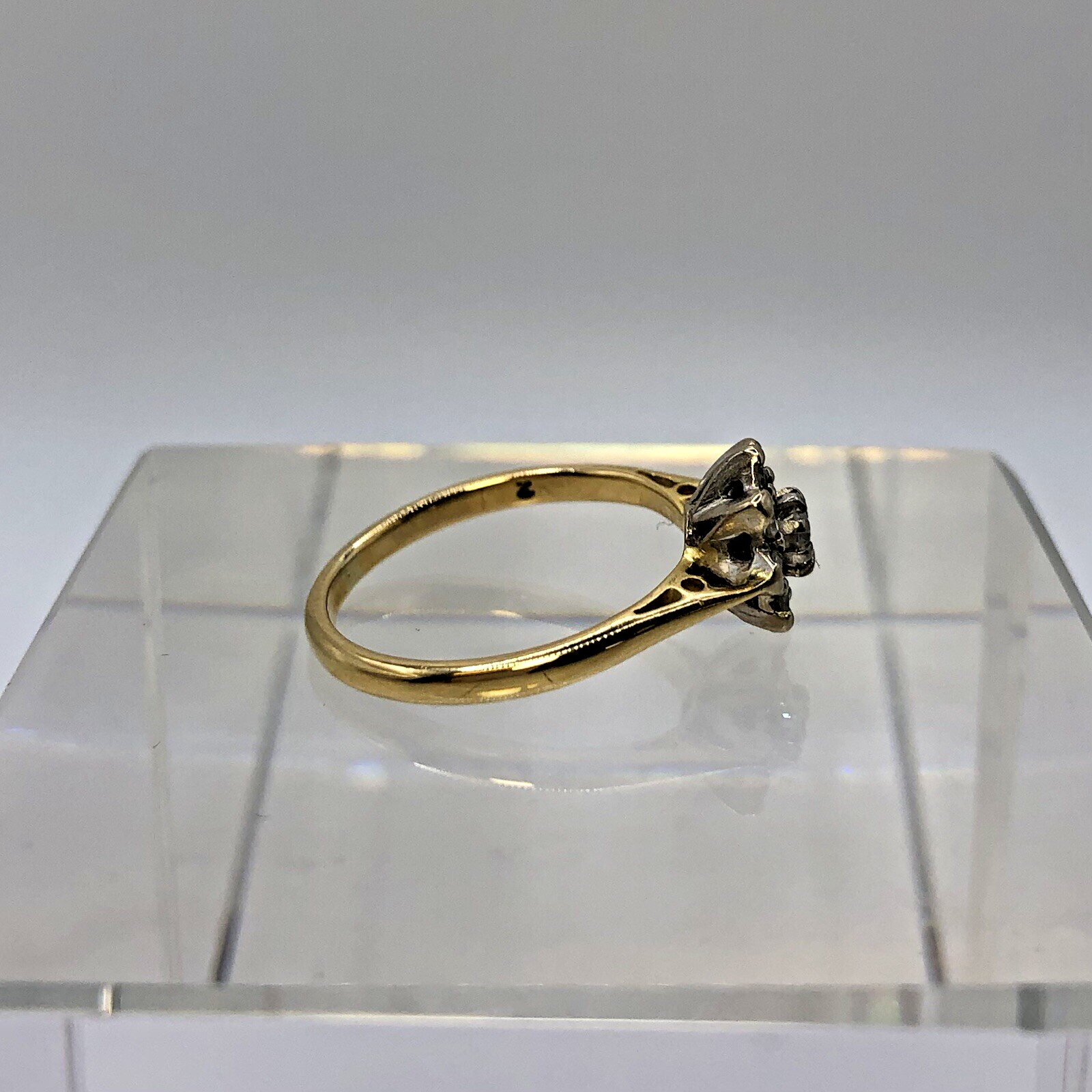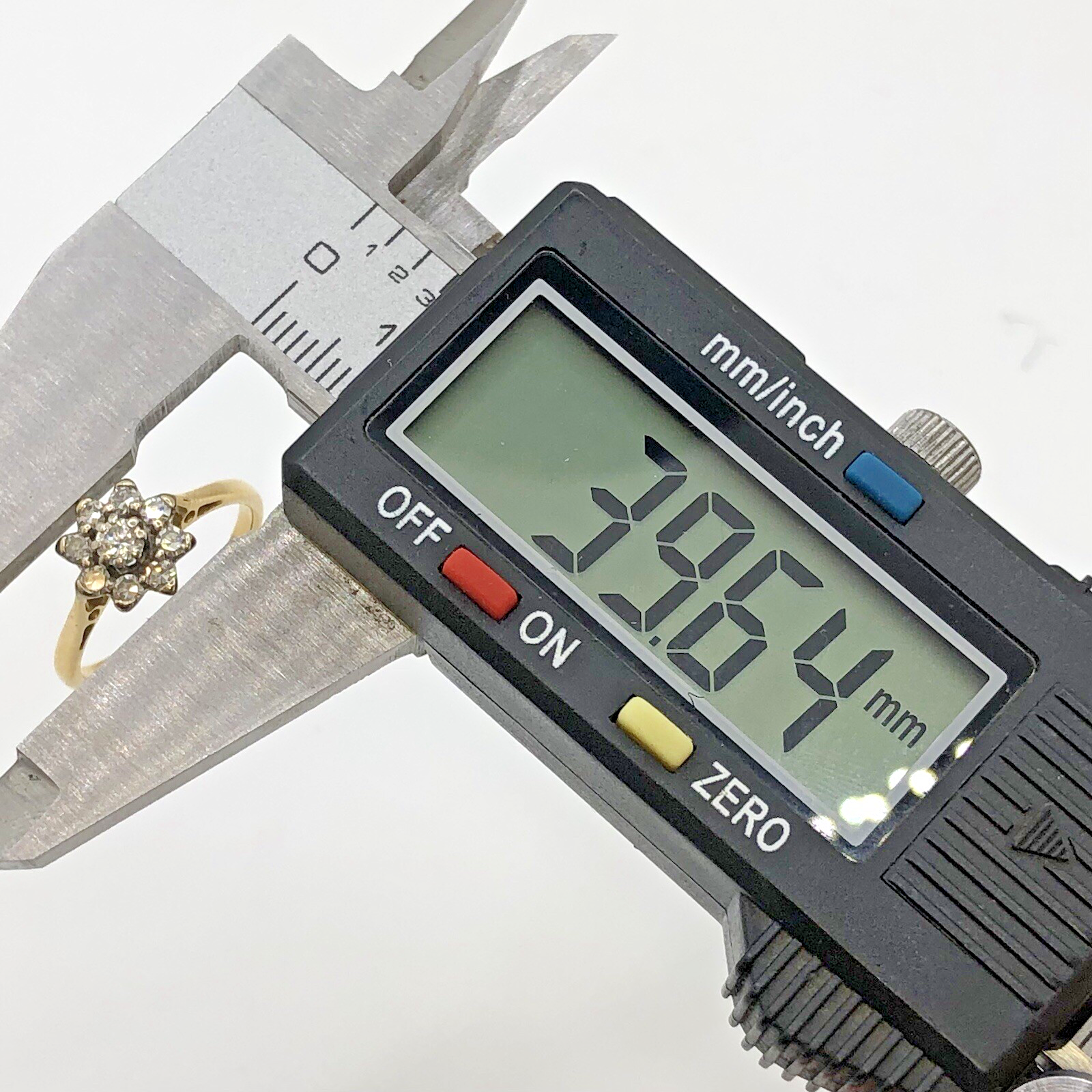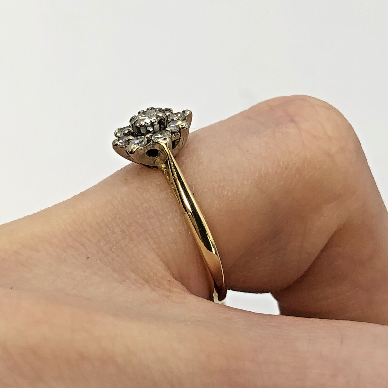 Diamond 18 ct Gold Ring Daisy Flower Cluster - Size L - 750 Yellow Gold