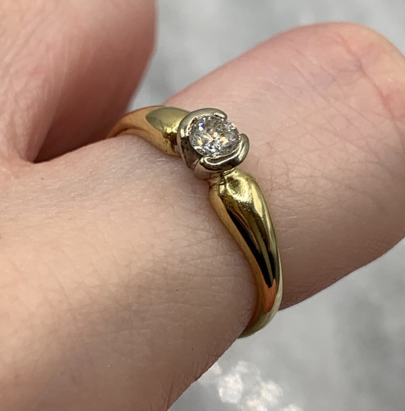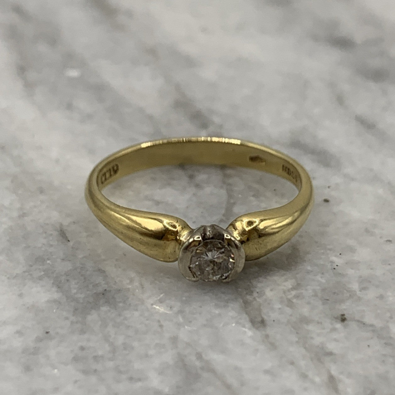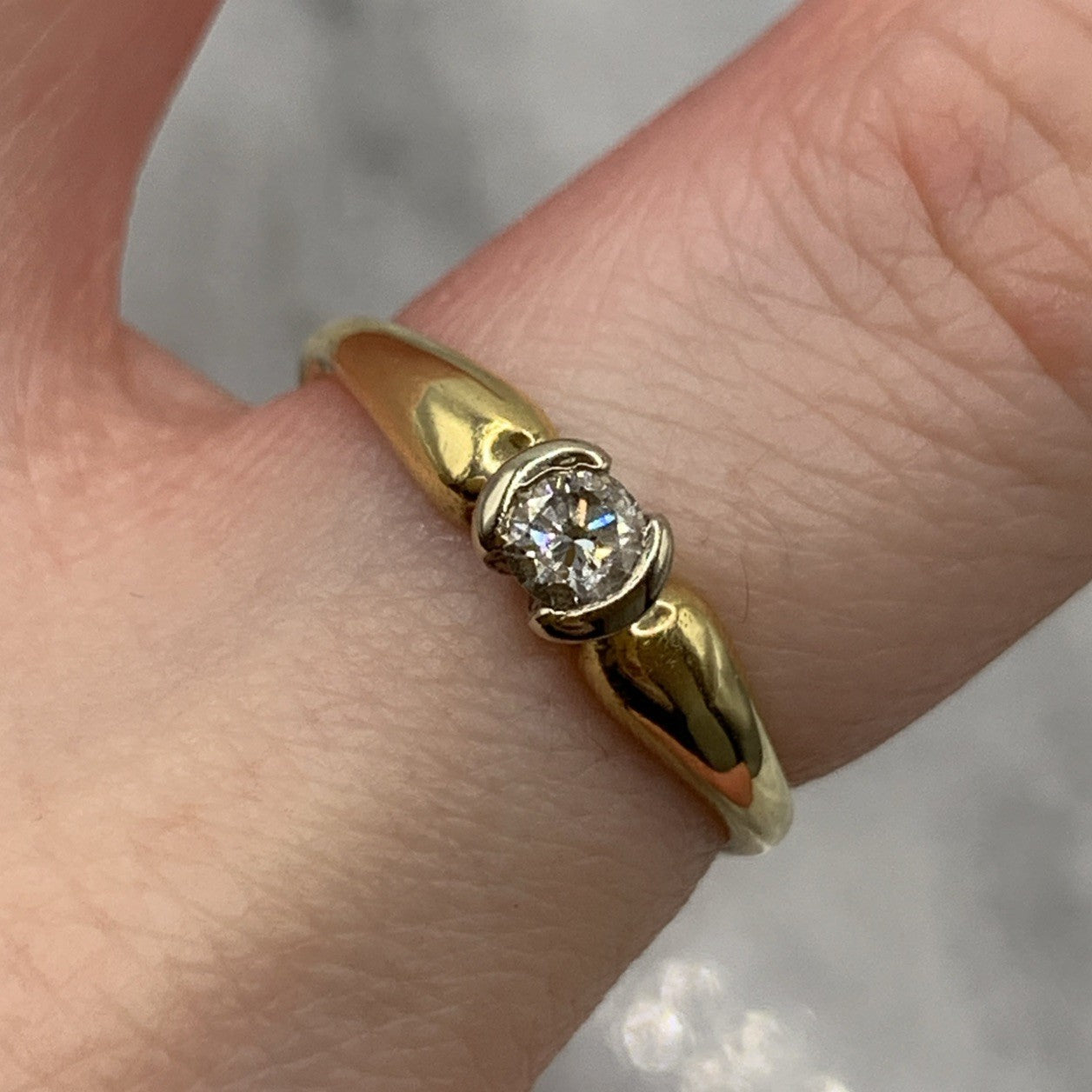 Diamond .21ct Solitaire Ring 18ct 750 Yellow Gold - Size M 1/2