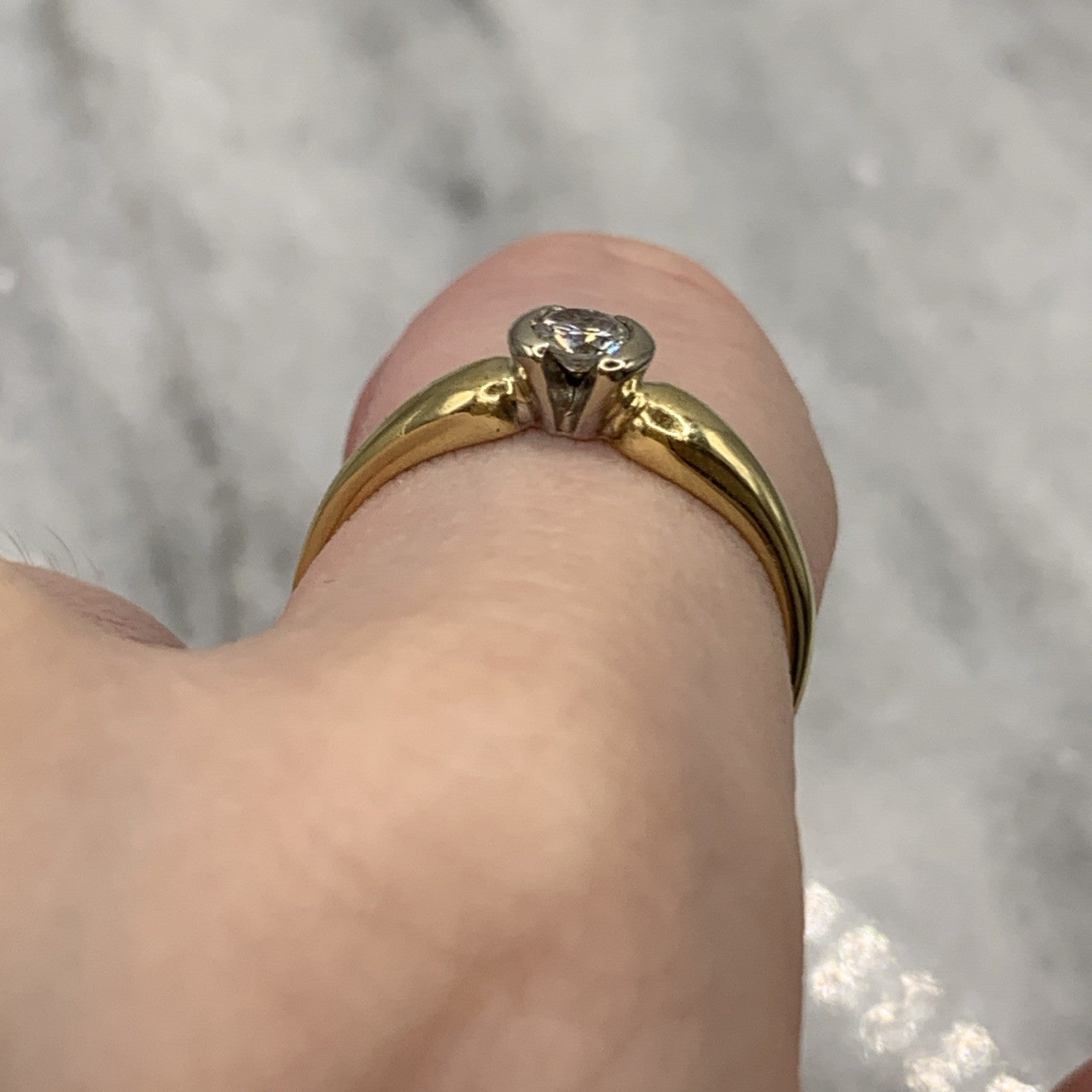 A beautiful gold ring showcasing a solitaire diamond at .21ct.