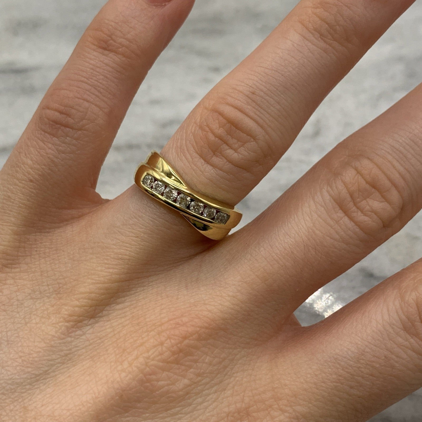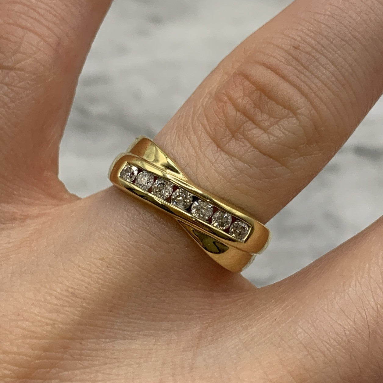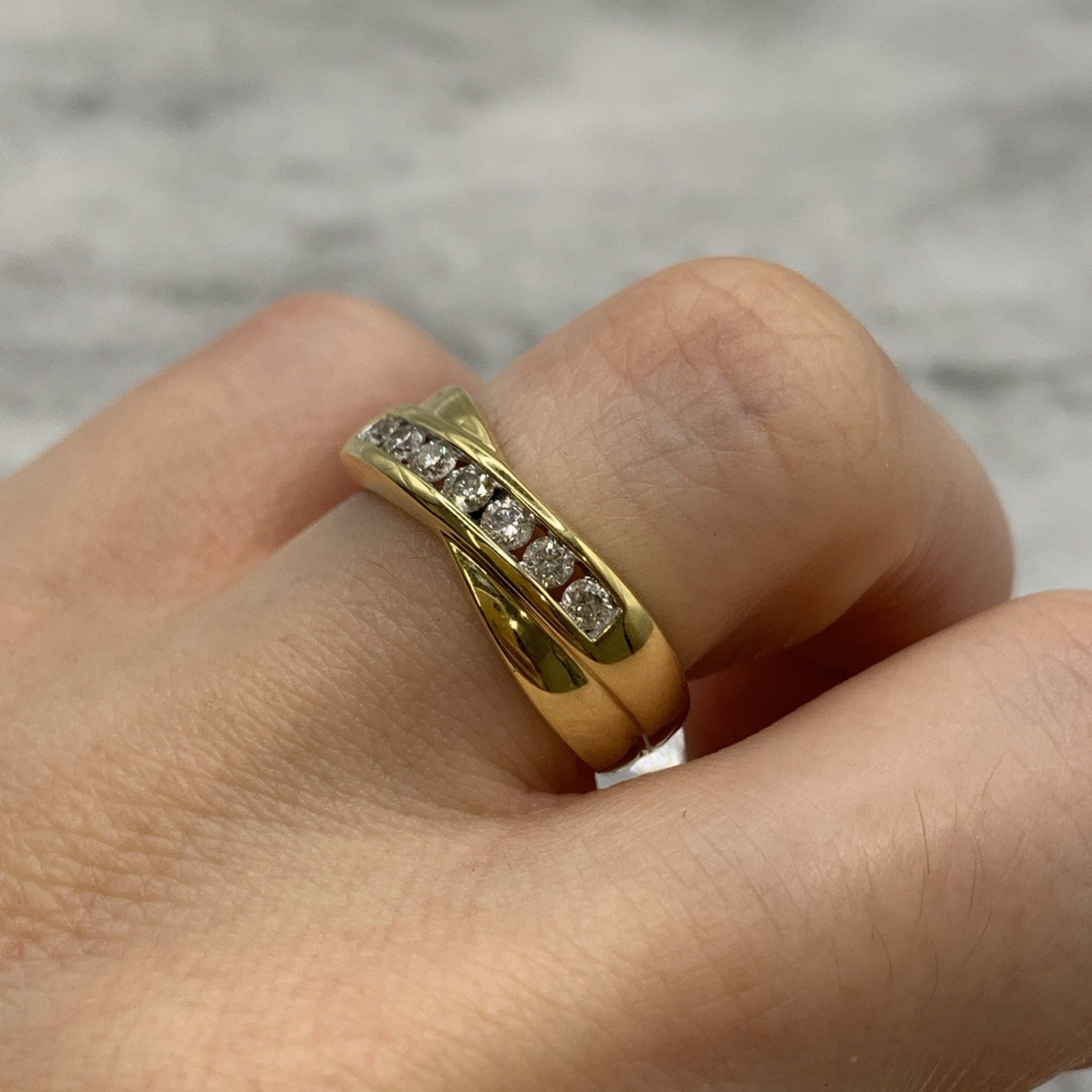 Diamond .33ct Channel Set Crossover Band Ring 18ct 18k Yellow Gold - Size L 1/2