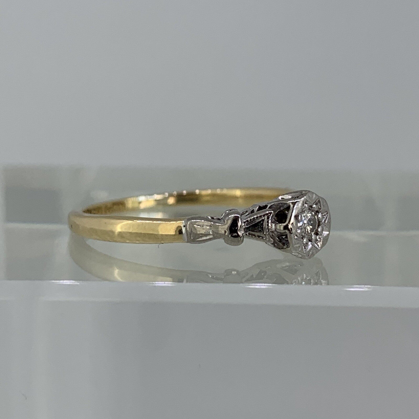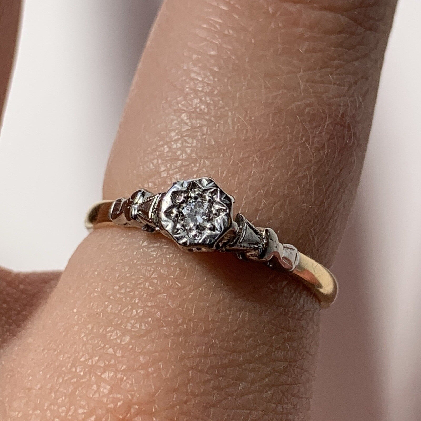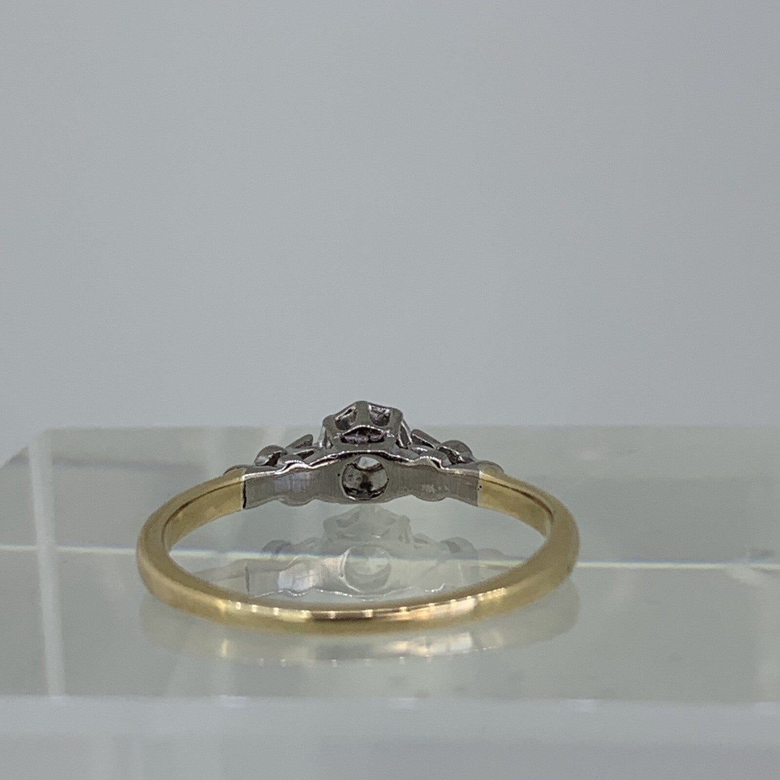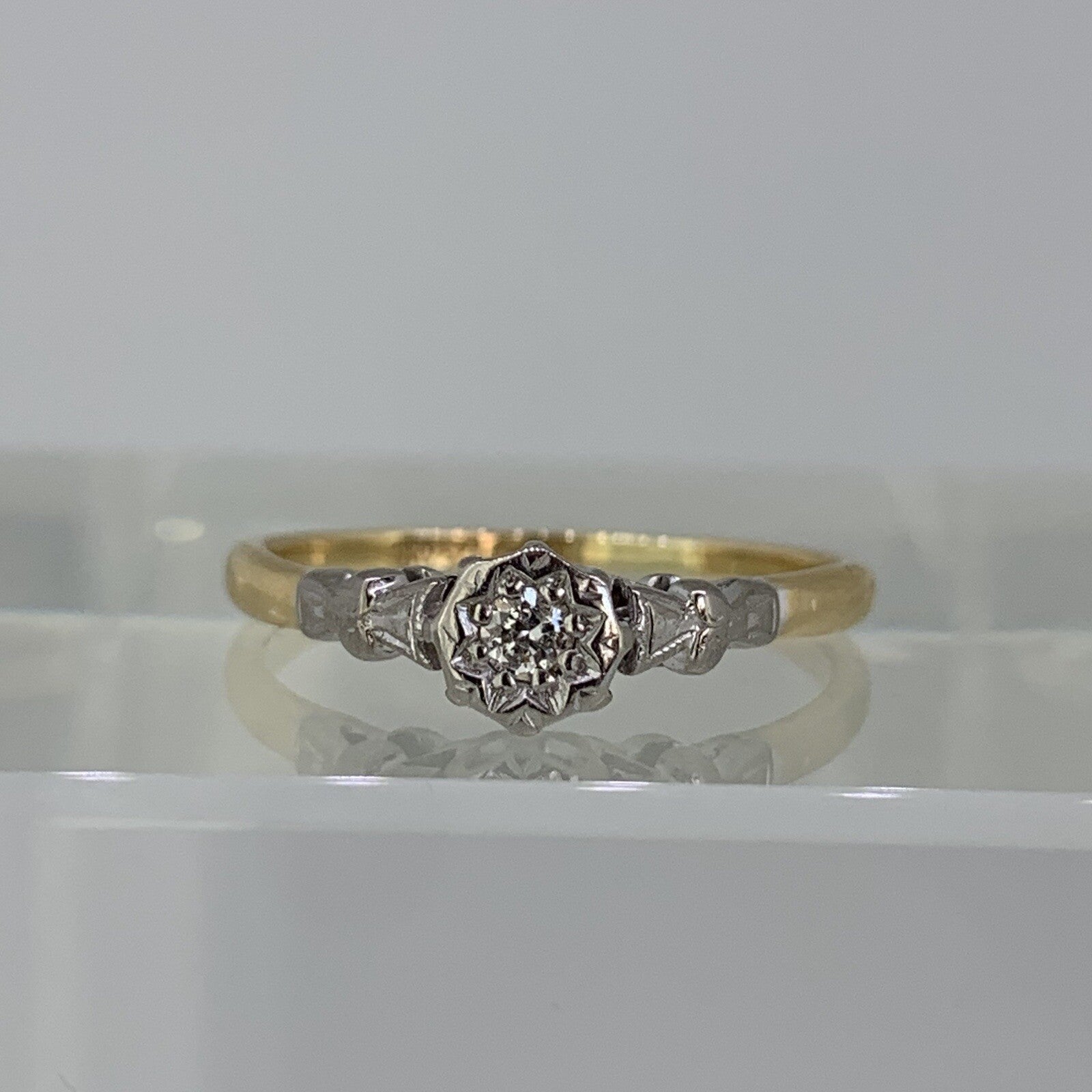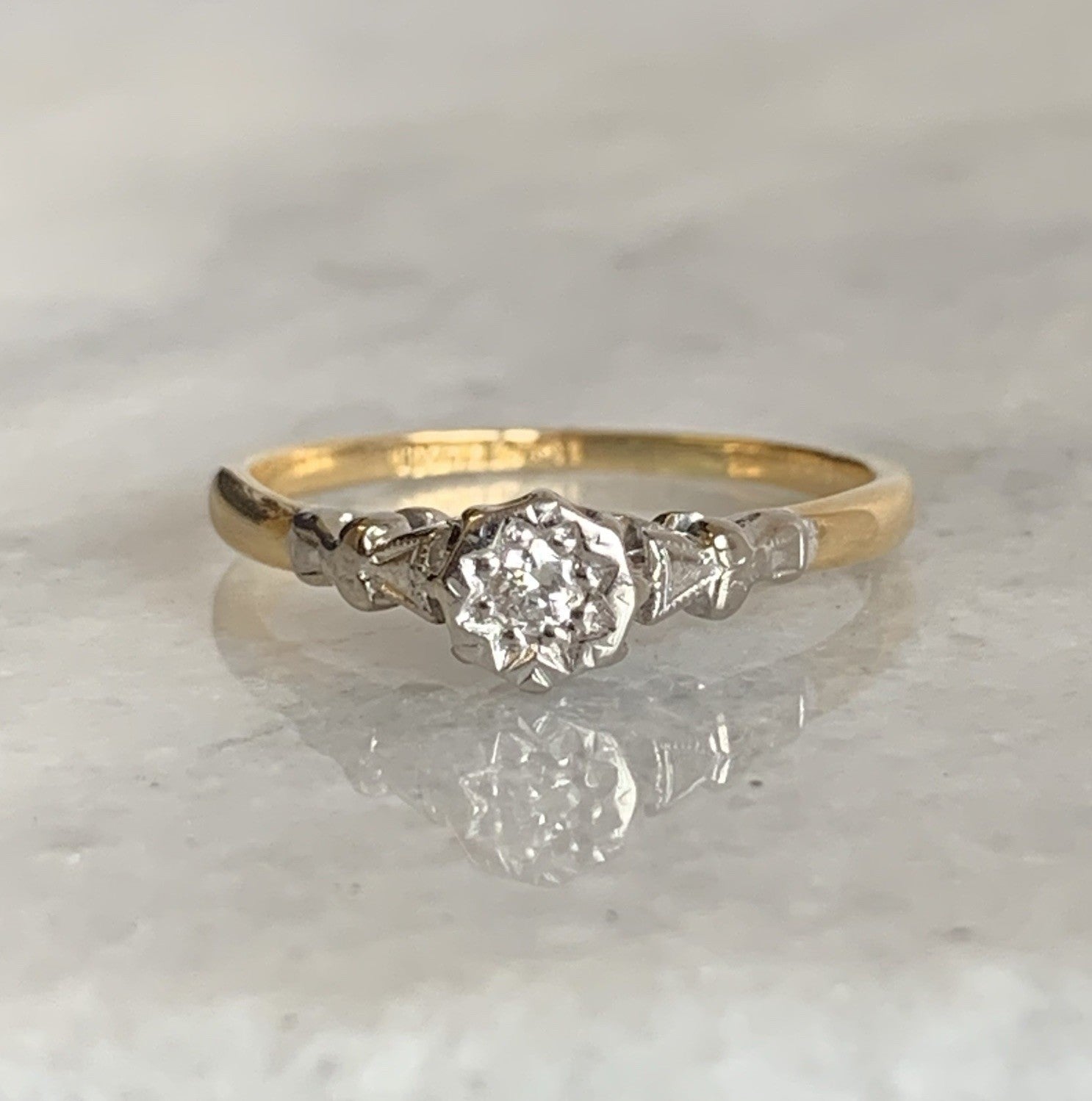 Diamond Antique 1930s Platinum Set Solitaire Ring 18ct Yellow Gold - Size N 1/2