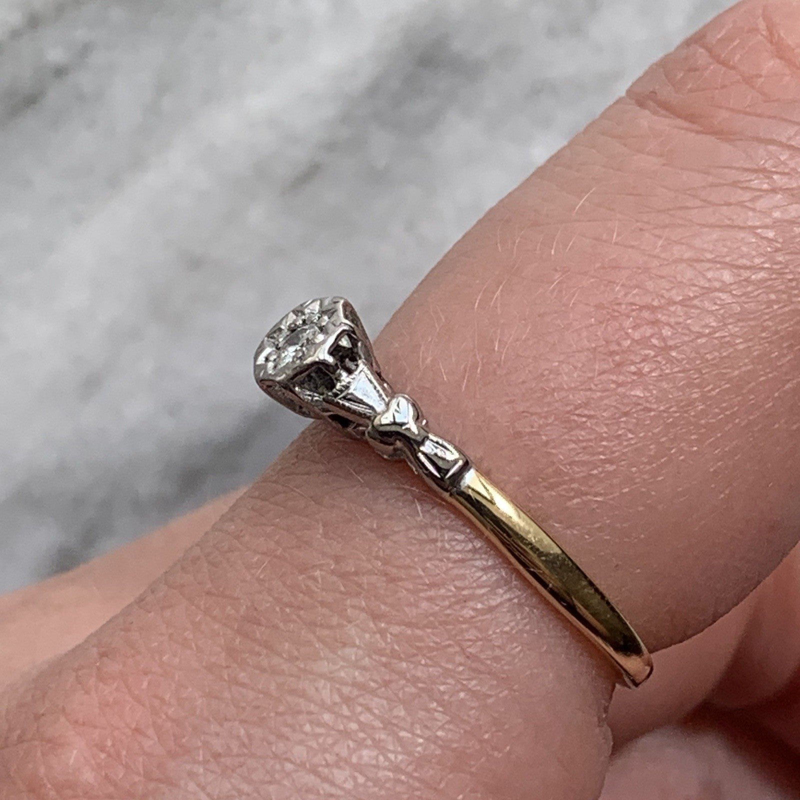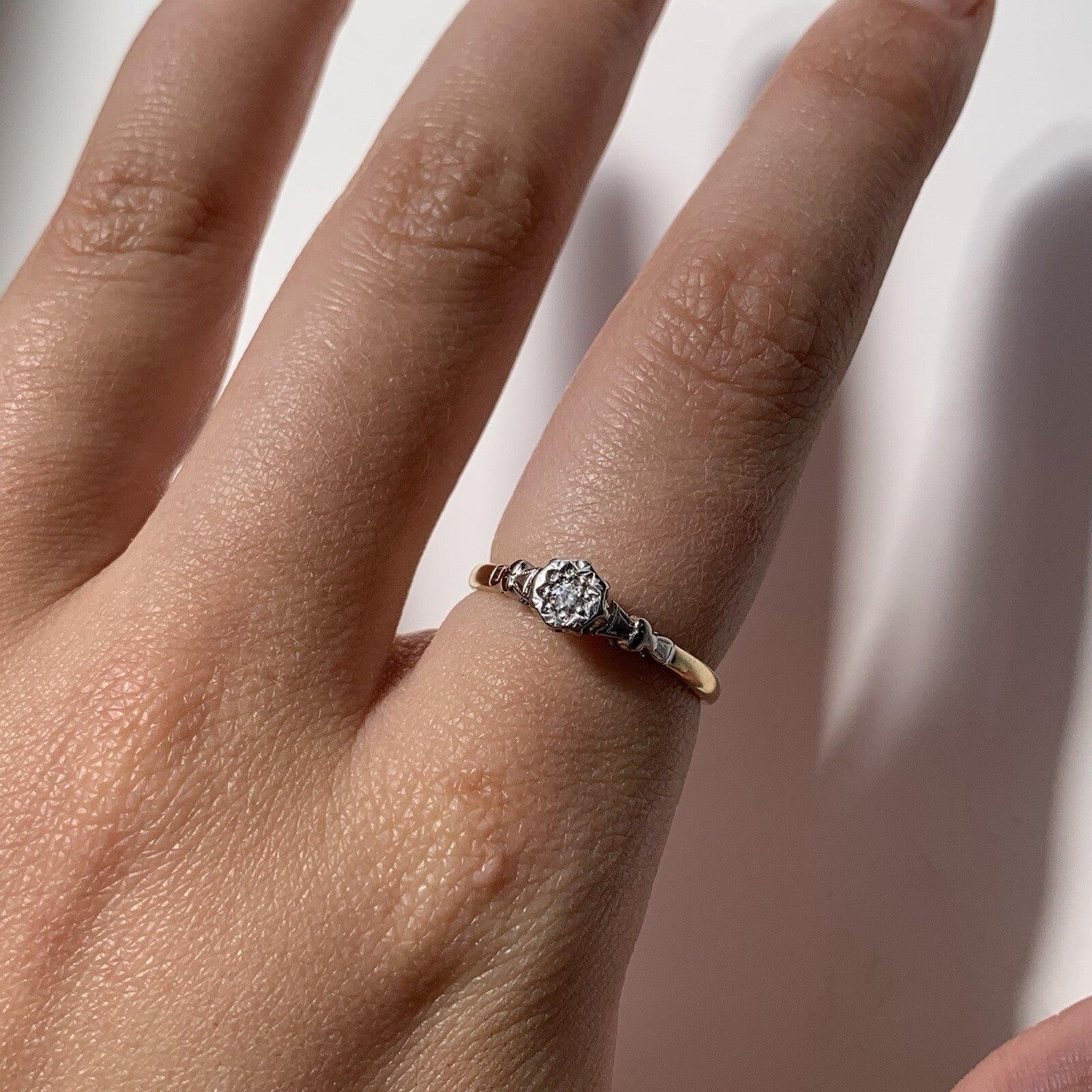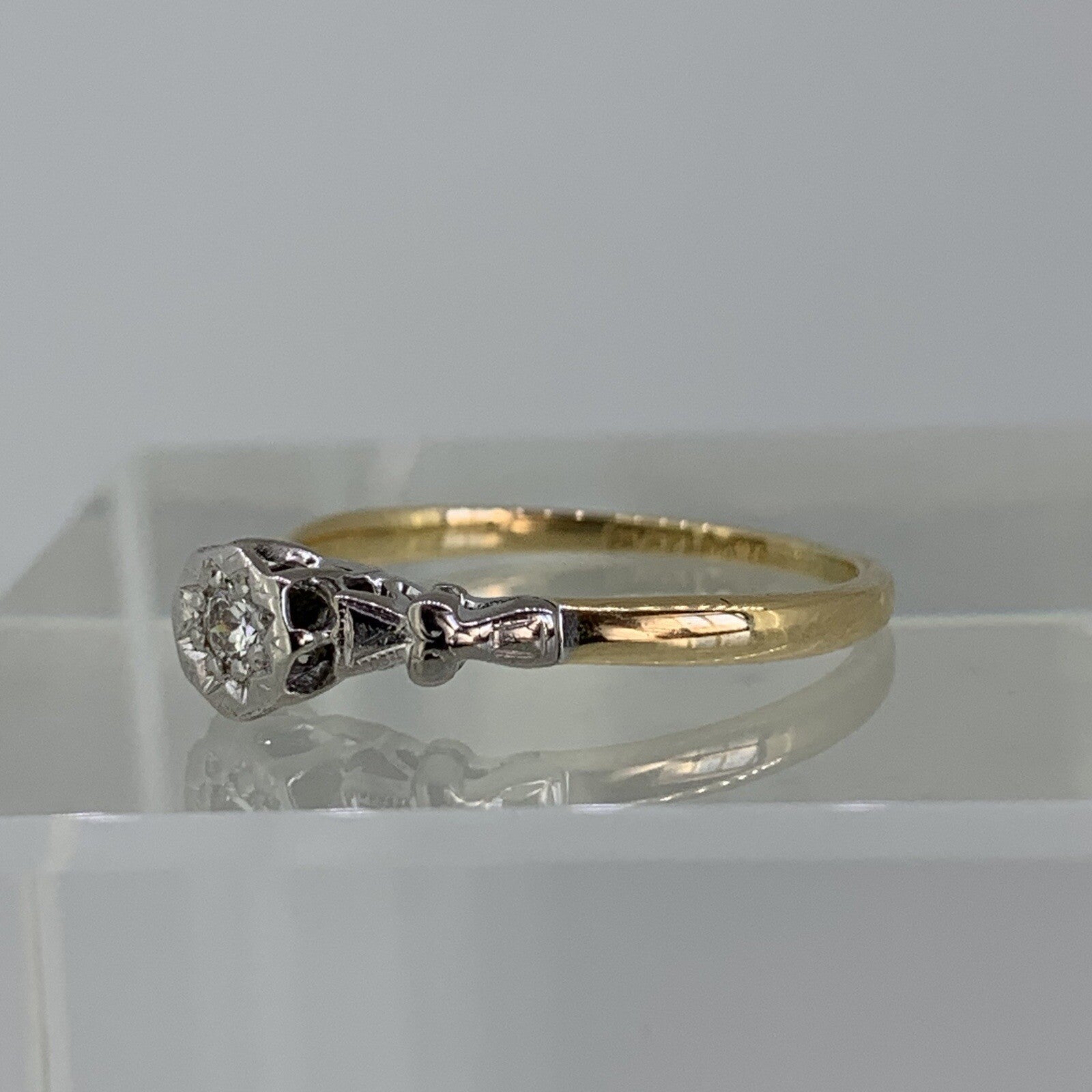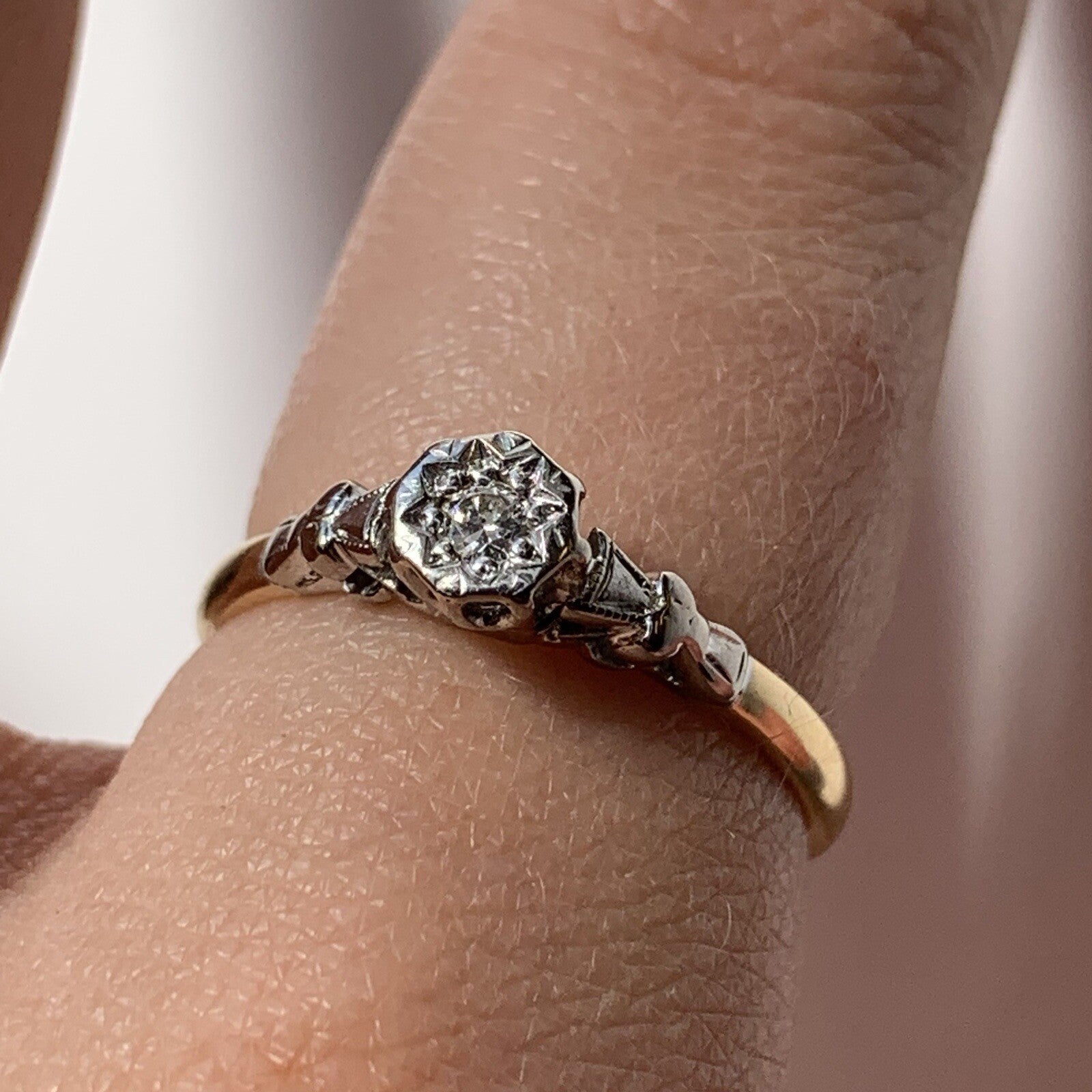 Diamond Antique 1930s Platinum Set Solitaire Ring 18ct Yellow Gold - Size N 1/2
