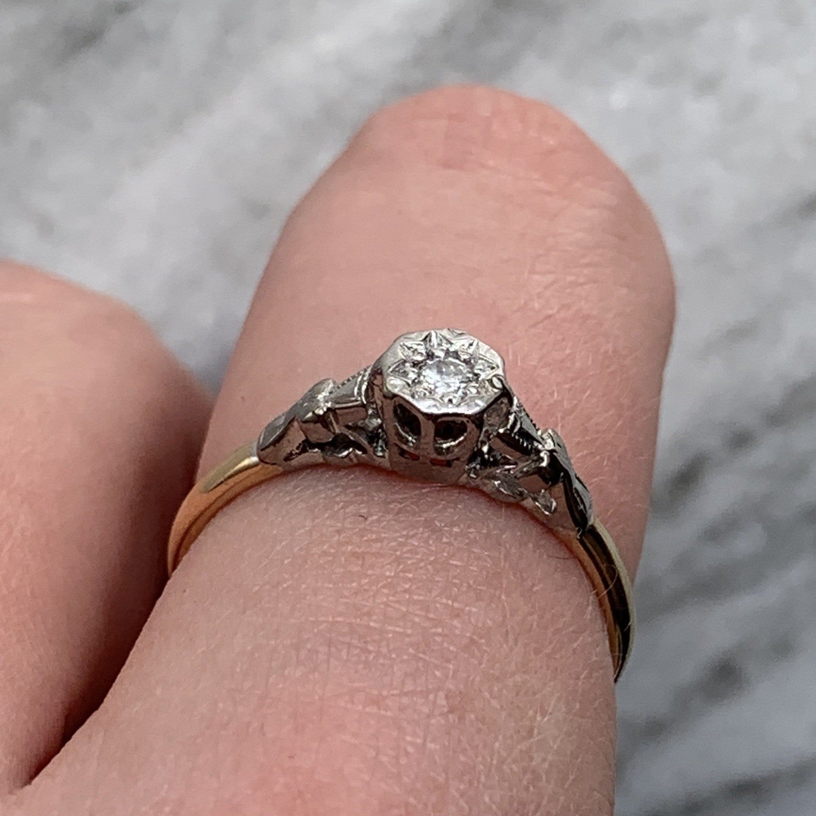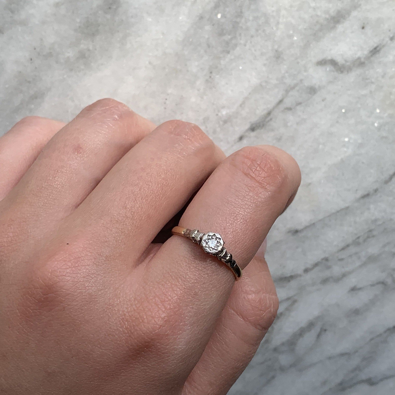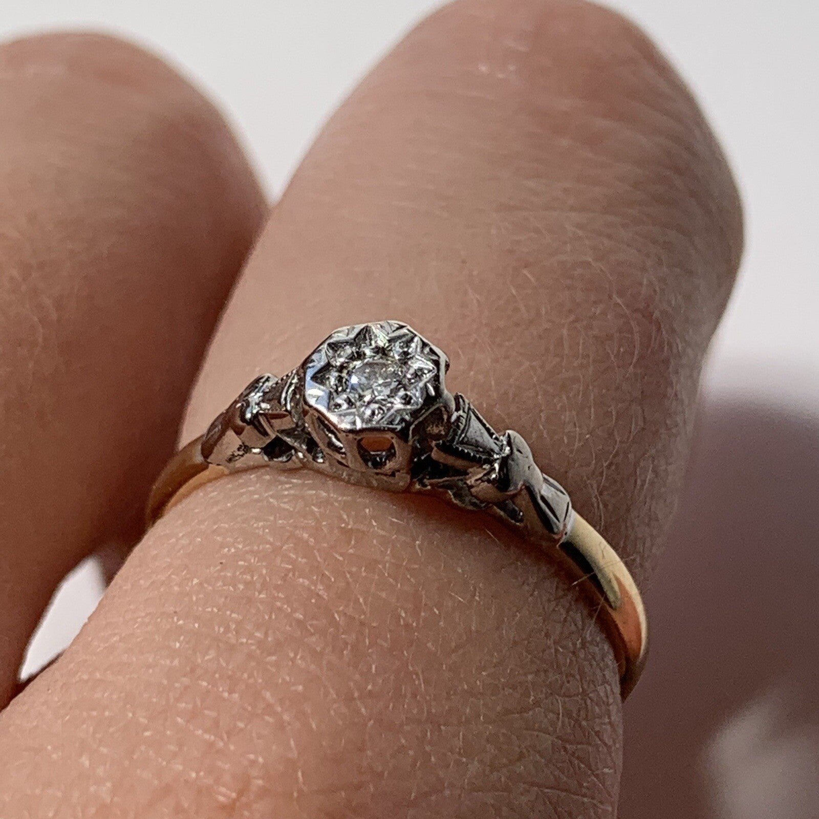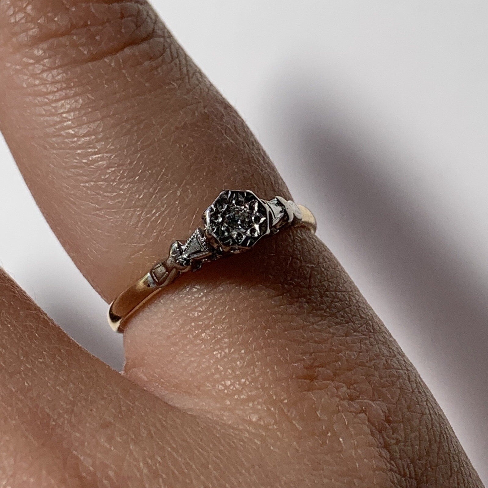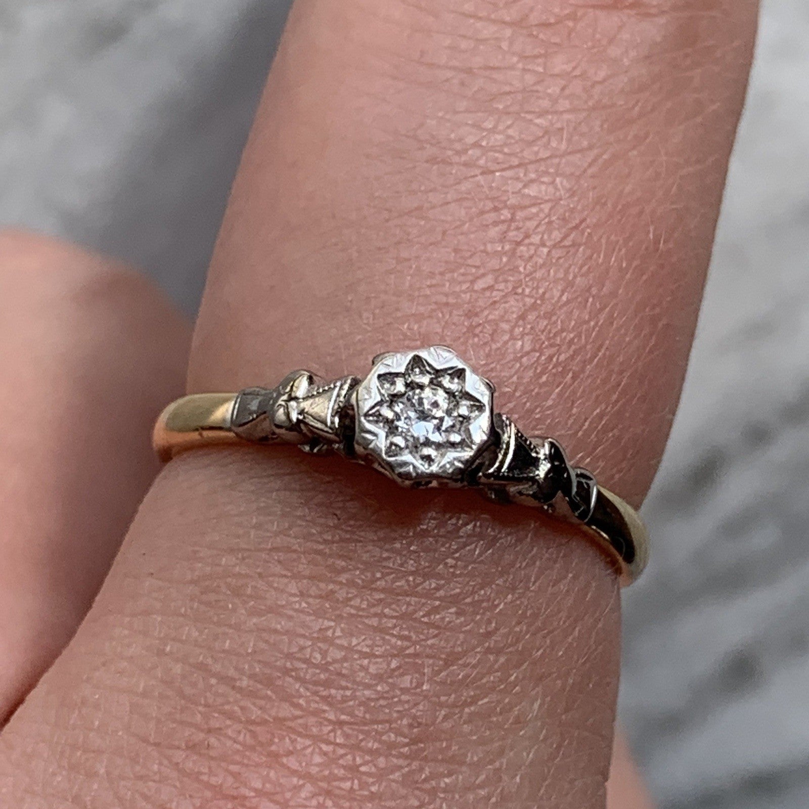 Diamond Antique 1930s Platinum Set Solitaire Ring 18ct Yellow Gold - Size N 1/2