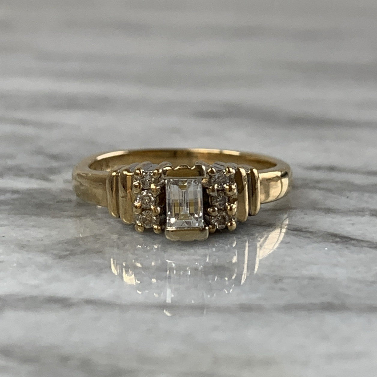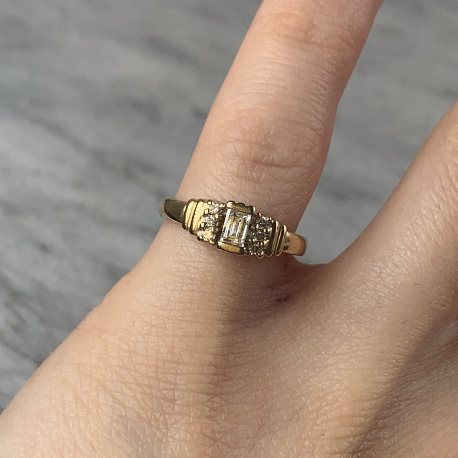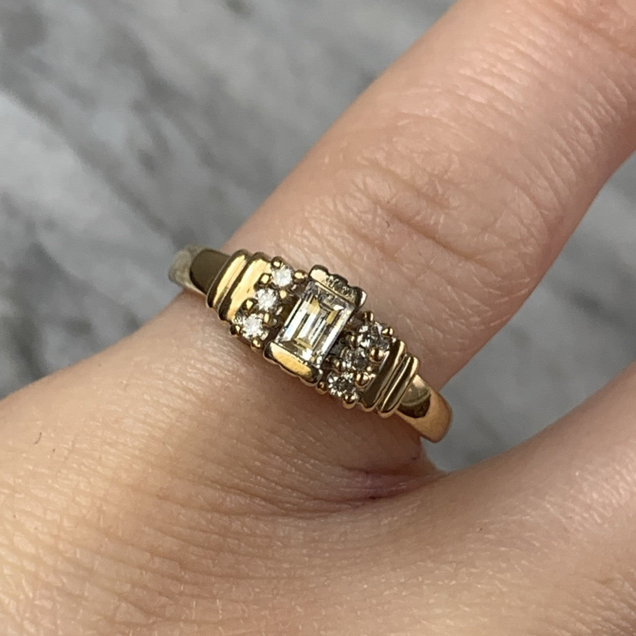 Diamond Baguette Cut Art Deco Accent Ring 18ct 750 Yellow Gold - Size H 1/2
