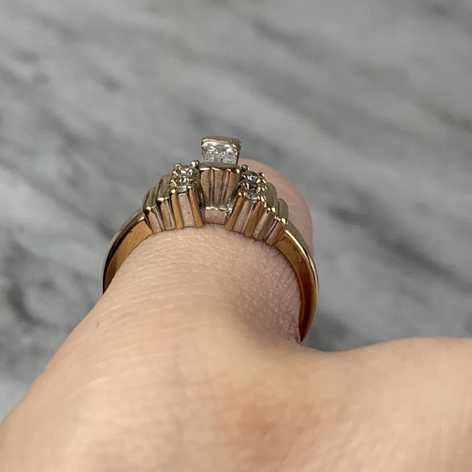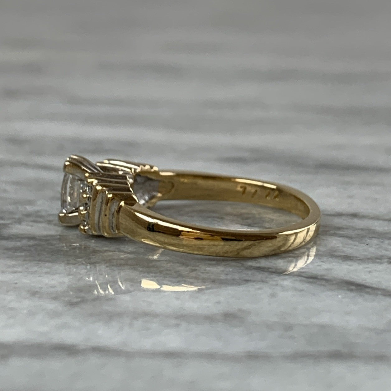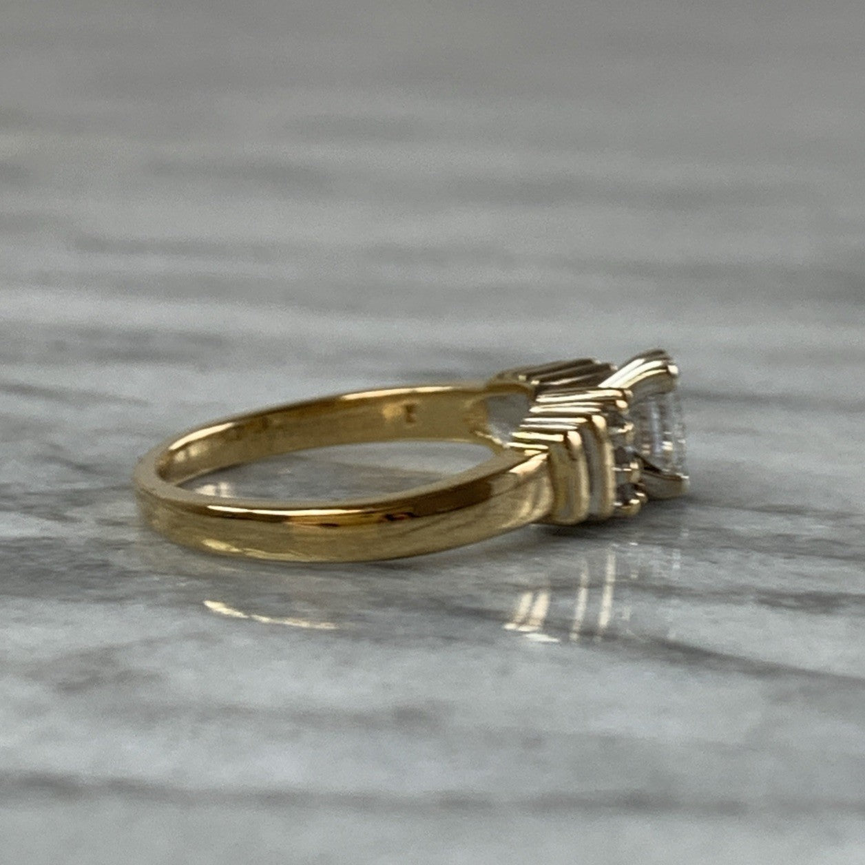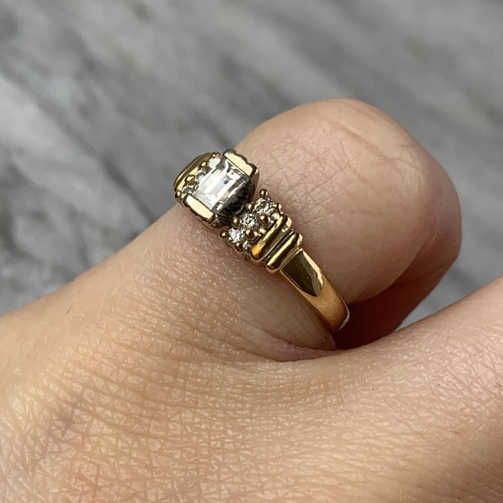 Diamond Baguette Cut Art Deco Accent Ring 18ct 750 Yellow Gold - Size H 1/2