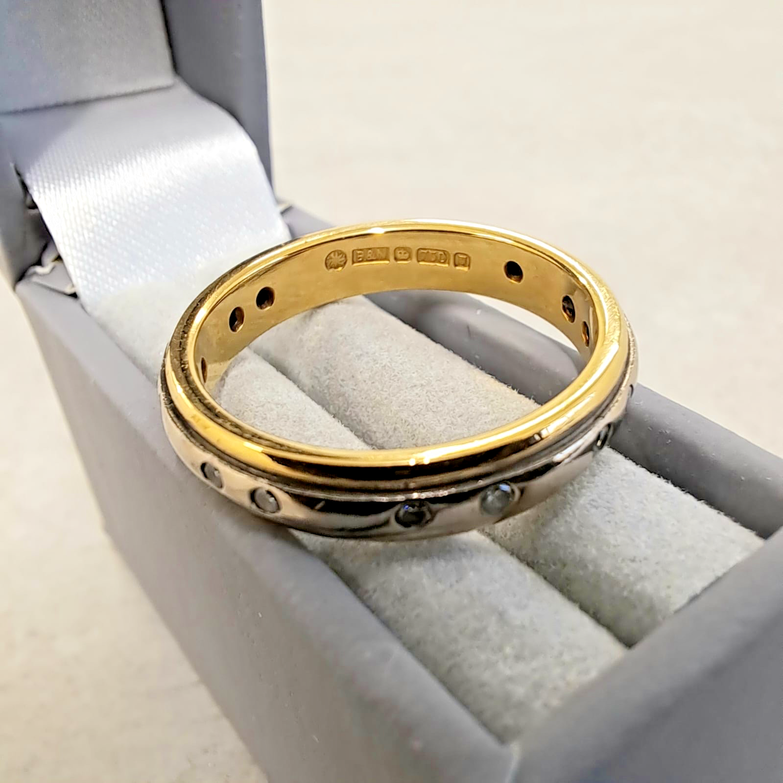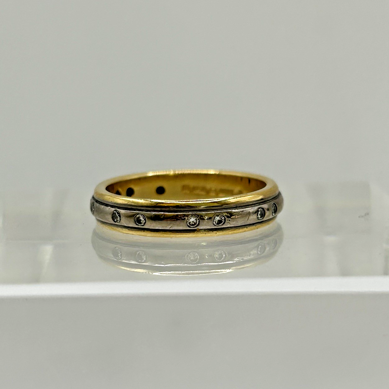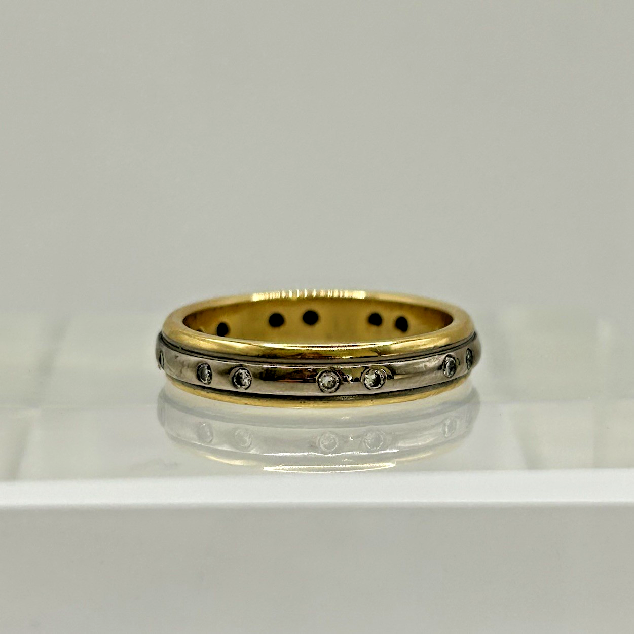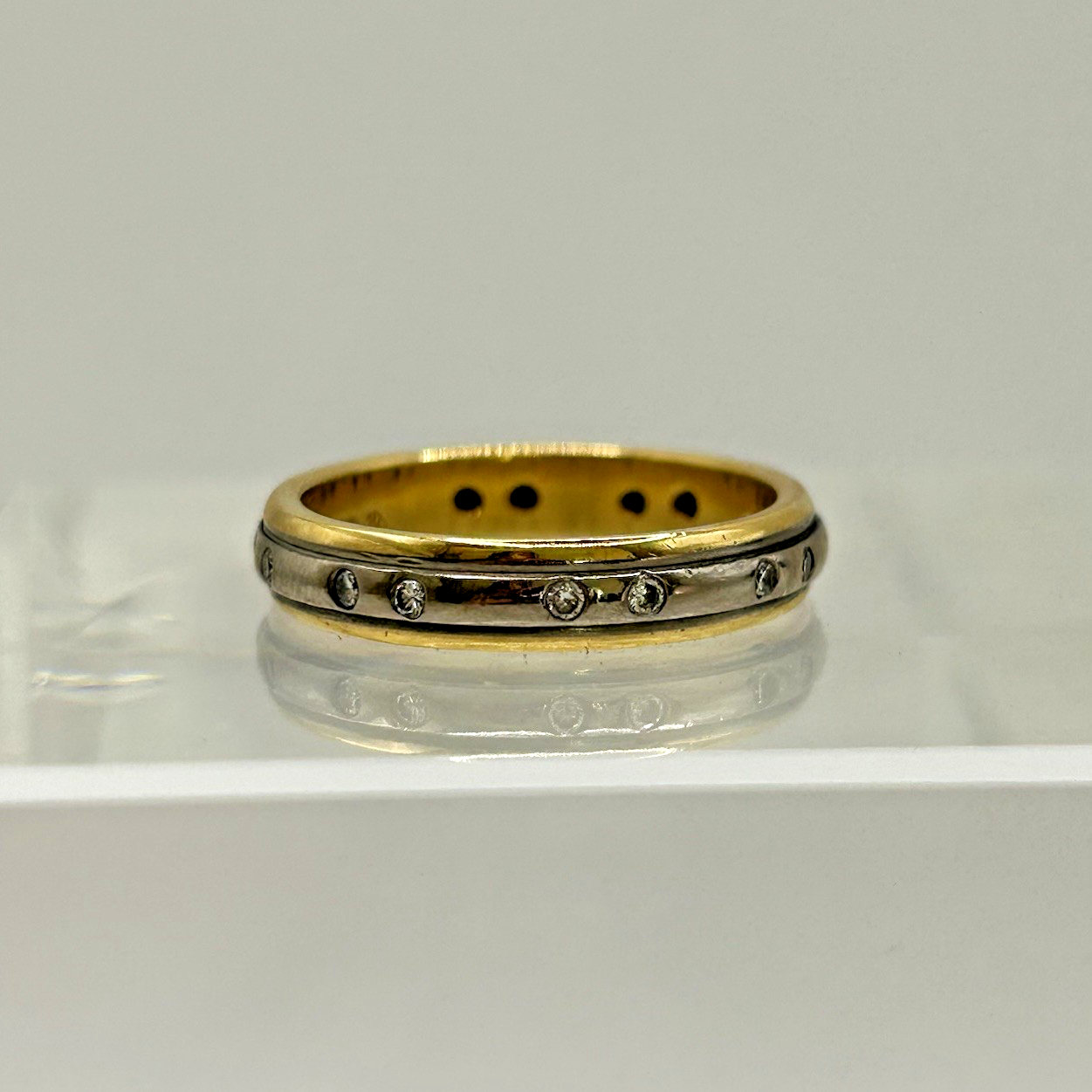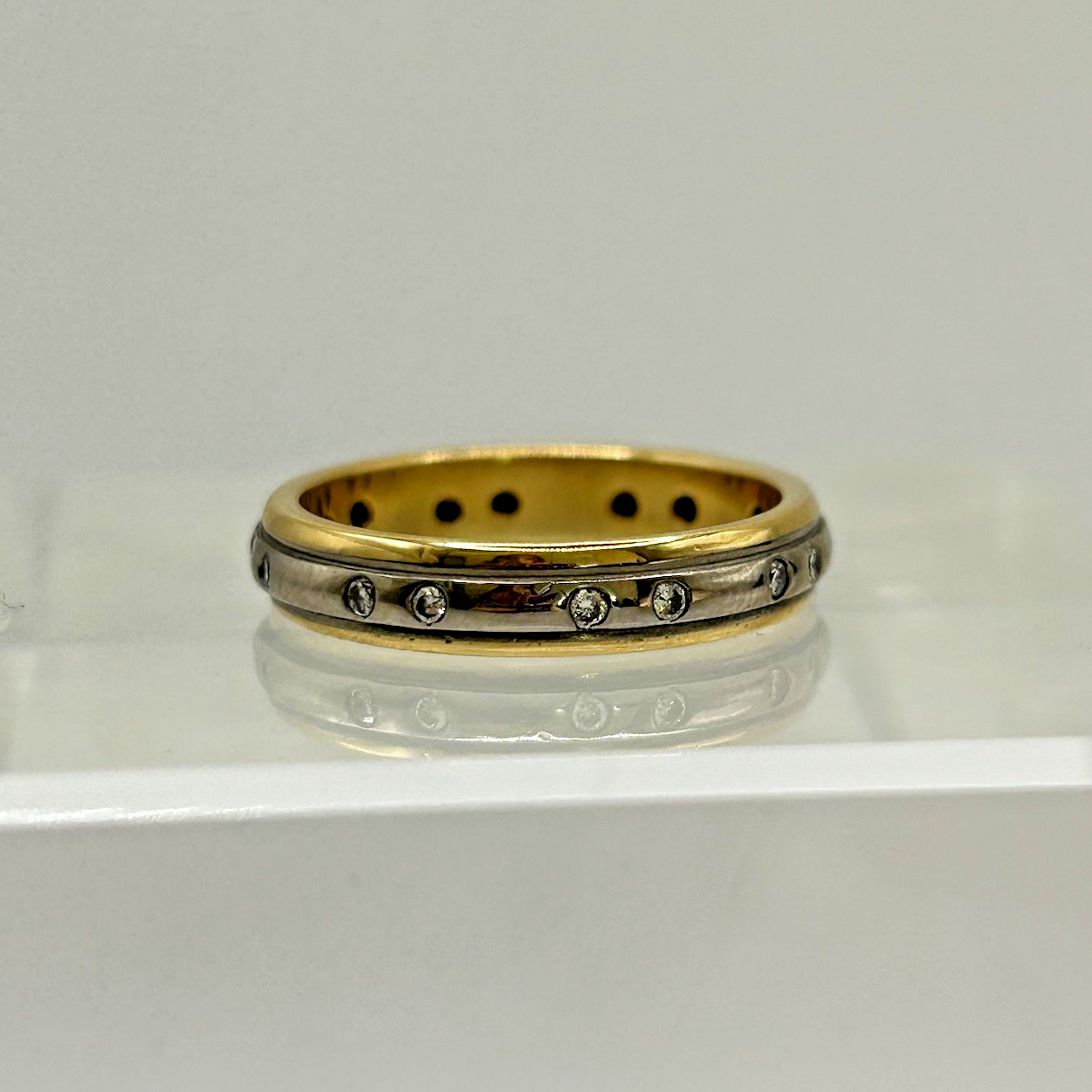 Diamond Band Ring 18ct Gold Two Tone Flush Set - Size M 1/2