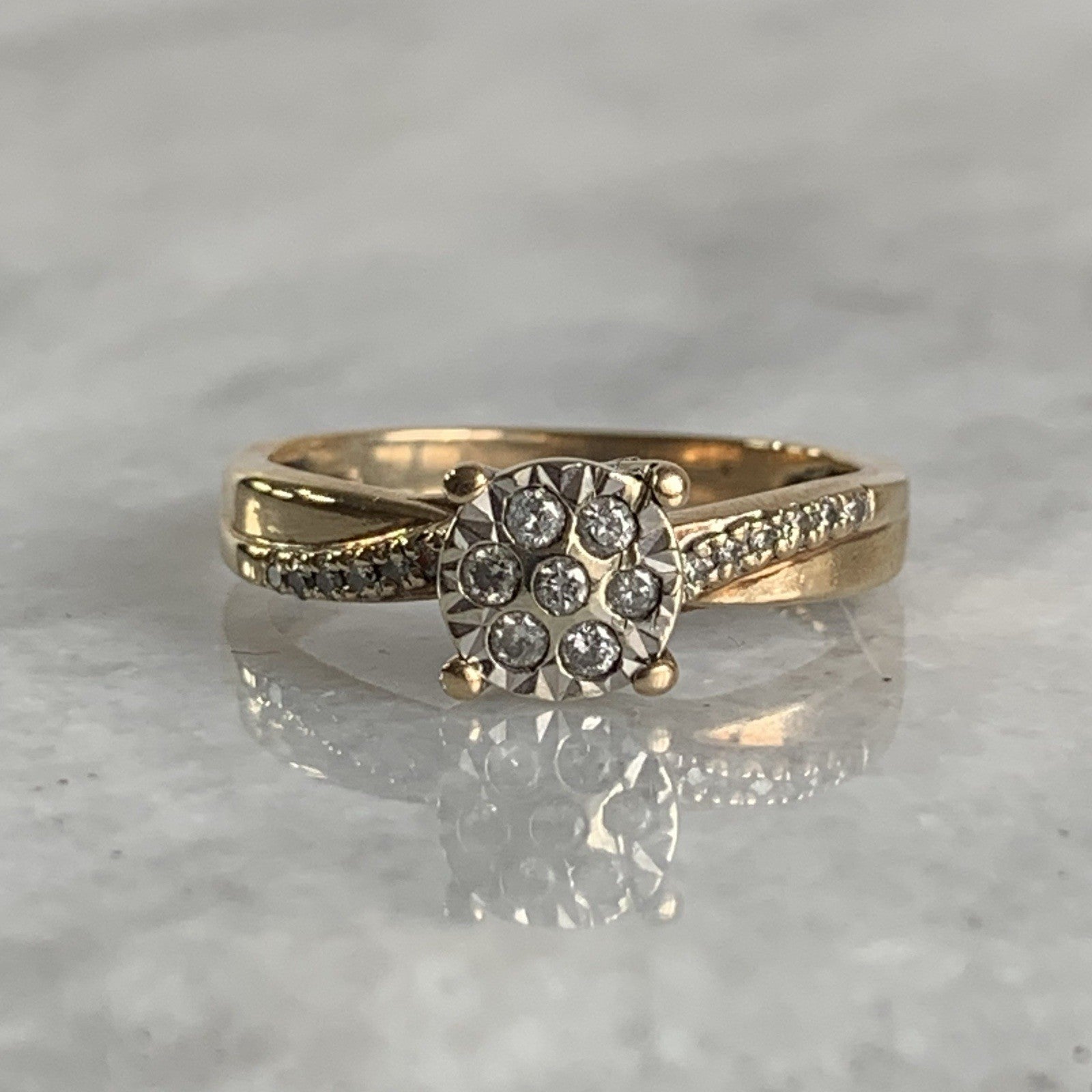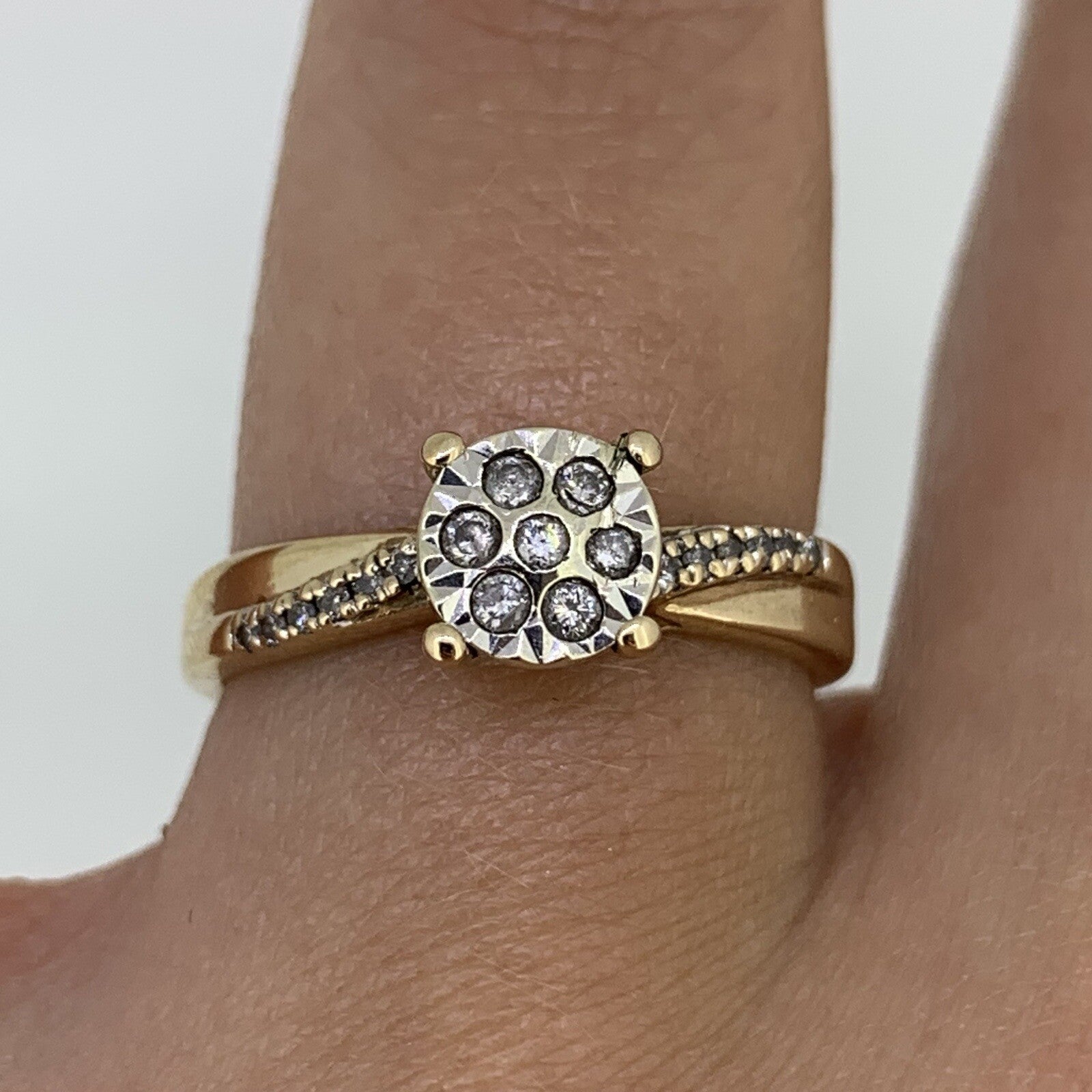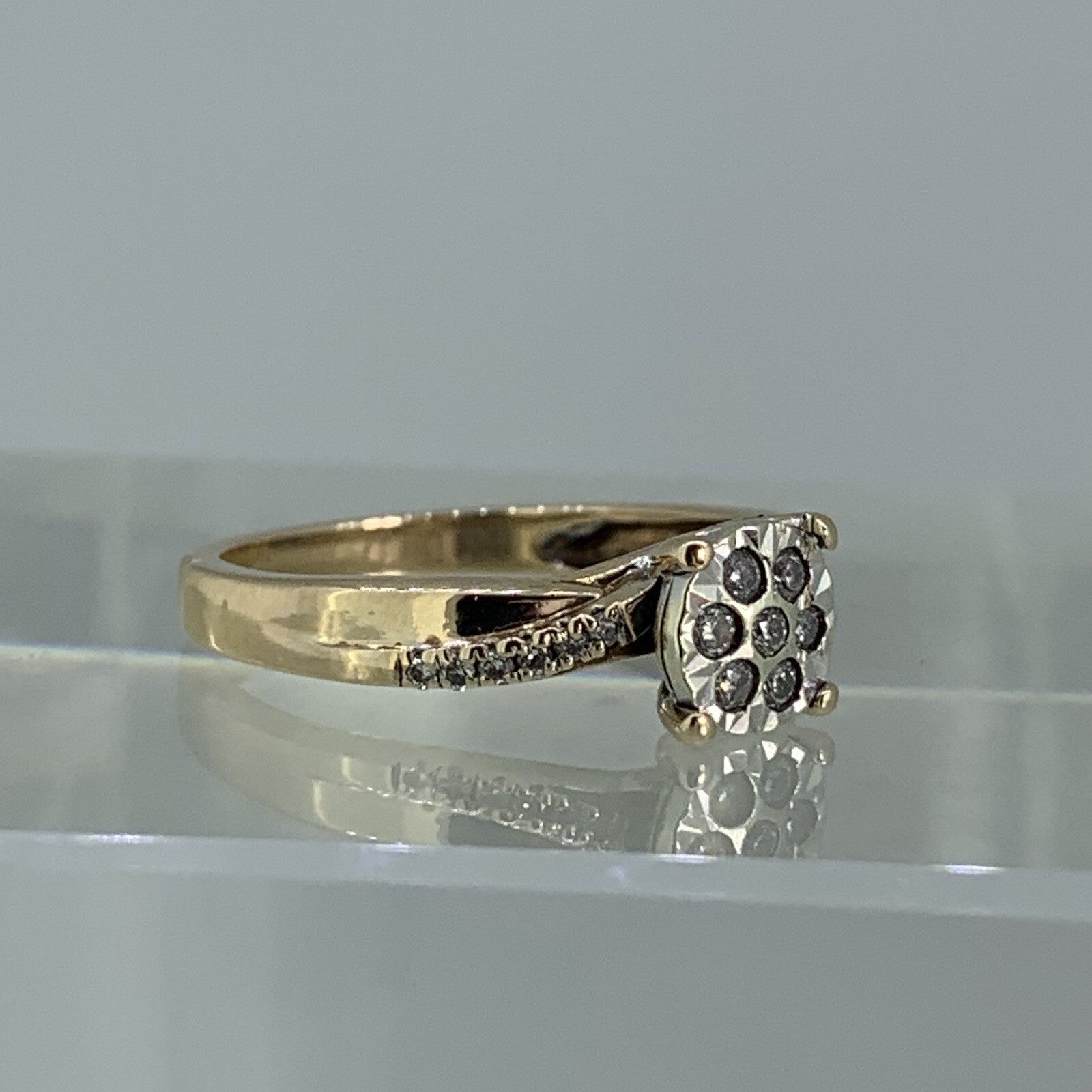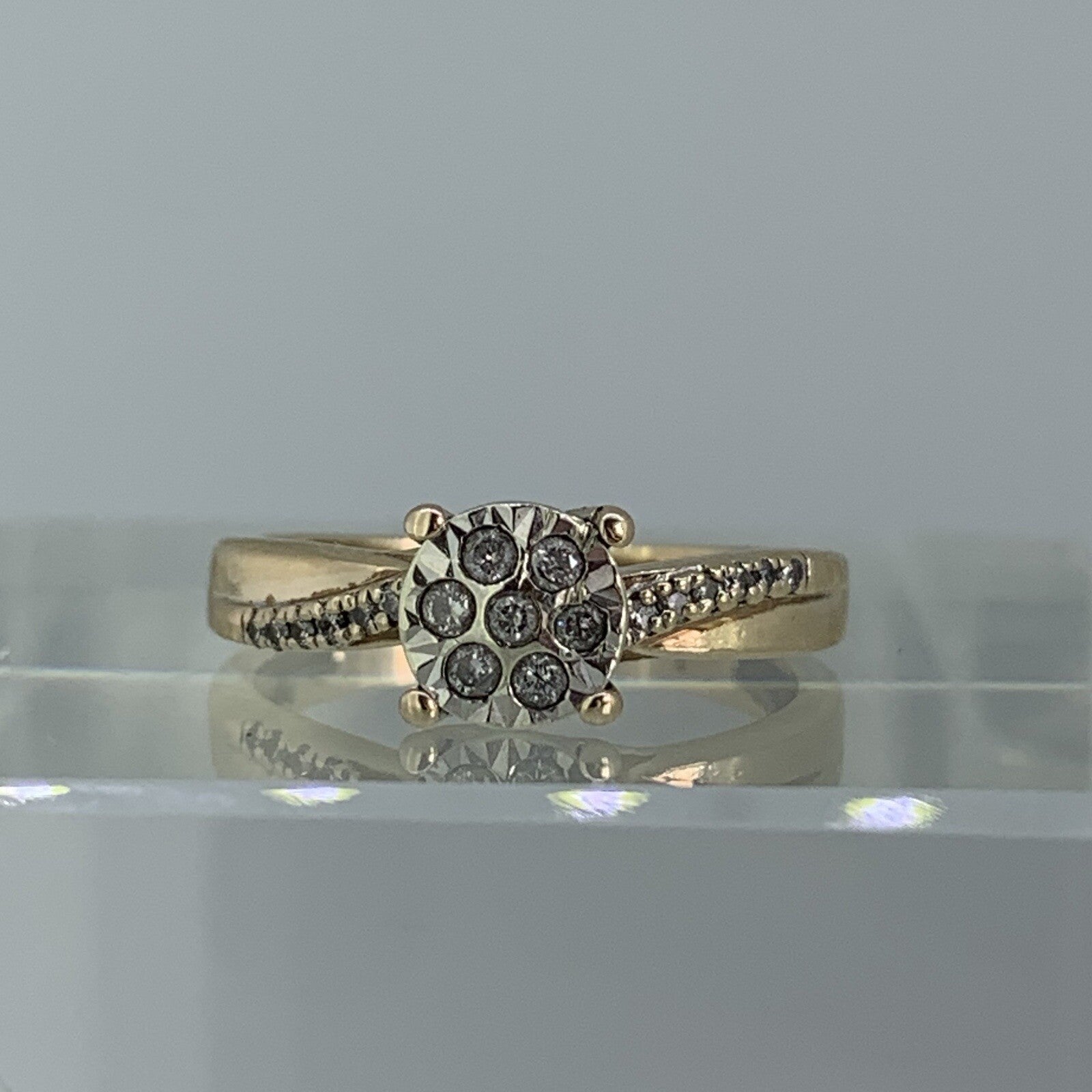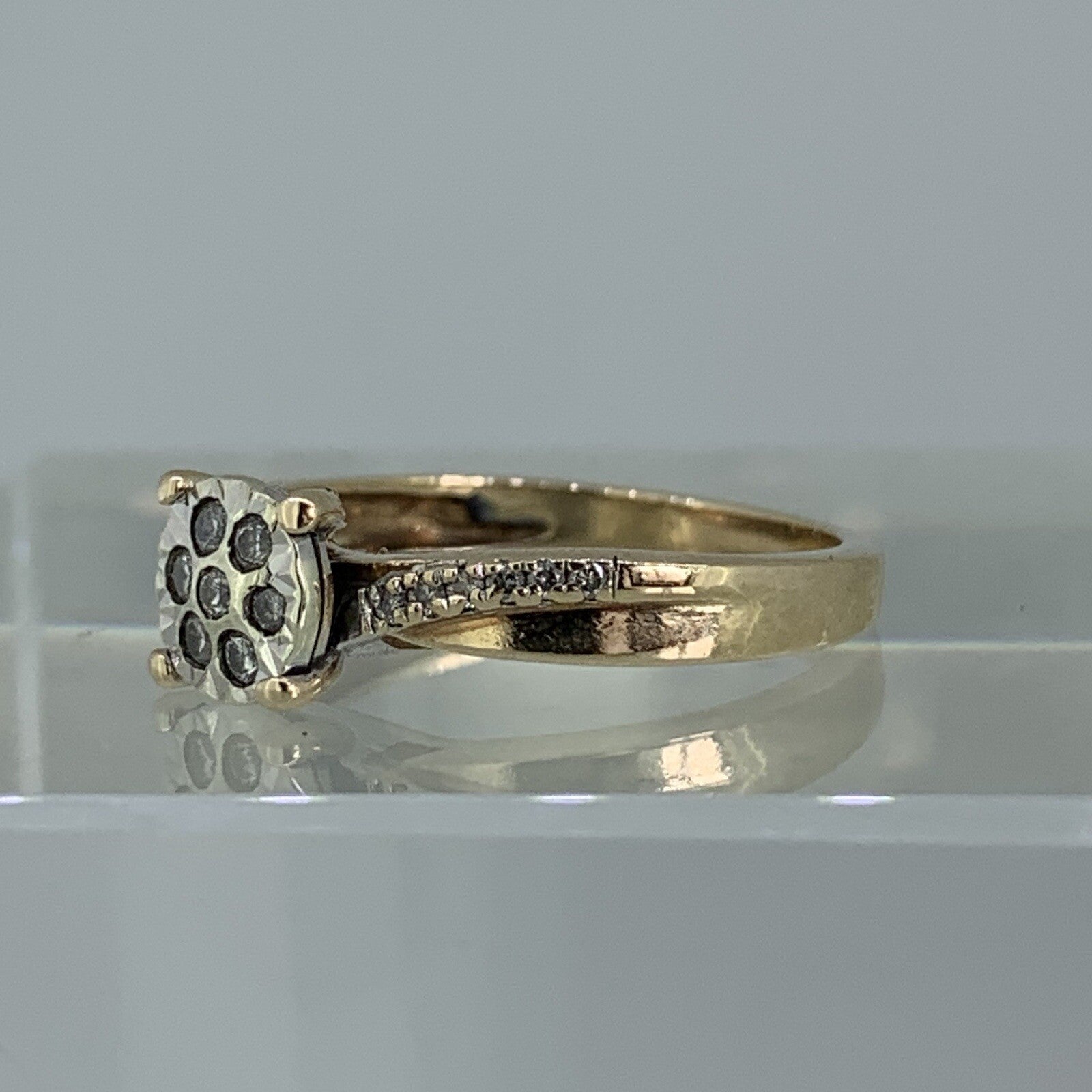 Diamond Cluster .20ct Solitaire Illusion Ring 9ct 9k Yellow Gold - Size L 1/2