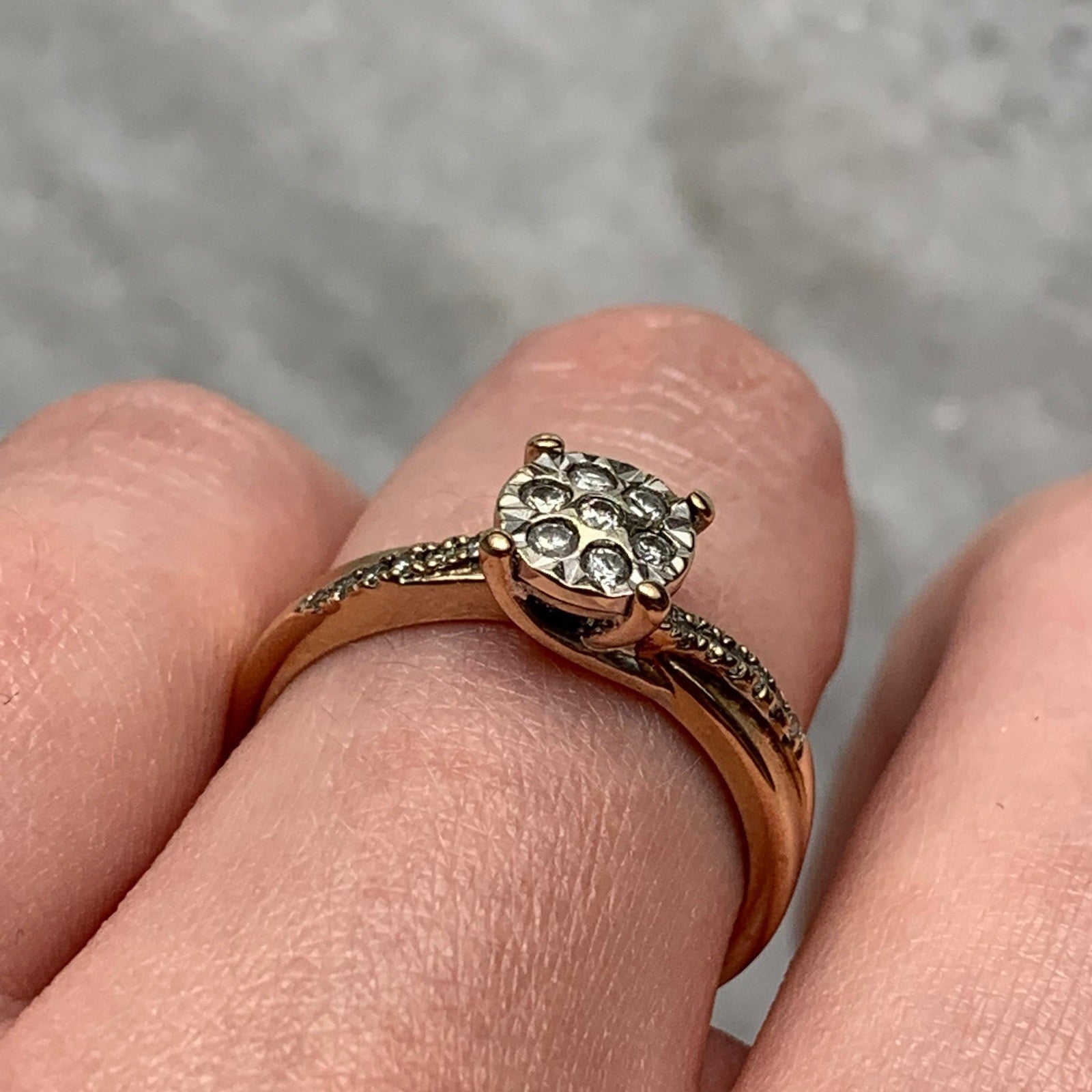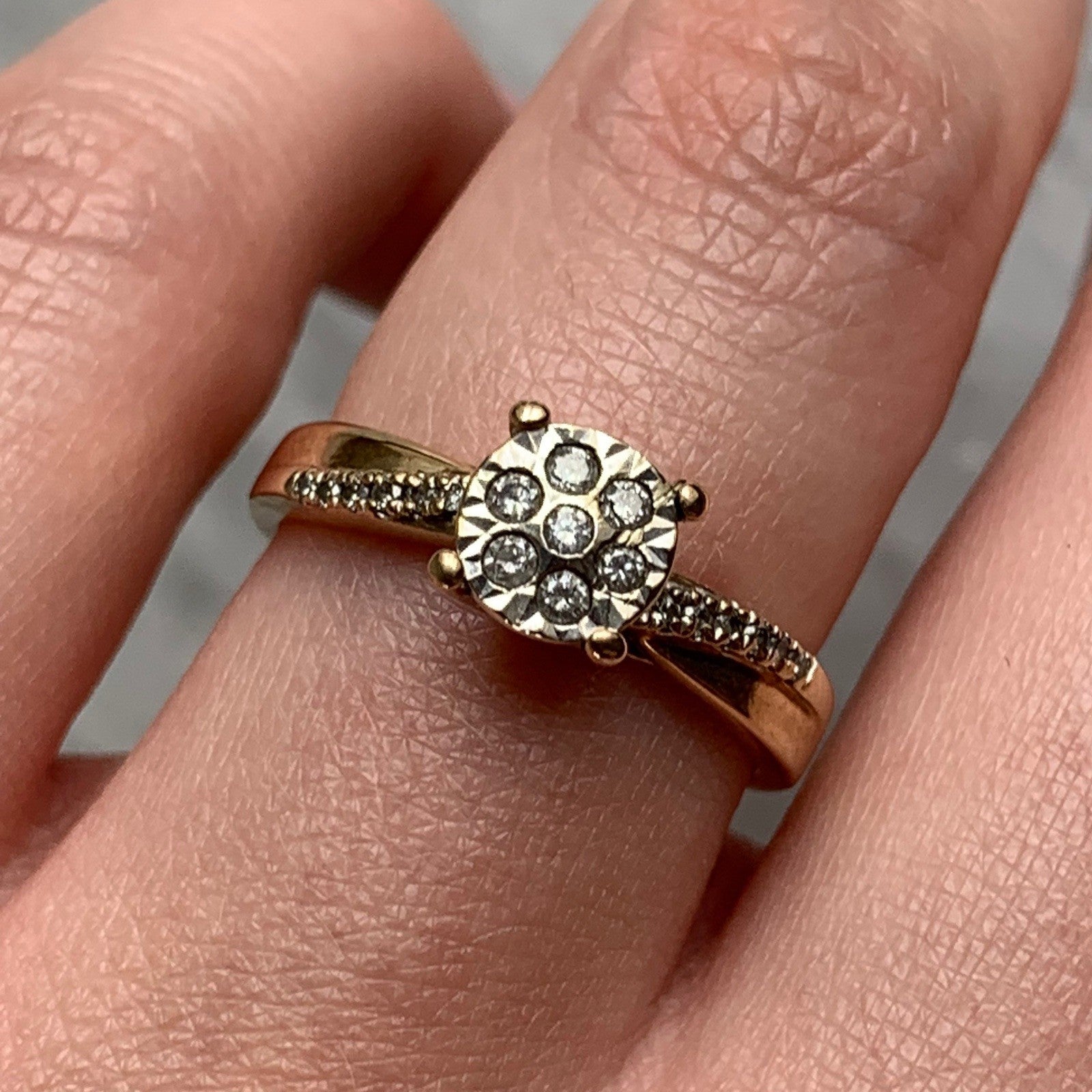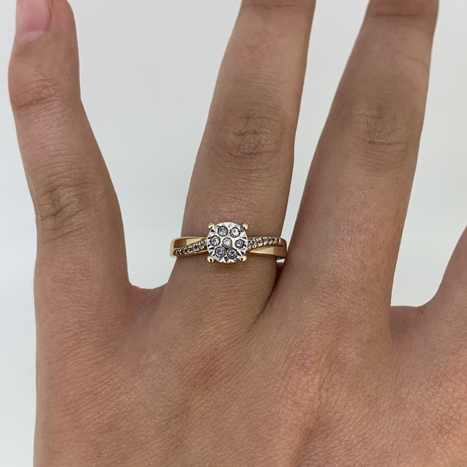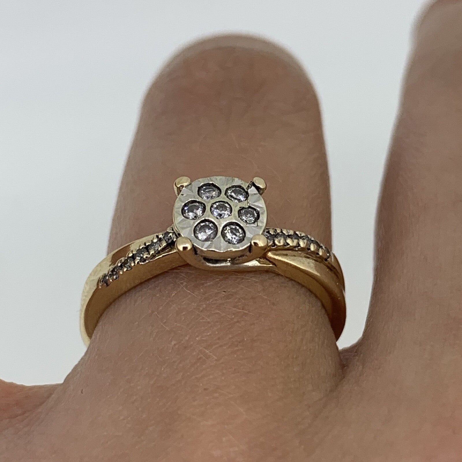 Diamond Cluster .20ct Solitaire Illusion Ring 9ct 9k Yellow Gold - Size L 1/2