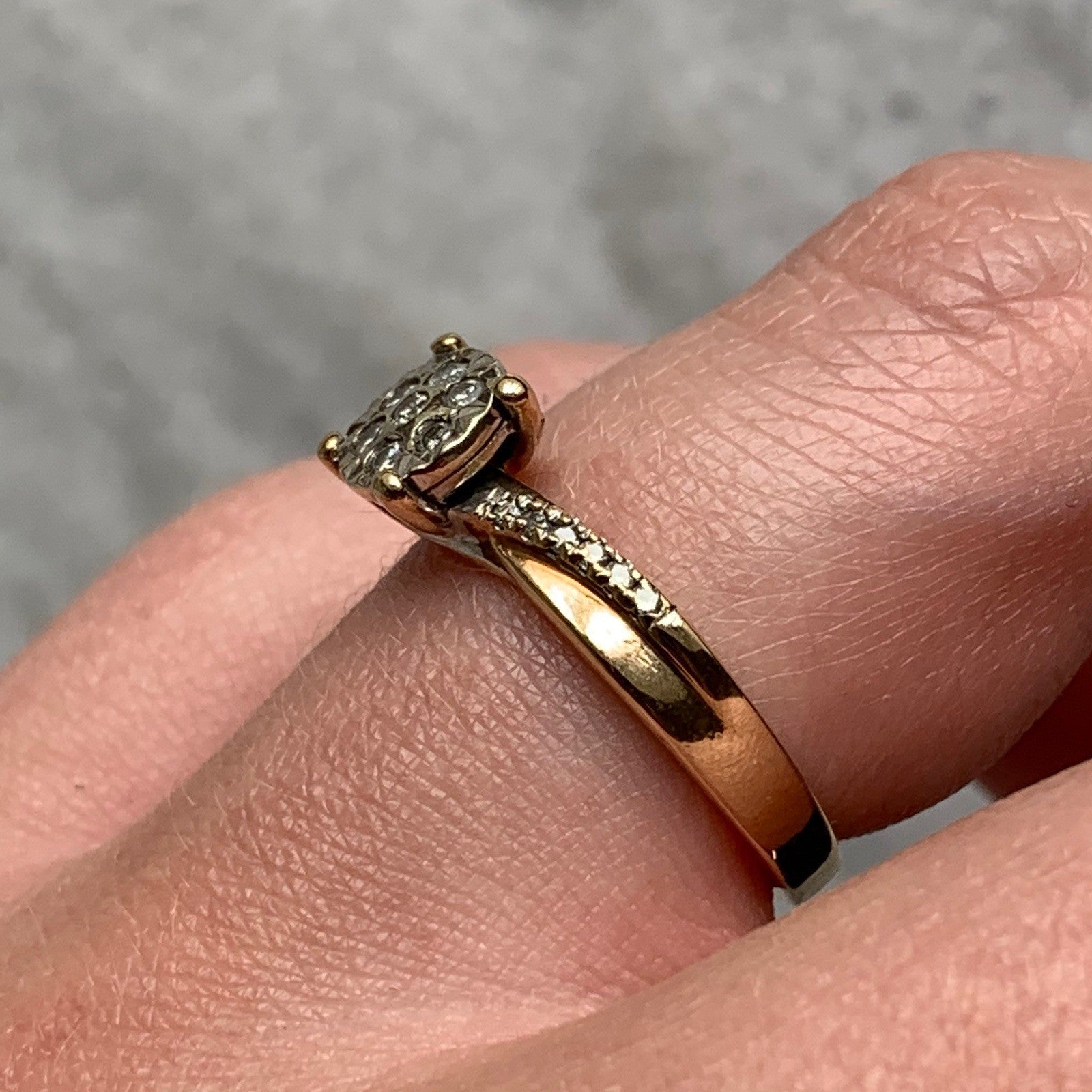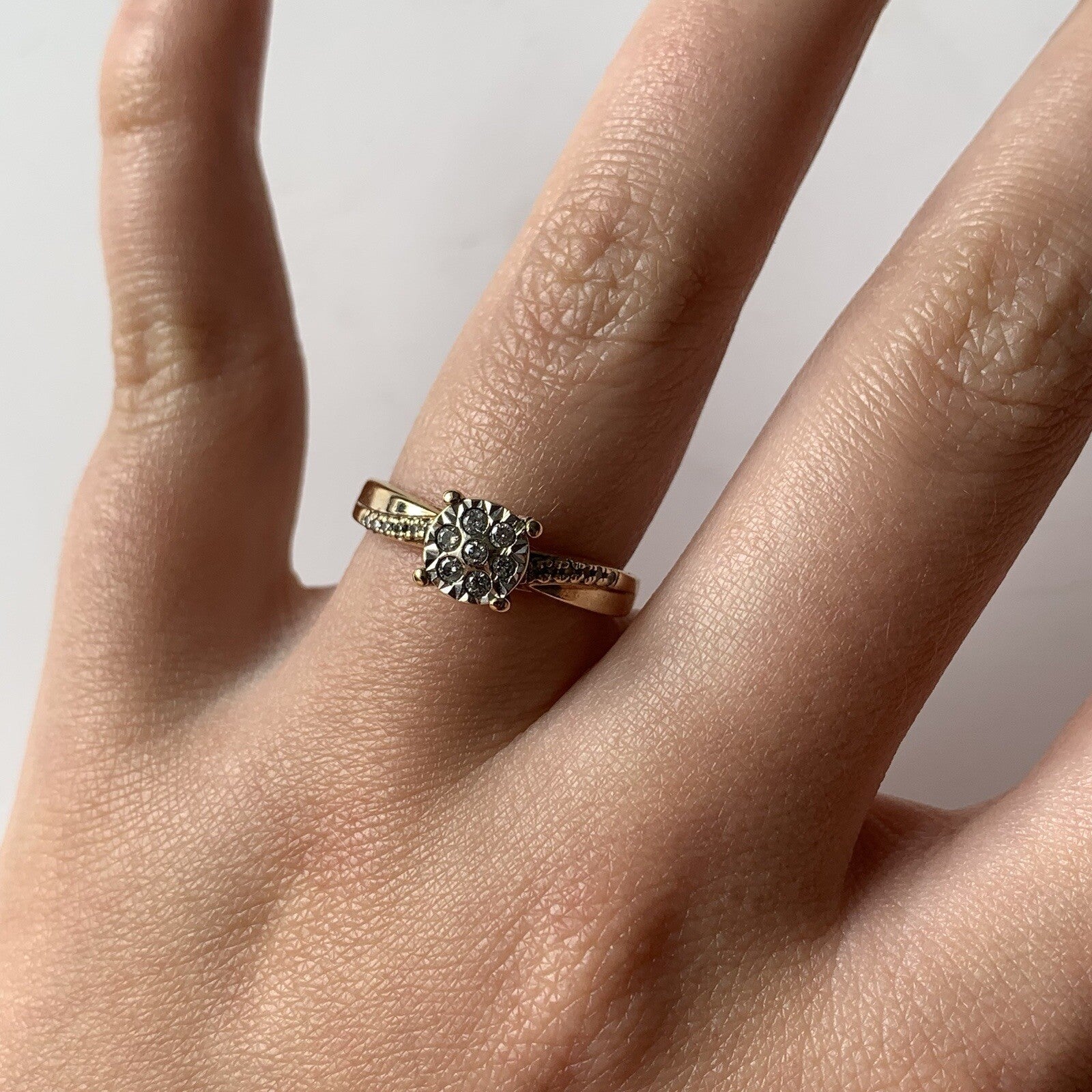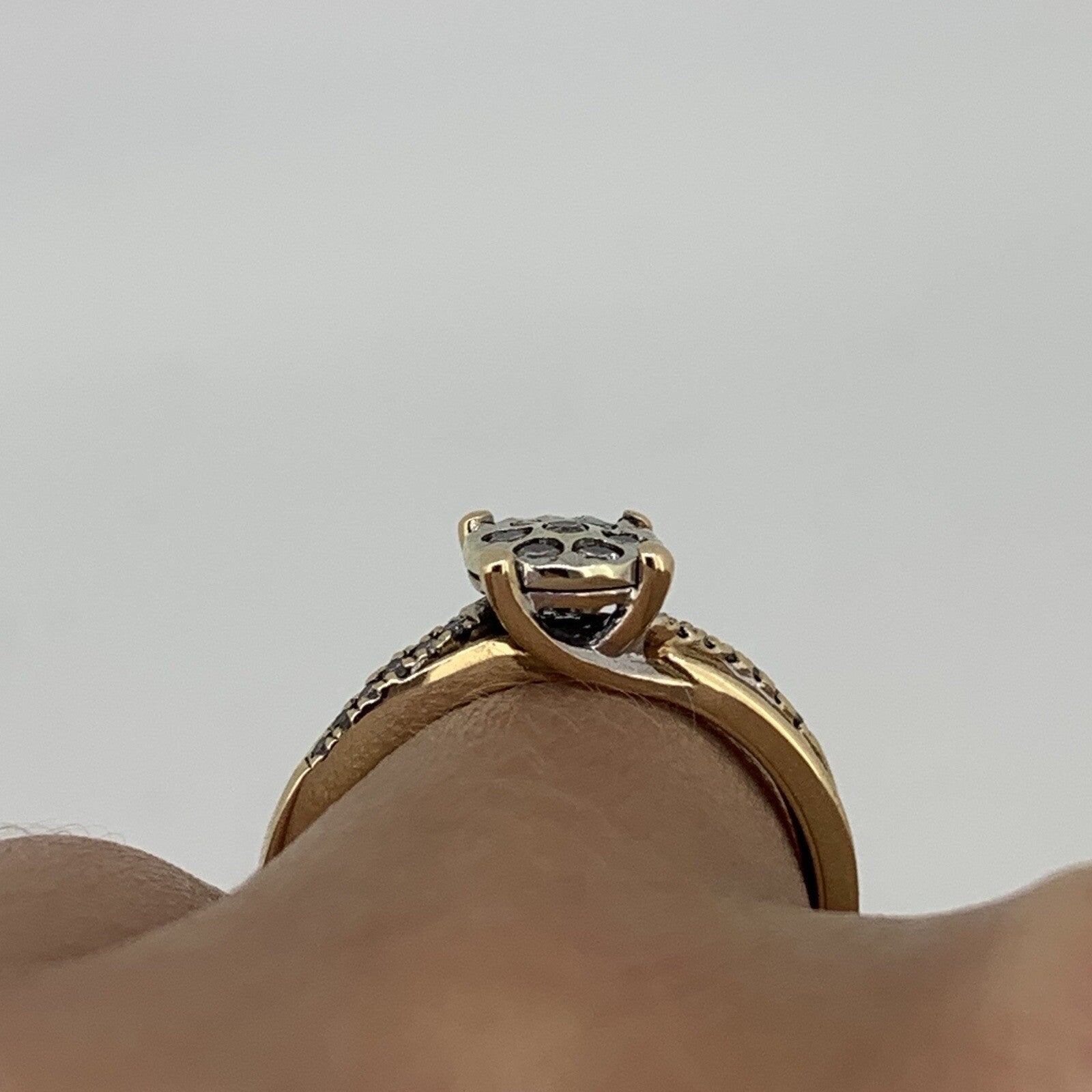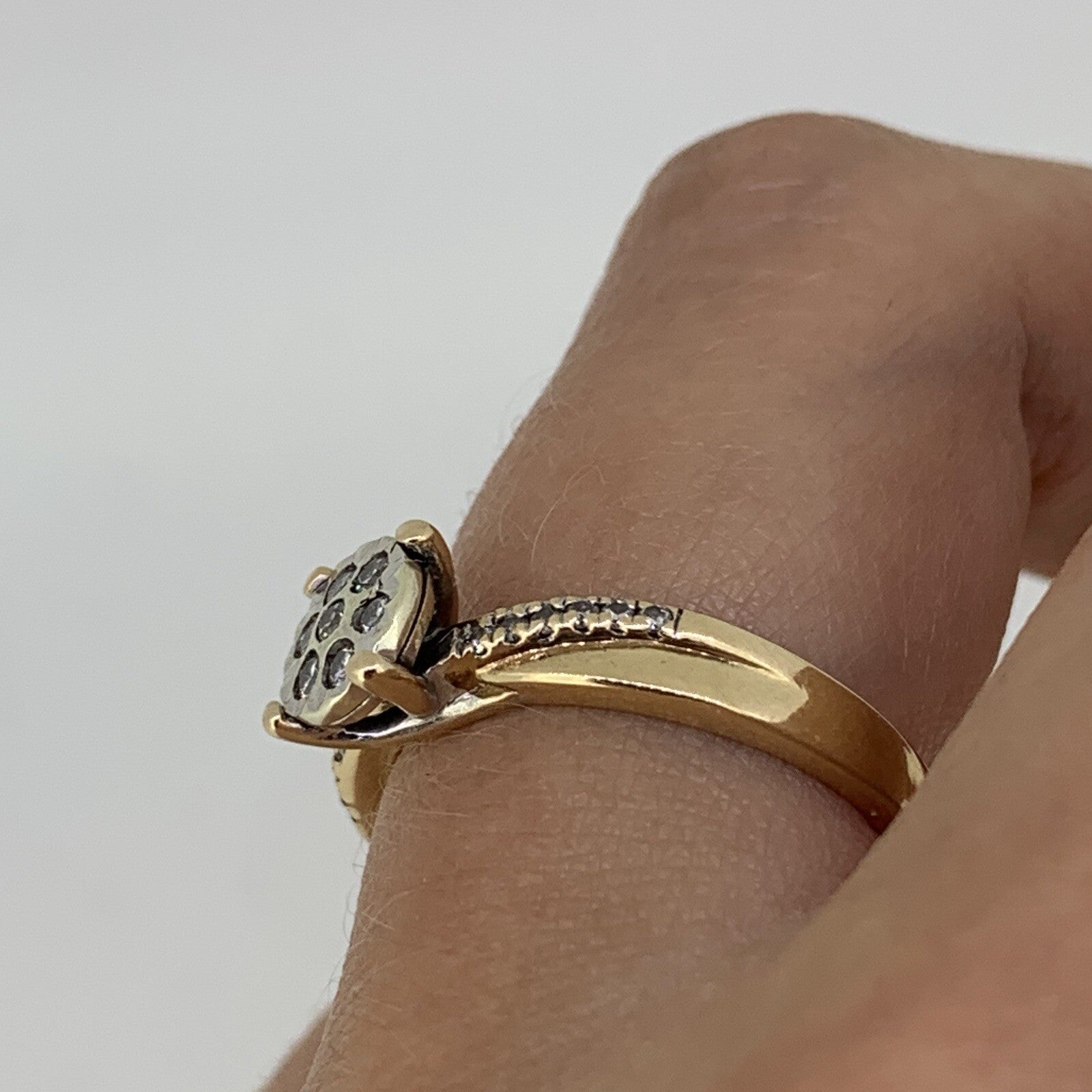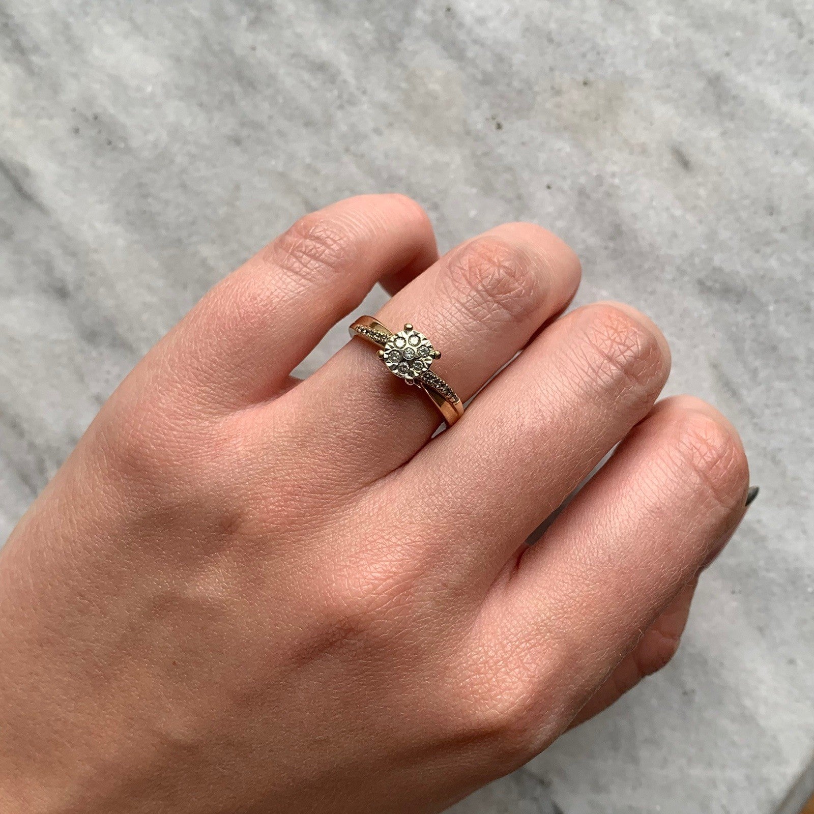 Diamond Cluster .20ct Solitaire Illusion Ring 9ct 9k Yellow Gold - Size L 1/2