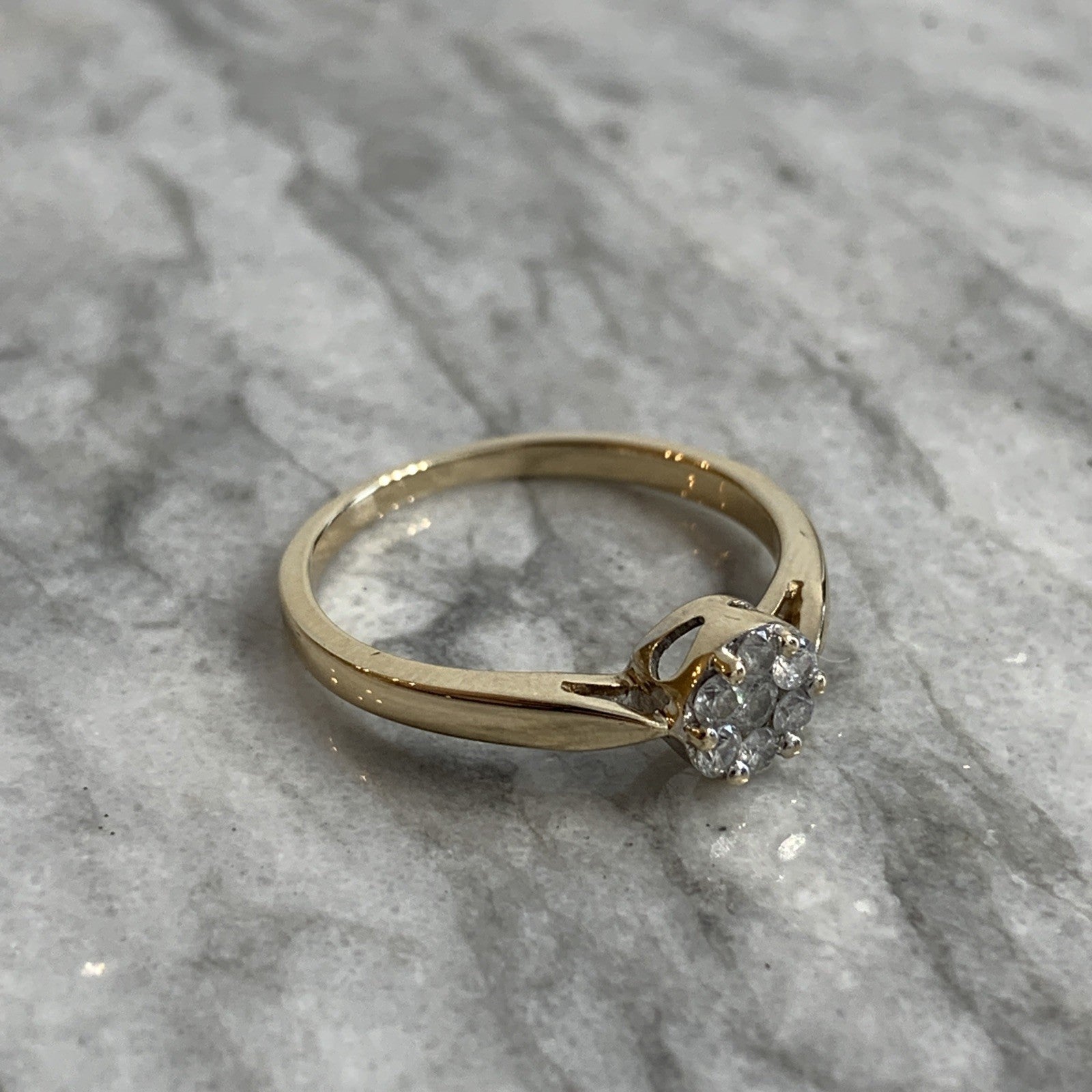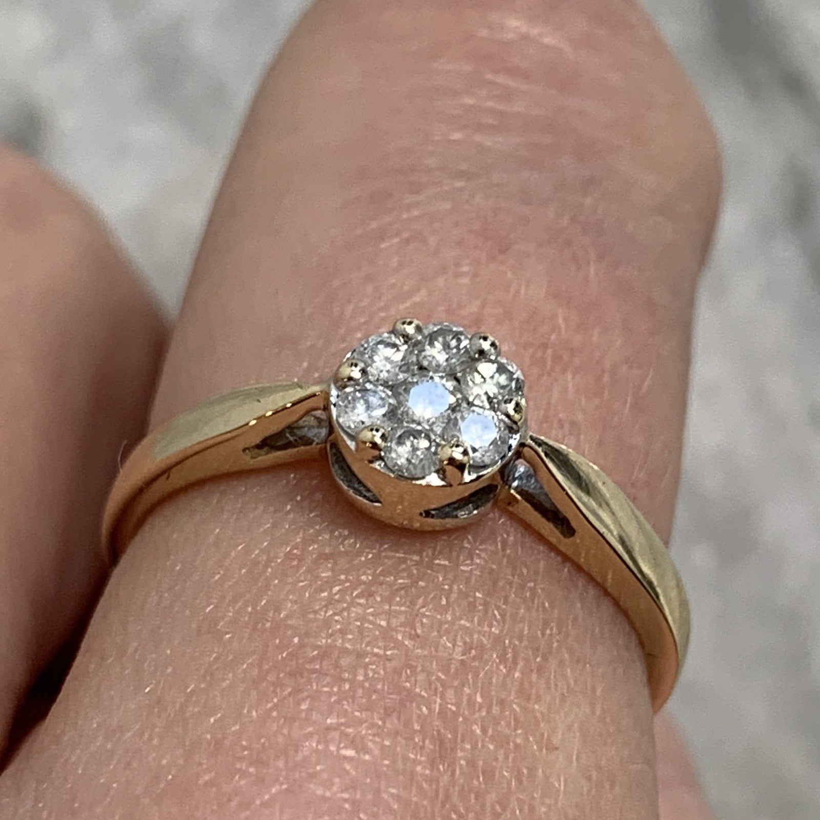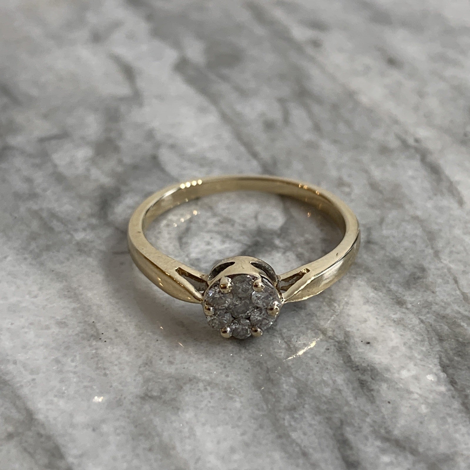Diamond Daisy Cluster Ring 9ct 375 Yellow Gold - Size P
