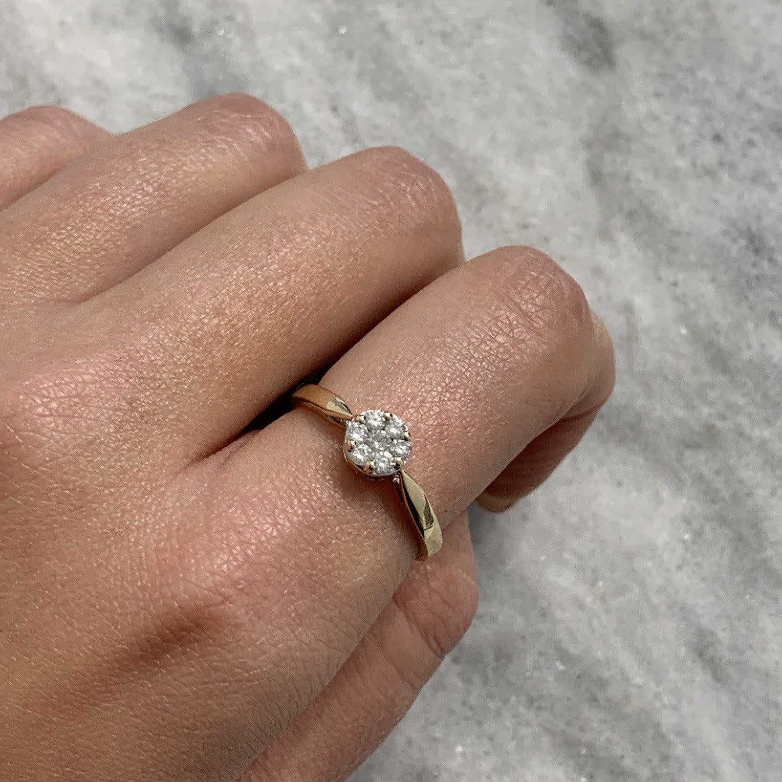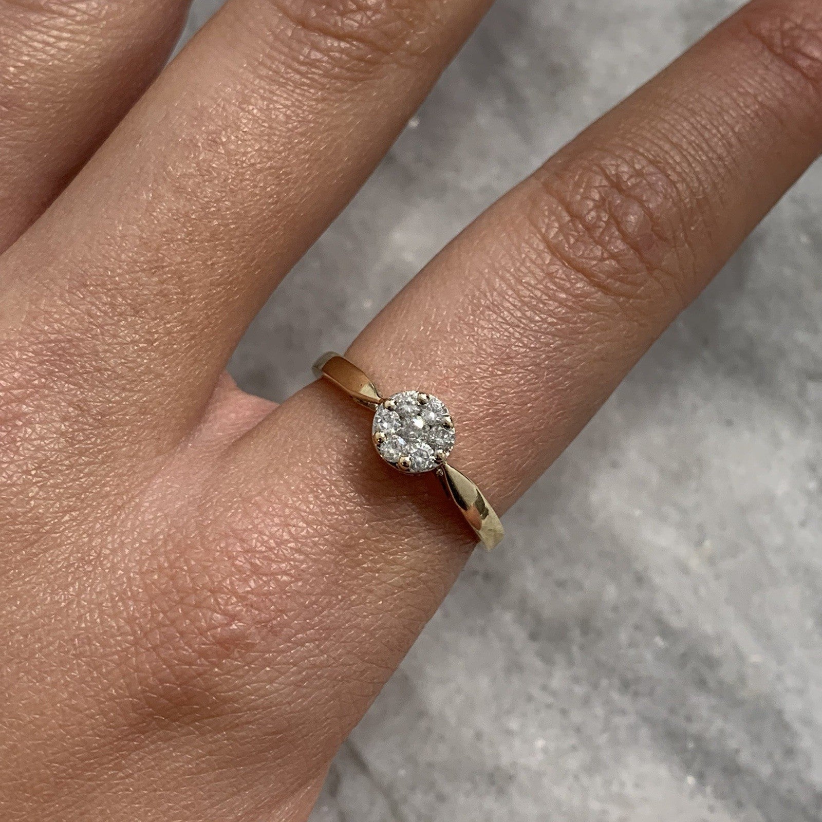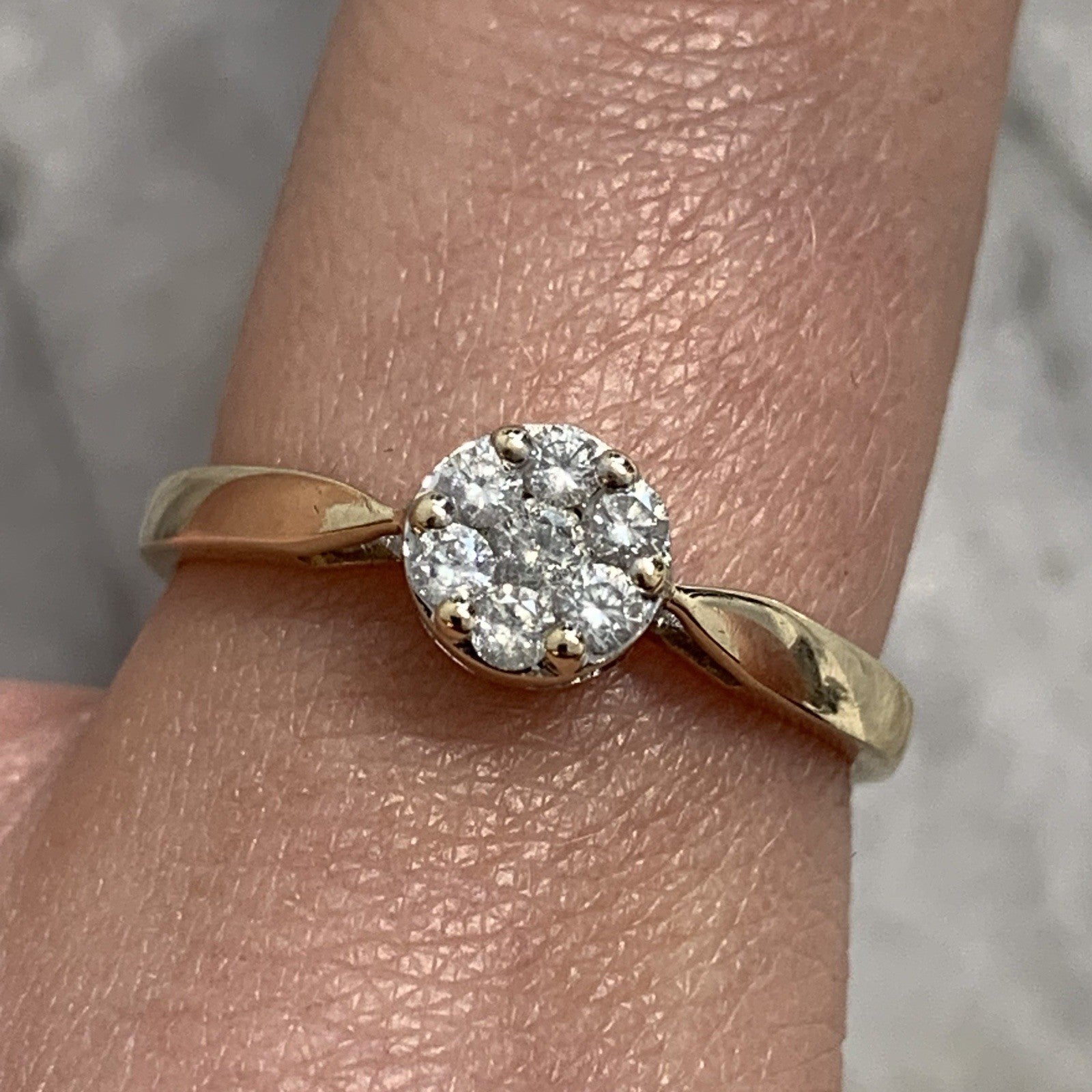 Diamond Daisy Cluster Ring 9ct 375 Yellow Gold - Size P