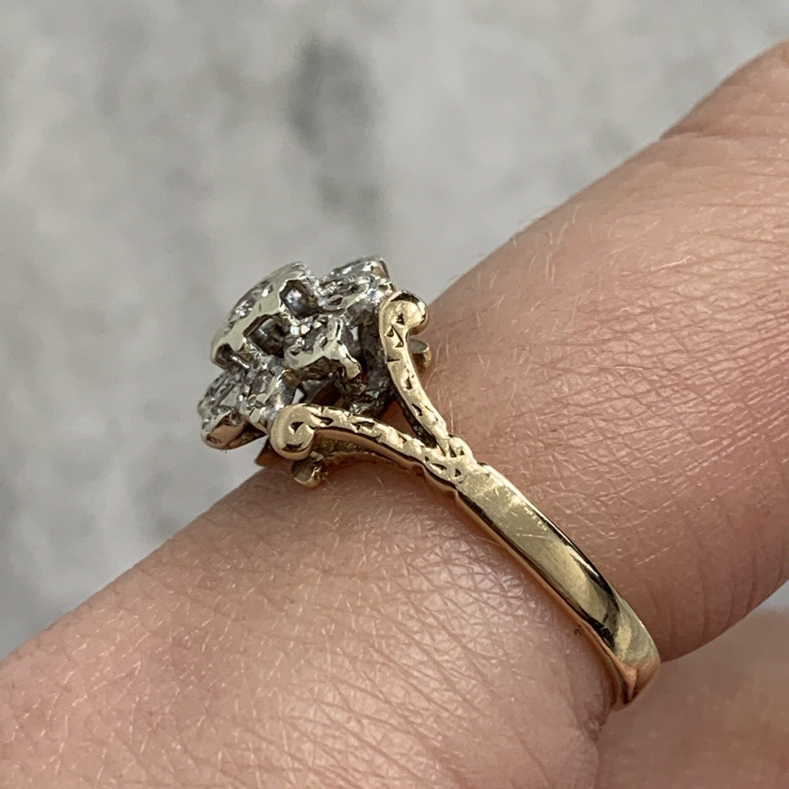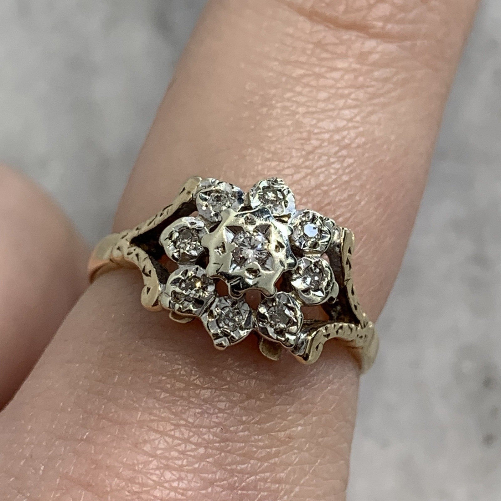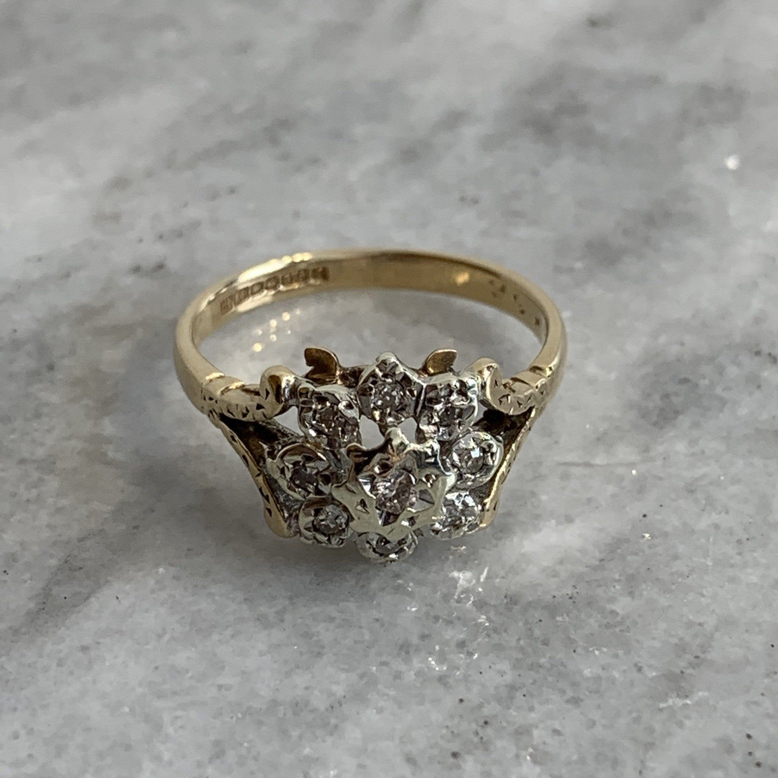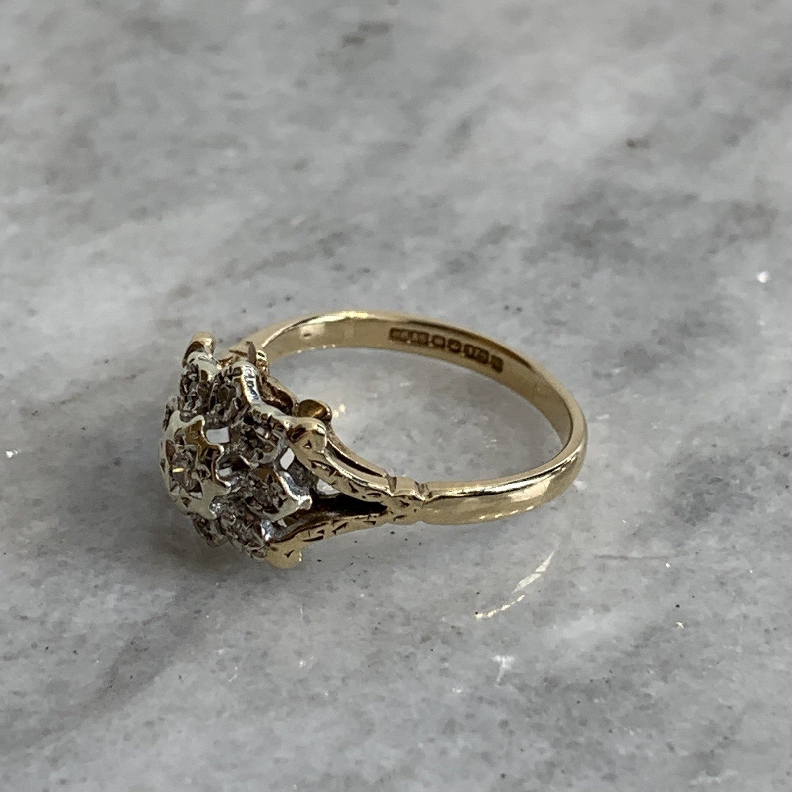 Diamond Daisy Flower Cluster Ring 9ct 375 Yellow Gold - Size M 1/2
