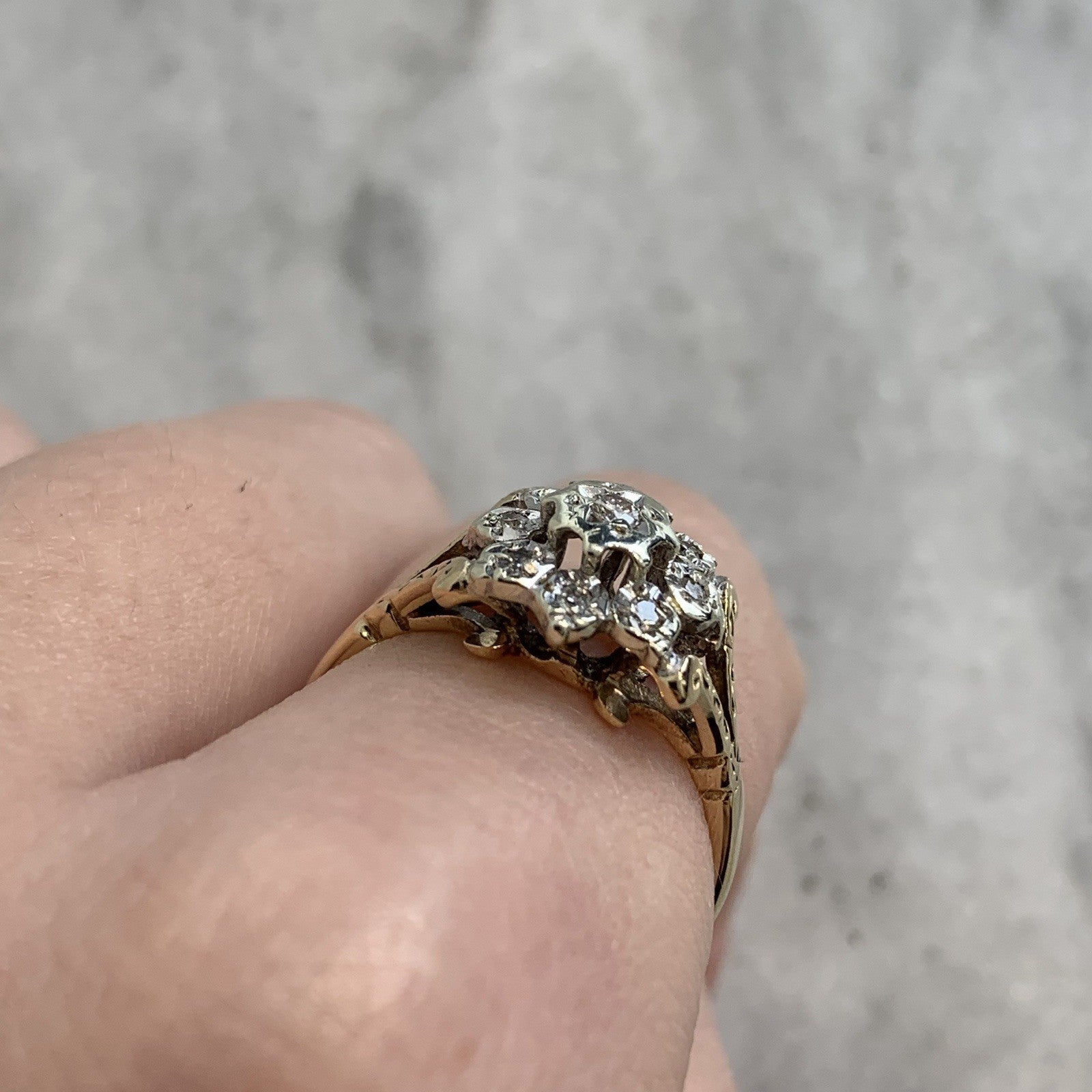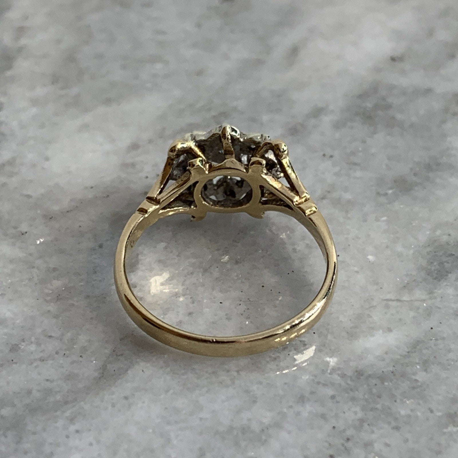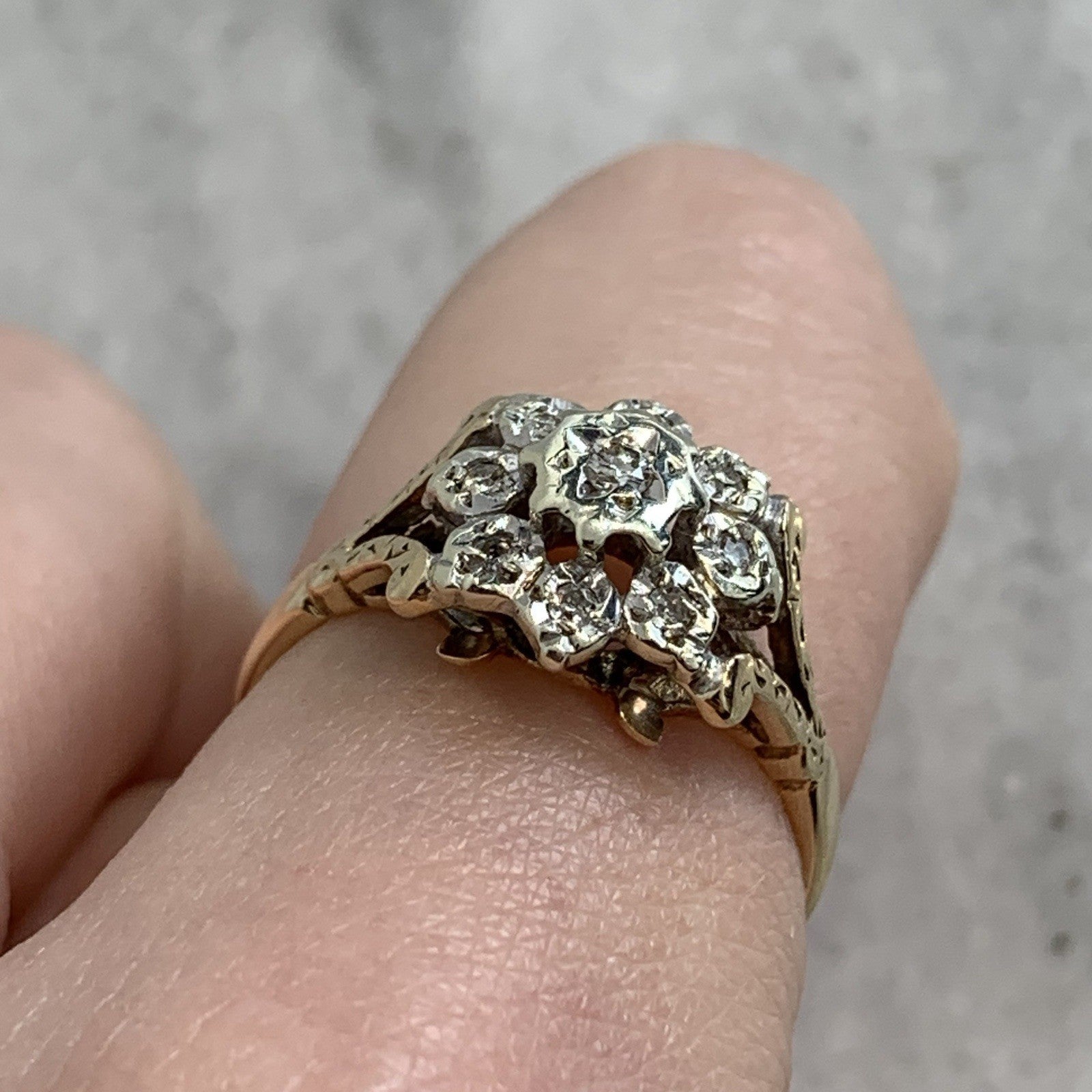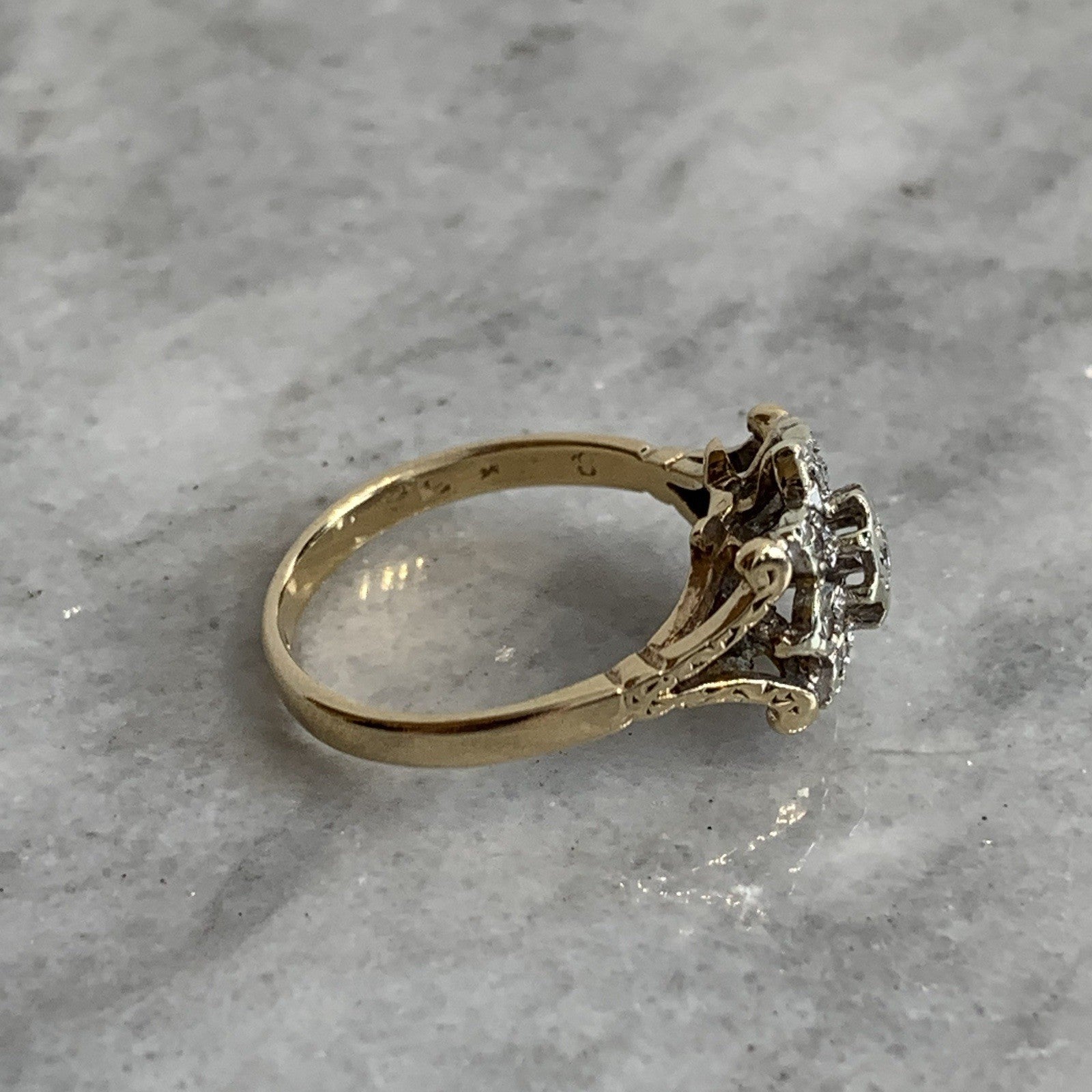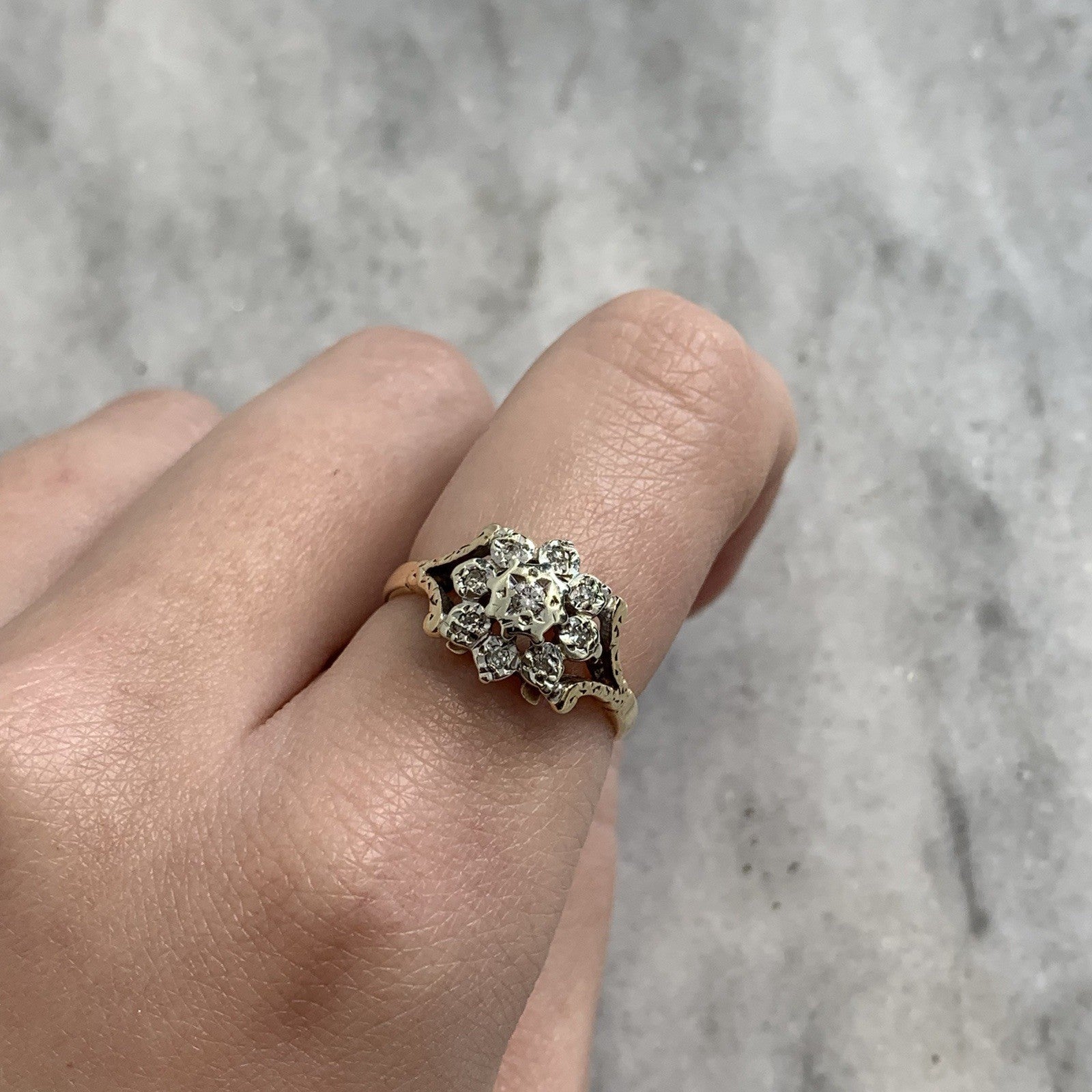 Diamond Daisy Flower Cluster Ring 9ct 375 Yellow Gold - Size M 1/2