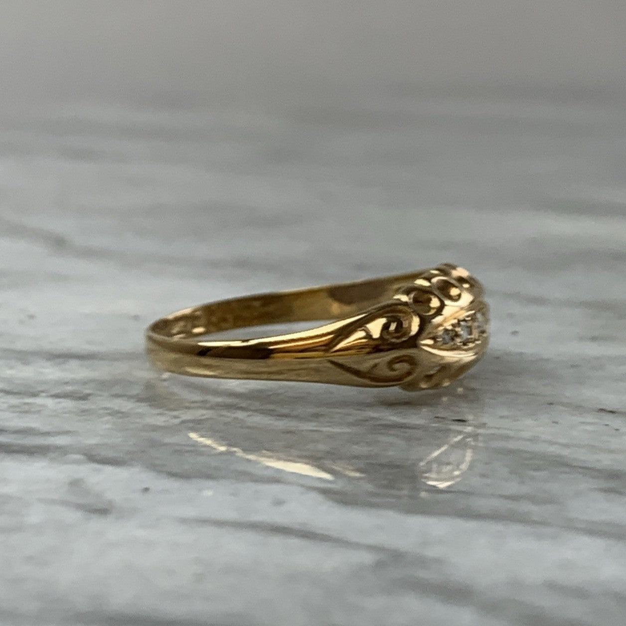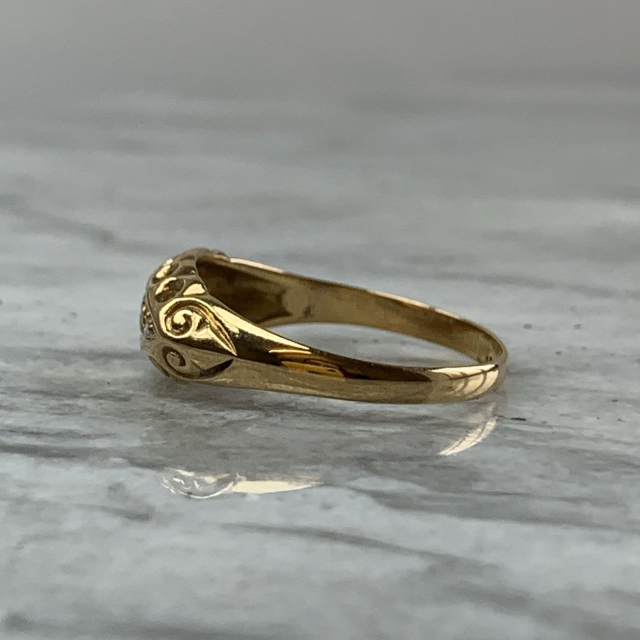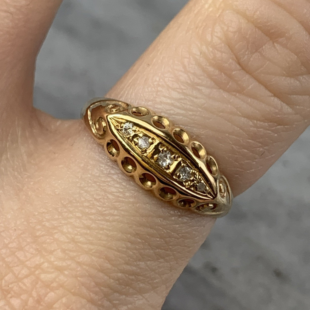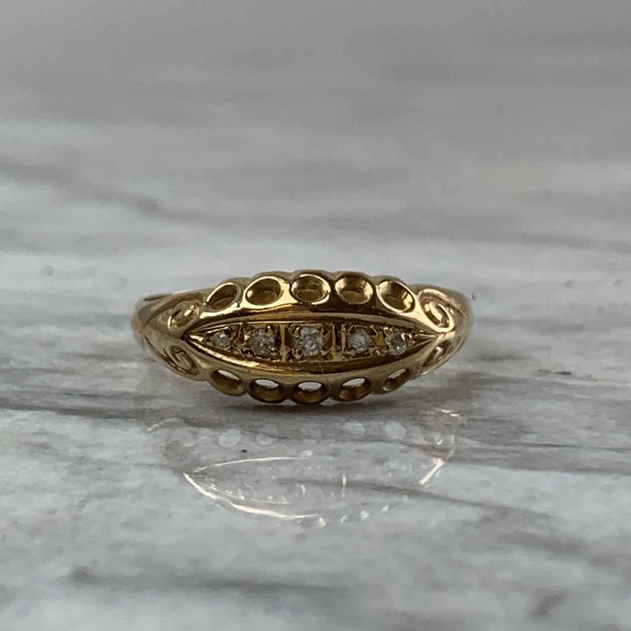 Diamond Five Stone Carved Ring 18ct 750 Yellow Gold - Size P