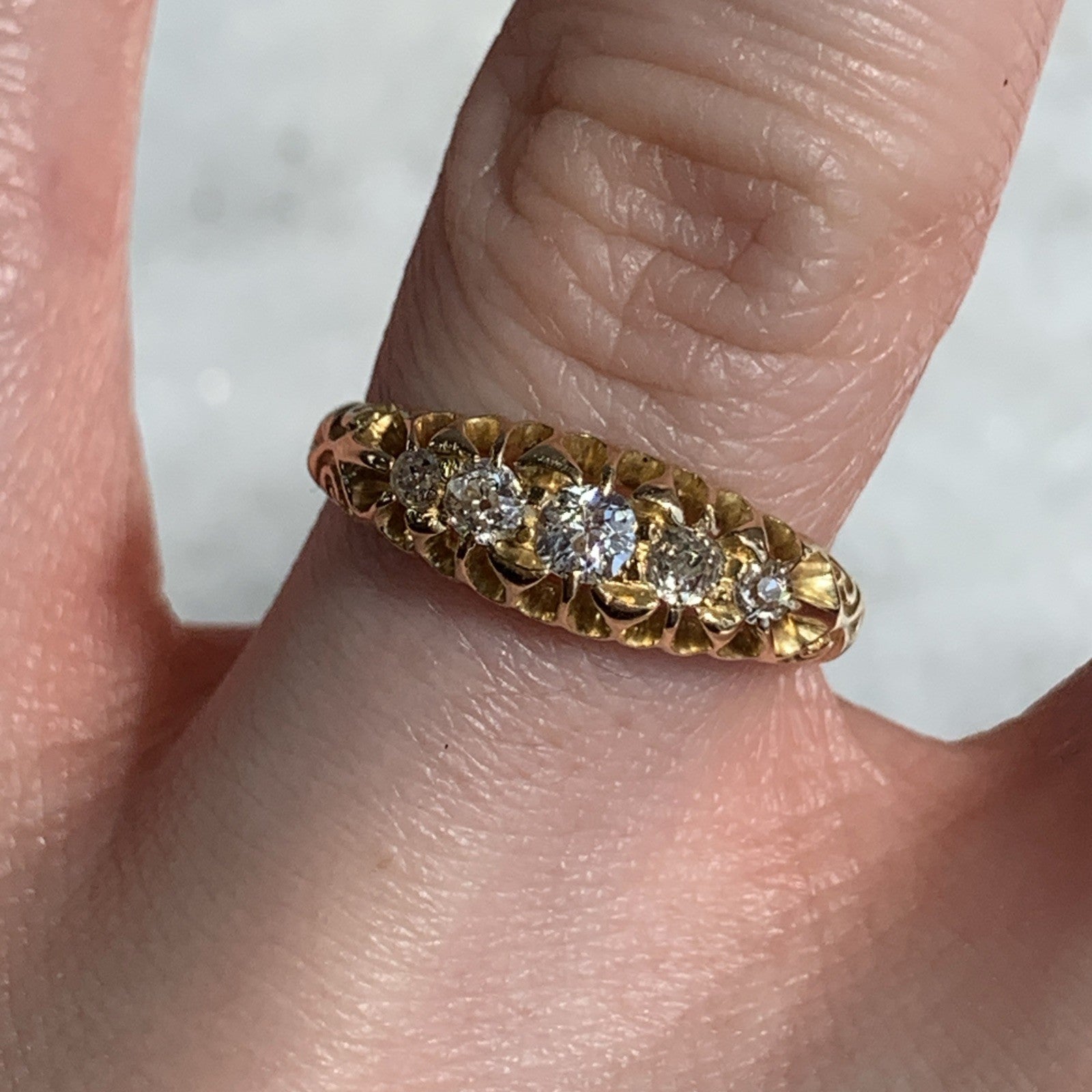 Diamond Five Stone Ring 18ct 750 Yellow Gold - Size L 1/2