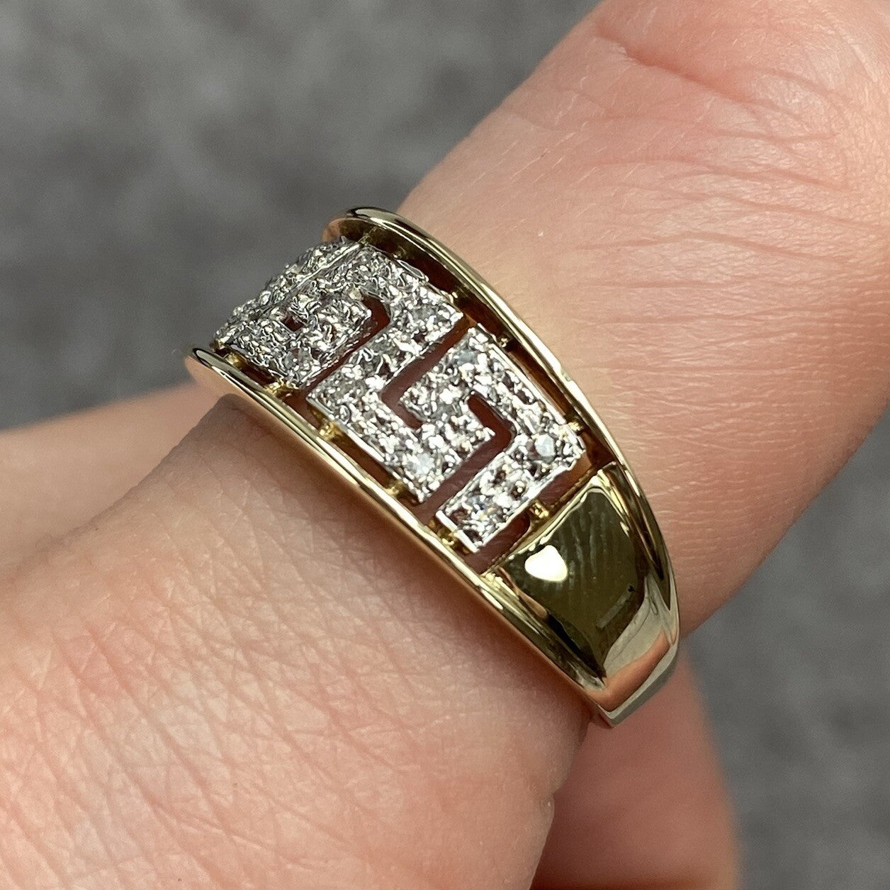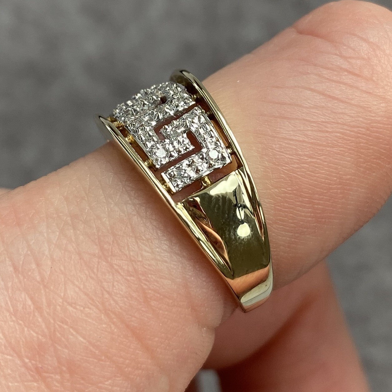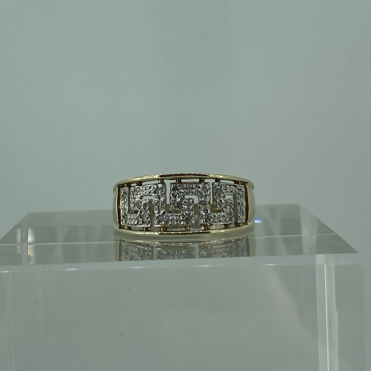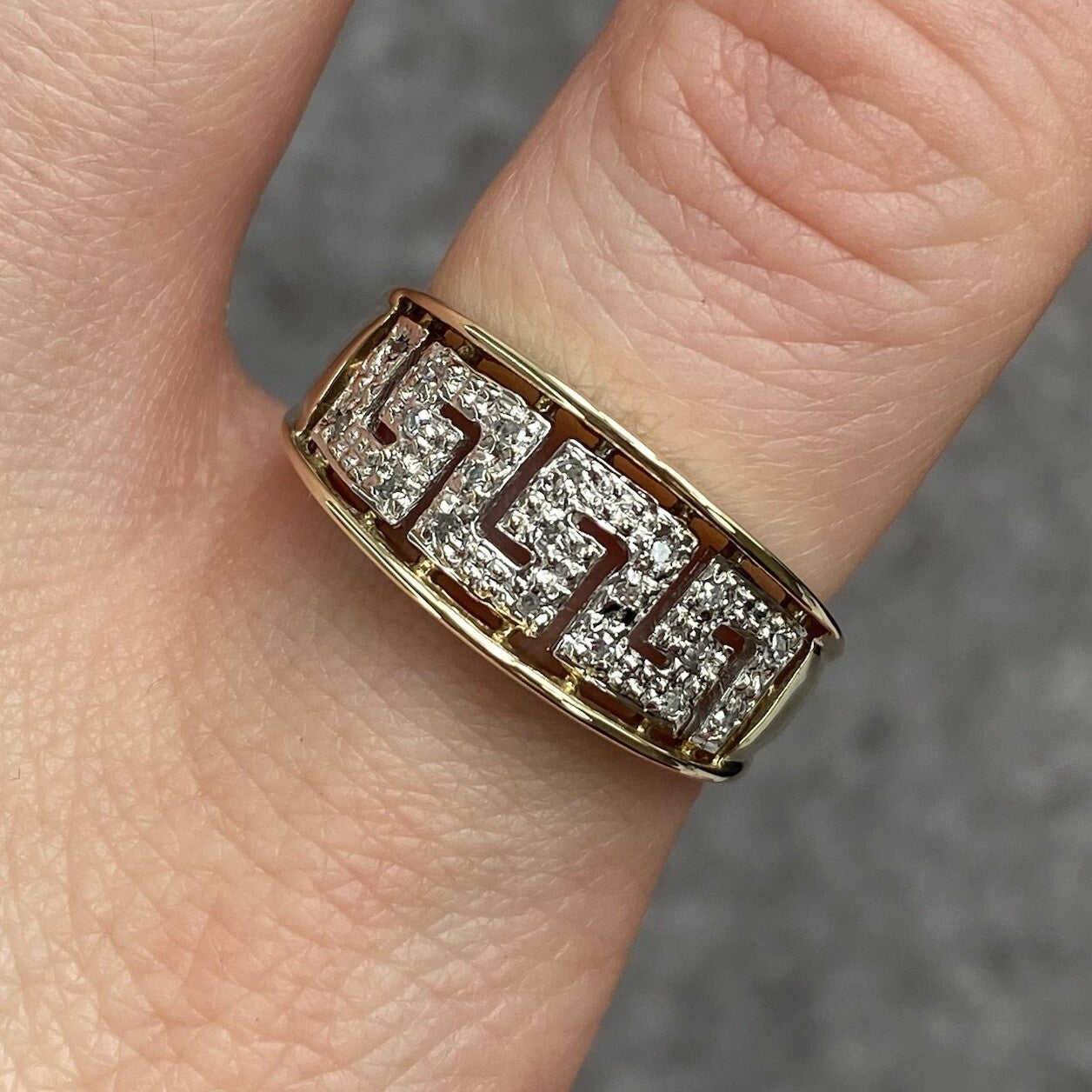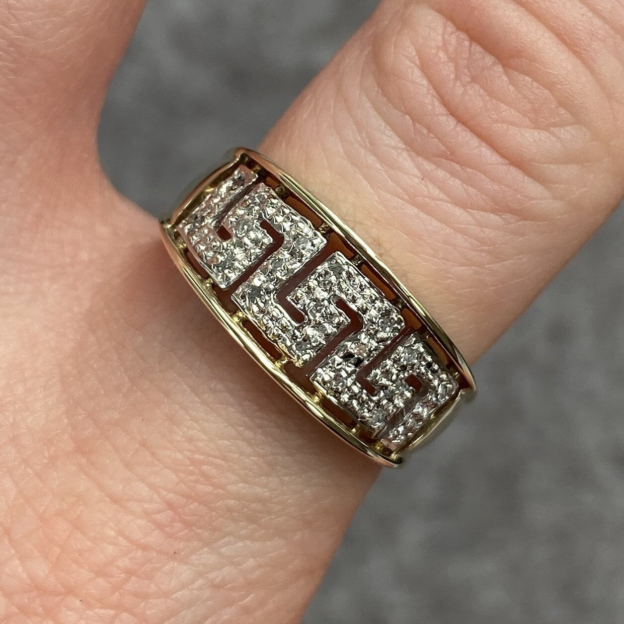 Diamond Greek Key Cut Out Ornate Band Ring 9 ct 375 Yellow Gold - Size P